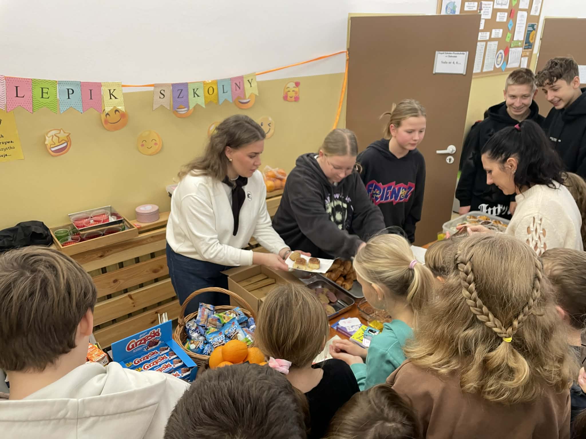21 listopada w naszej szkole odbyło się wyjątkowe wydarzenie, które na długo pozostanie w pamięci uczniów i nauczycieli. Z inicjatywy Samorządu Uczniowskiego przygotowano „Sklepik Życzliwości” – w którym czekały pyszne babeczki, rogaliki, inne smakołyki, a także emotki i karteczki z miłymi słowami.