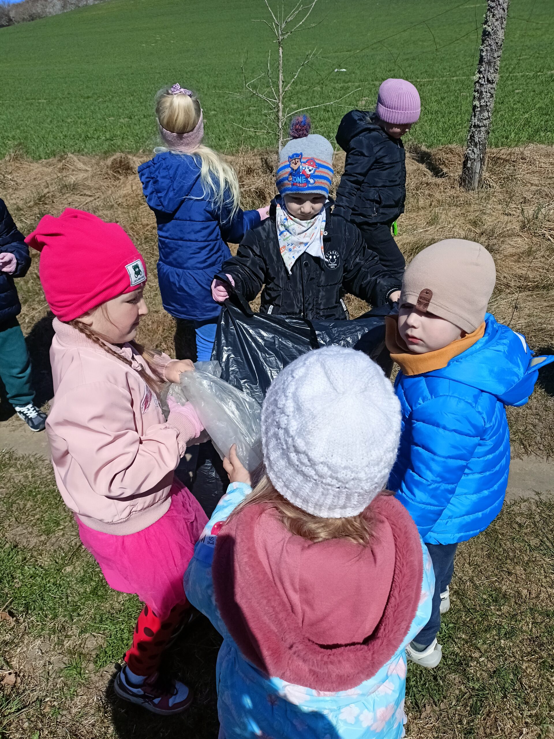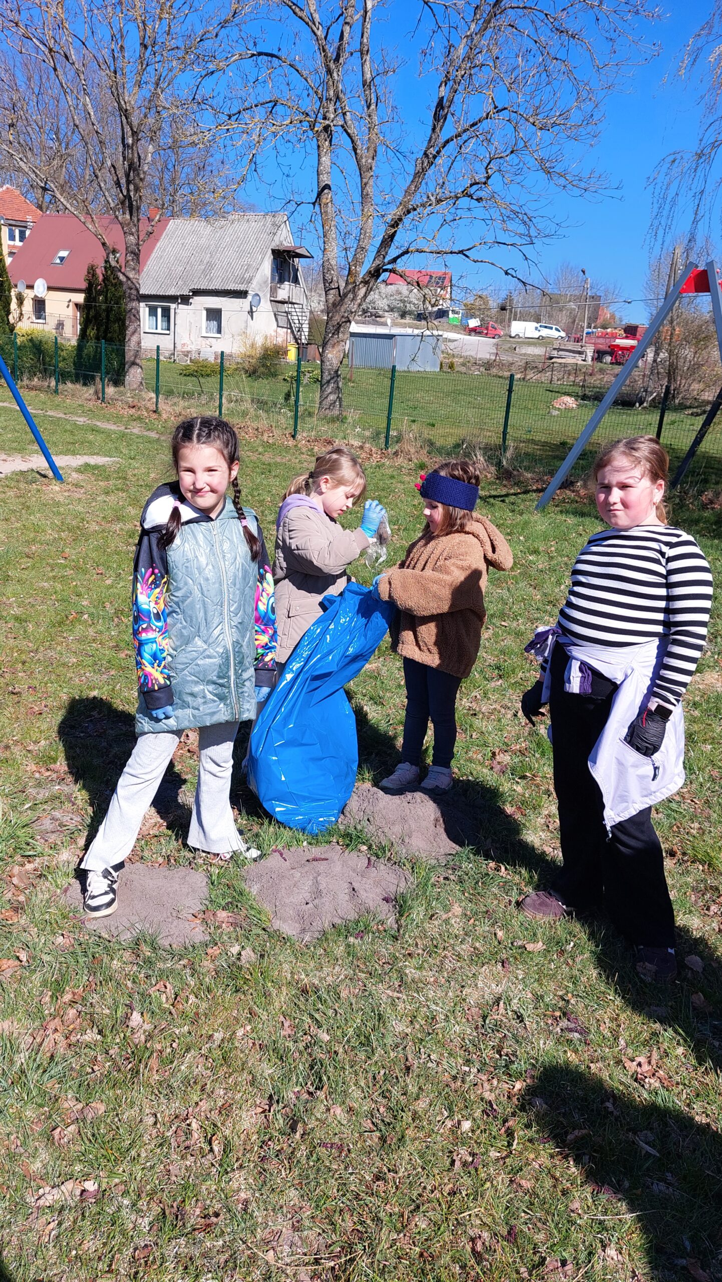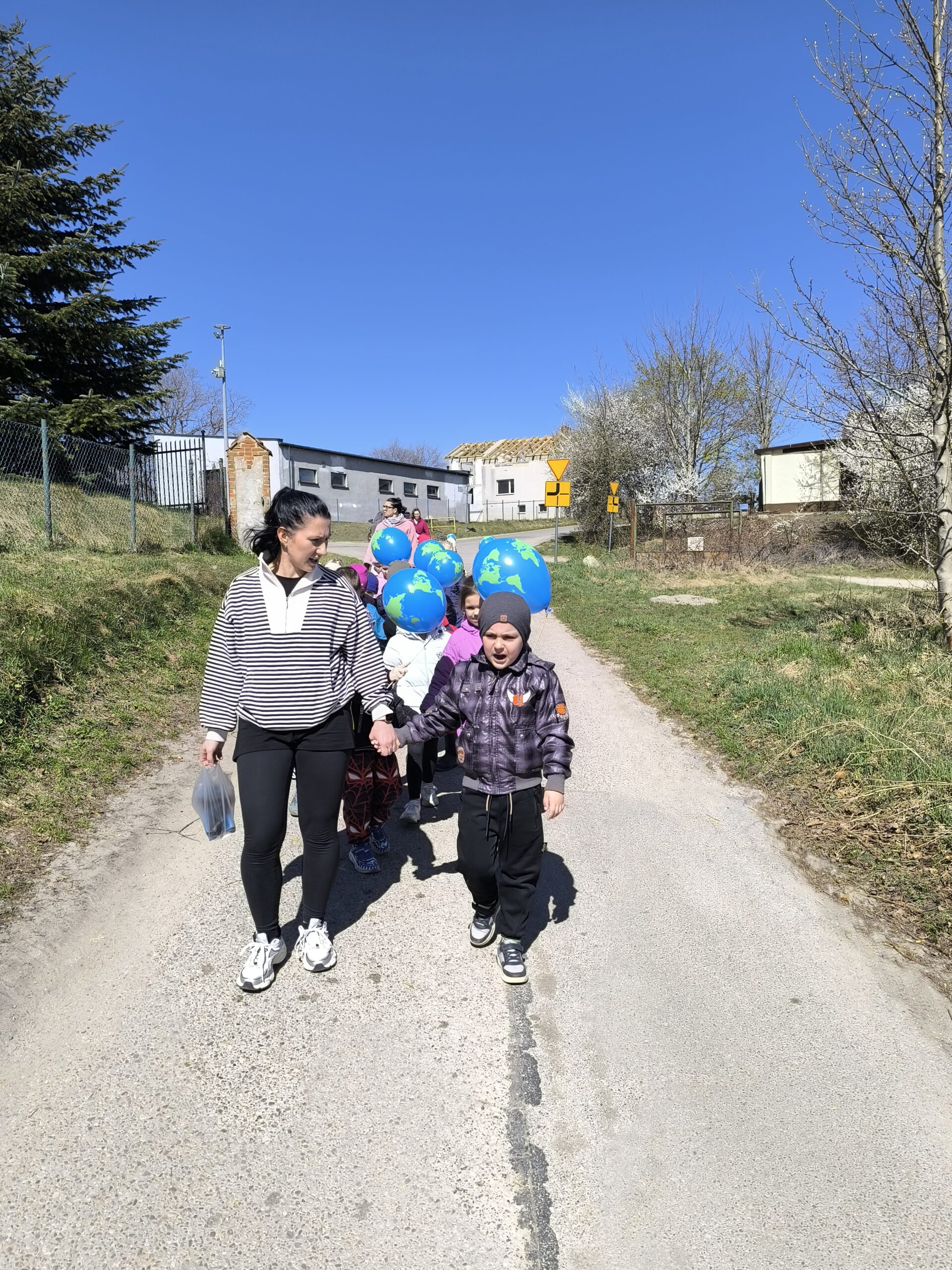 Pierwsza część wydarzenia odbyła się z udziałem przedszkolaków oraz uczniów klas 0–3. Najmłodsi aktywnie włączyli się w sprzątanie najbliższej okolicy szkoły, ucząc się jednocześnie odpowiedzialności za środowisko naturalne. Dodatkowo dzieci rozwiązywały zagadki i rebusy związane z codzienną troską o naszą planetę. Na szkolnym korytarzu pojawiła się także gazetka tematyczna poświęcona Dniu Ziemi, która przybliżyła uczniom znaczenie ekologicznych działań.