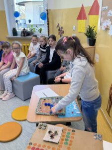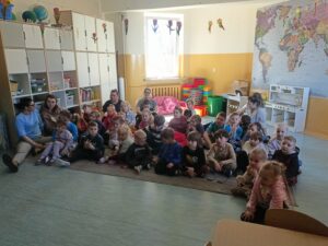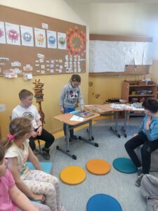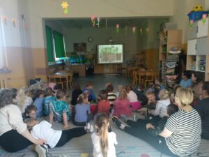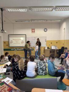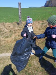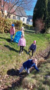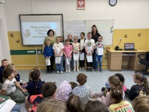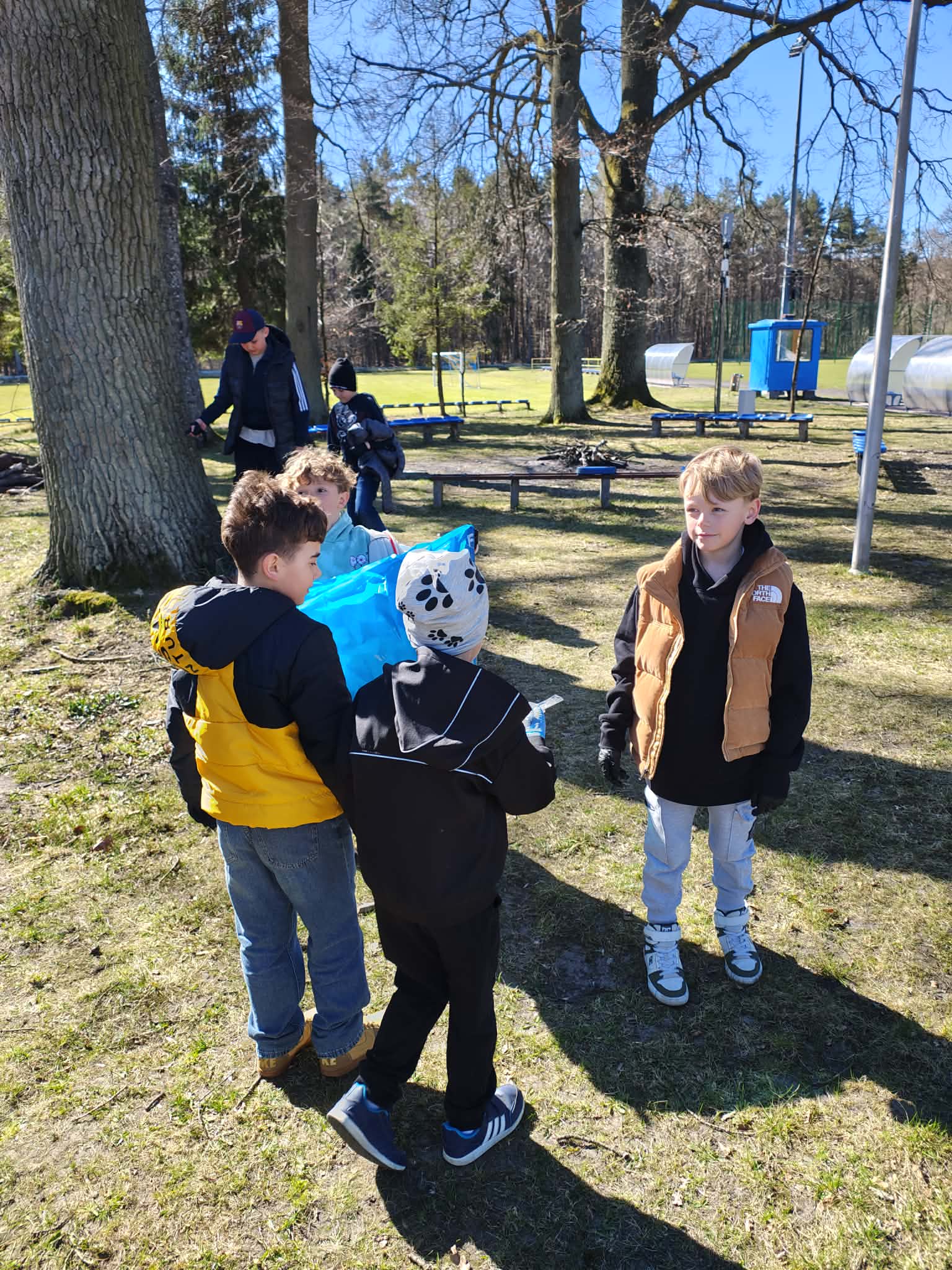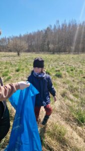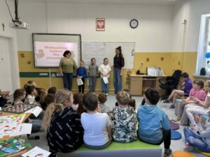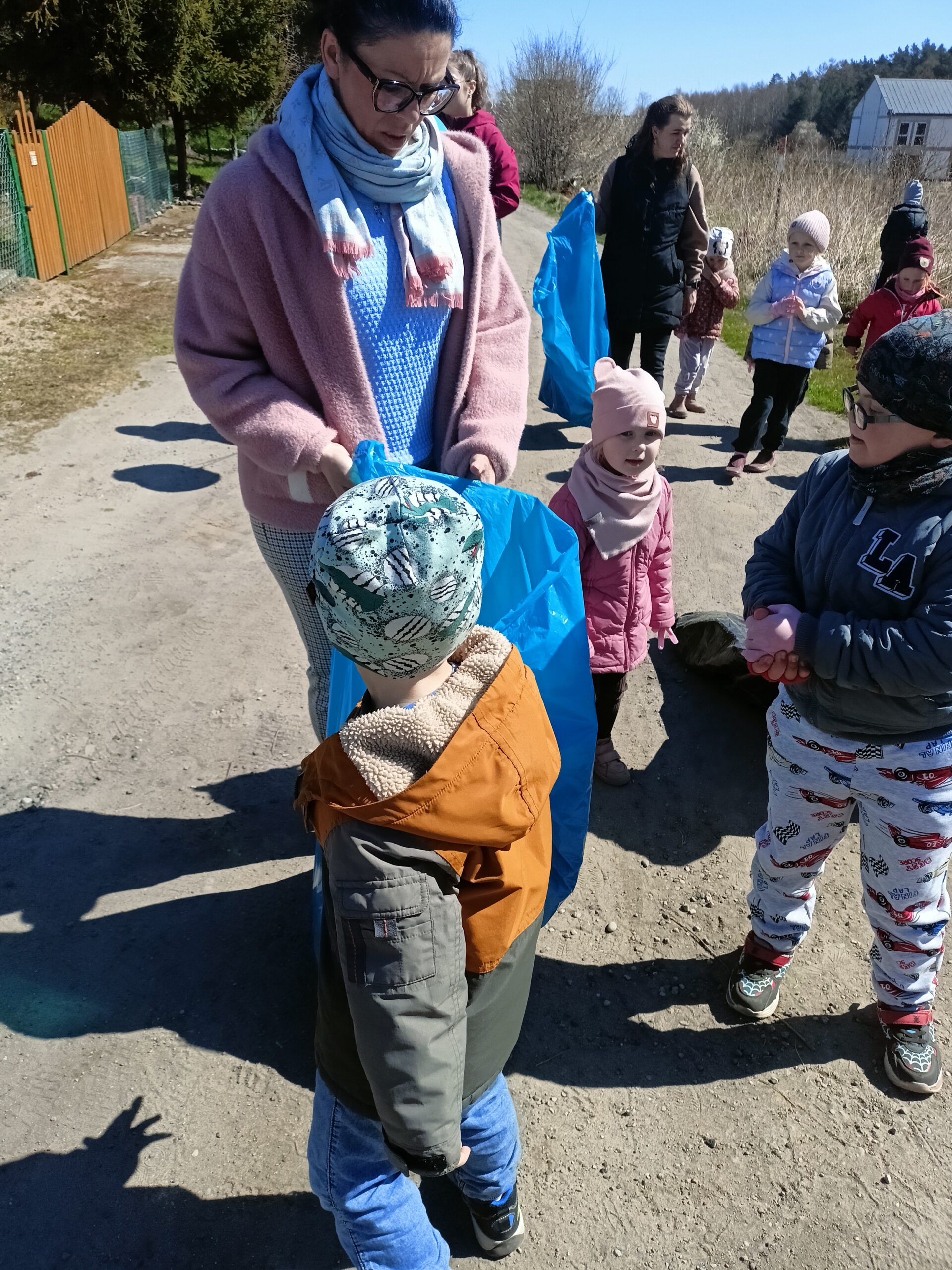 Pierwsza część wydarzenia odbyła się z udziałem przedszkolaków oraz uczniów klas 0–3. Najmłodsi aktywnie włączyli się w sprzątanie najbliższej okolicy szkoły, ucząc się jednocześnie odpowiedzialności za środowisko naturalne. Dodatkowo dzieci rozwiązywały zagadki i rebusy związane z codzienną troską o naszą planetę. Na szkolnym korytarzu pojawiła się także gazetka tematyczna poświęcona Dniu Ziemi, która przybliżyła uczniom znaczenie ekologicznych działań.