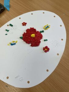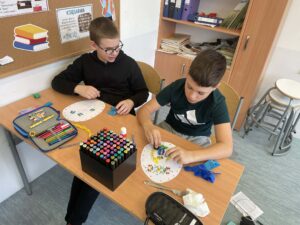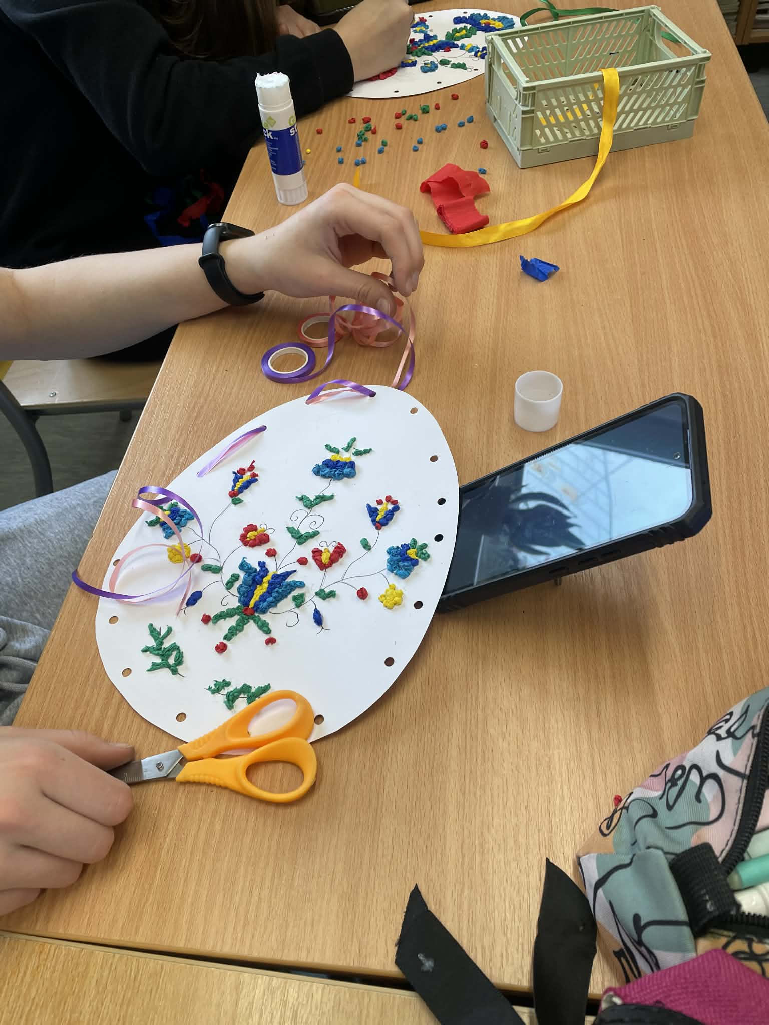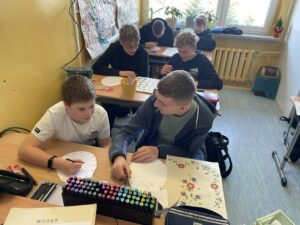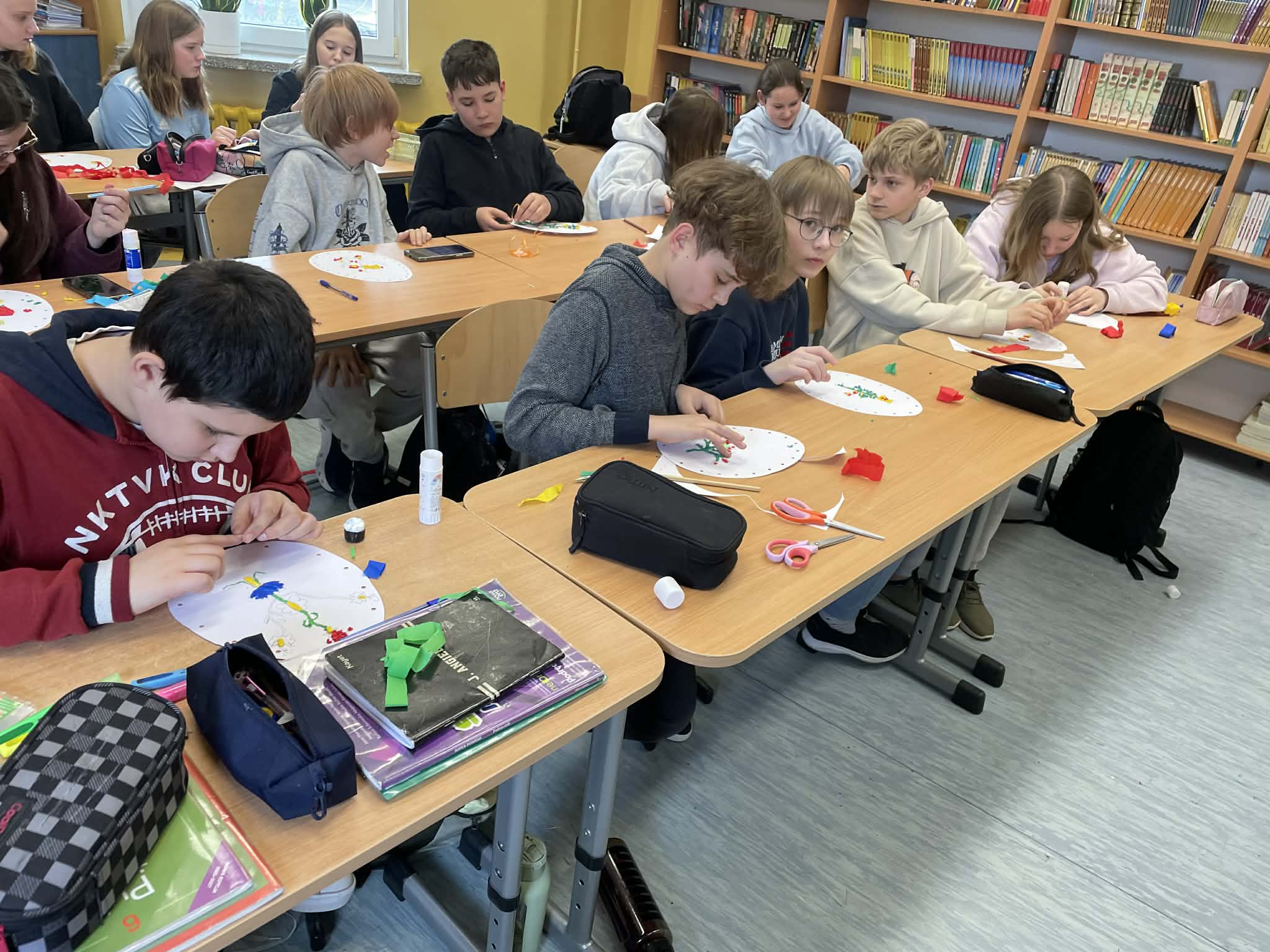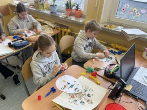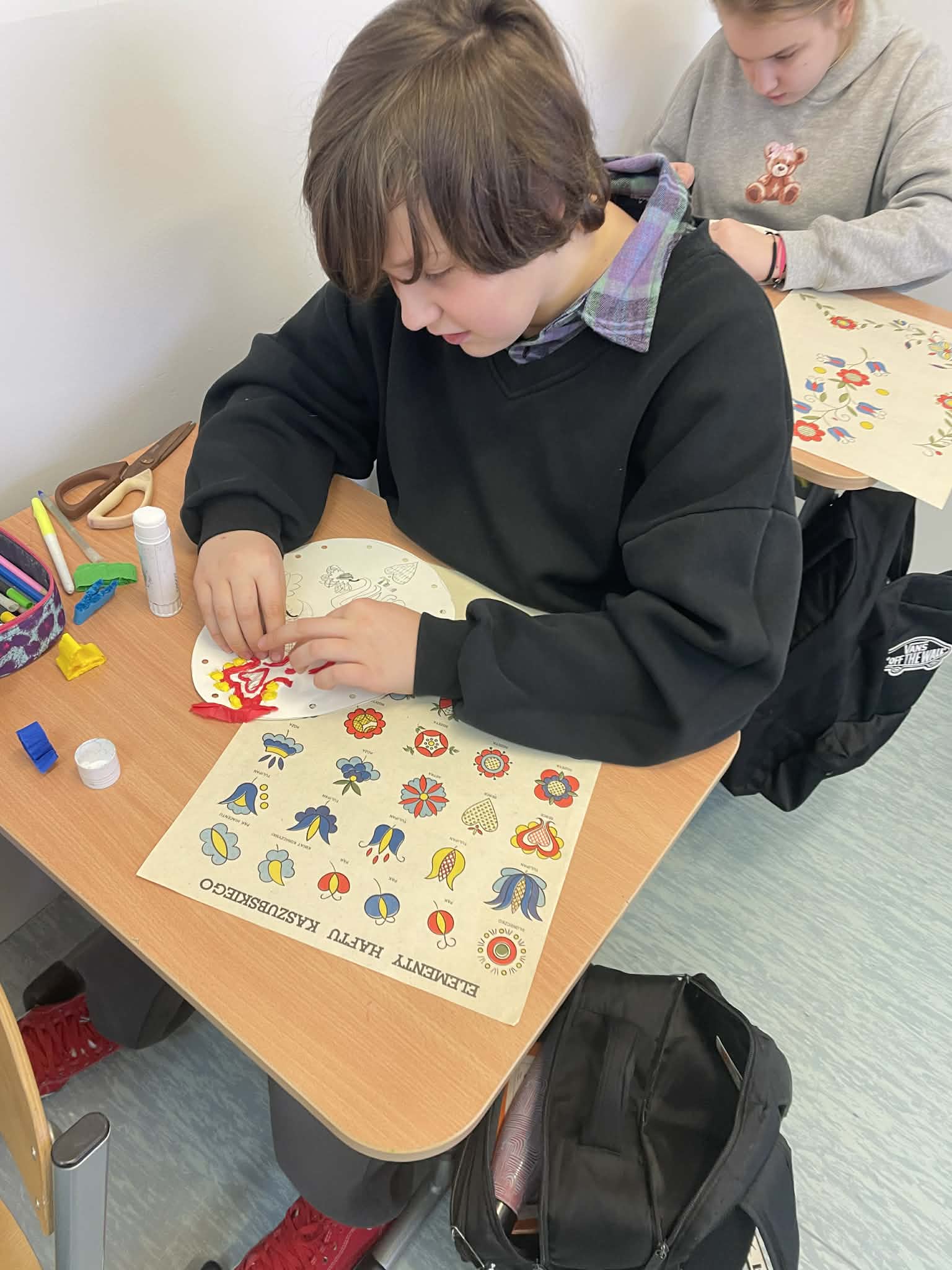 Podczas zajęć uczniowie poznali znaczenie wielkanocnych symboli oraz charakterystyczne elementy kaszubskiego wzornictwa. Następnie, wykorzystując kolorowy papier, bibułę i różnorodne materiały plastyczne, przystąpili do tworzenia własnych pisanek. Praca wymagała nie tylko precyzji i cierpliwości, ale także wyobraźni i poczucia estetyki.