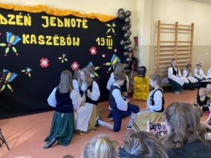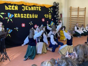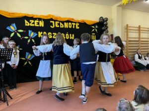 Kolejnym punktem programu było przedstawienie teatralne nawiązujące do idei Dnia Jedności Kaszubów, które spotkało się z dużym zainteresowaniem publiczności. Nie zabrakło również elementów tanecznych – uczniowie zaprezentowali tradycyjny taniec „Szewiec”, wprowadzając widzów w radosny, ludowy klimat.