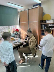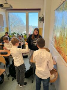 Panie – nasze dziewczynki otrzymały drobne upominki – breloczki z imieniem, piękne karteczki z życzeniami oraz słodkie cukierki z napisem „Słodkiego Dnia Kobiet”. W imieniu Samorządu Uczniowskiego przedstawiciele – Paweł, Hubert i Miłosz – złożyli wszystkim Paniom serdeczne życzenia, życząc wszystkiego najlepszego, dużo radości, zdrowia oraz wielu słonecznych dni. Ten miły gest sprawił wiele radości i wywołał uśmiechy na twarzach obdarowanych Pań.