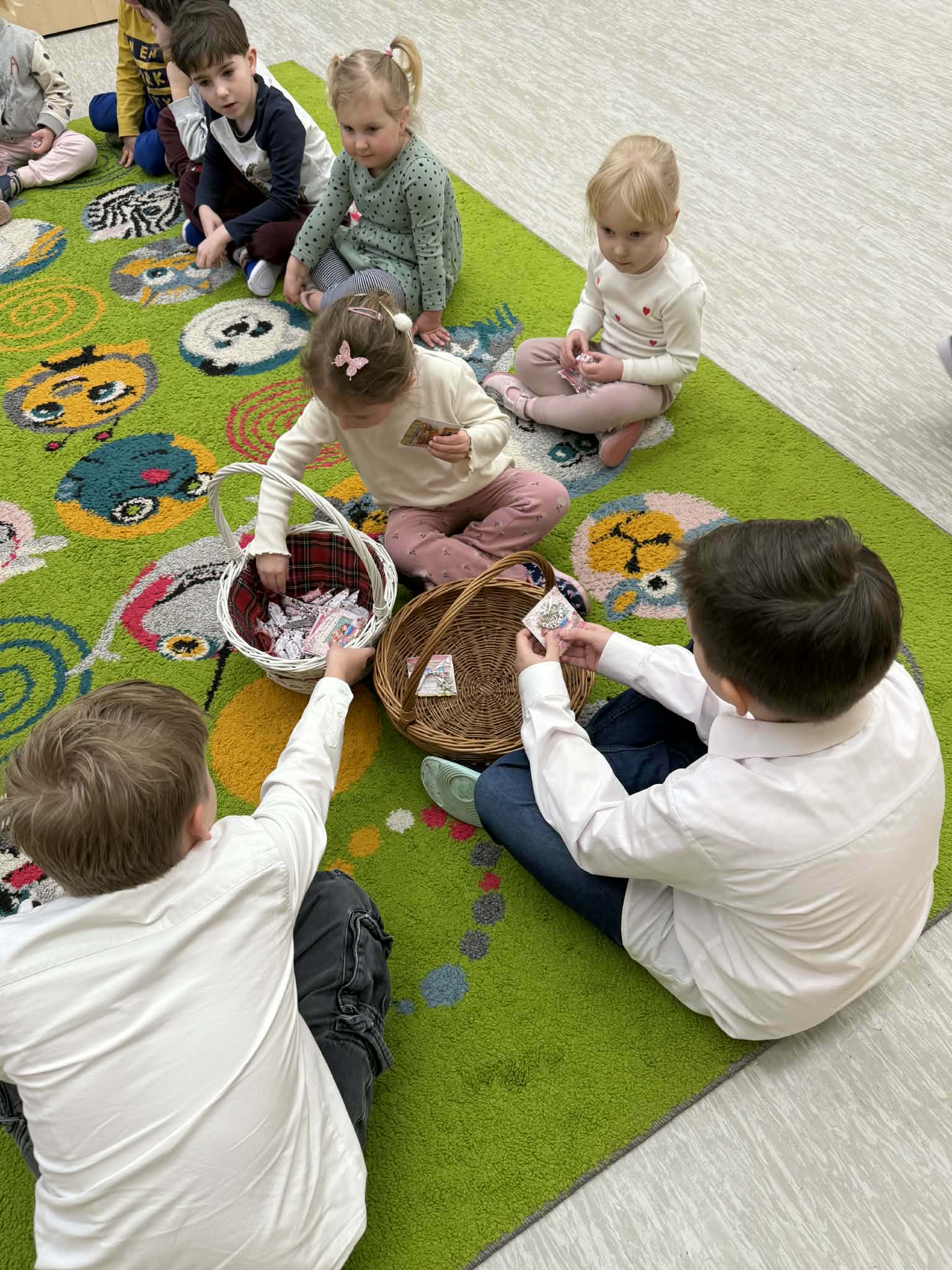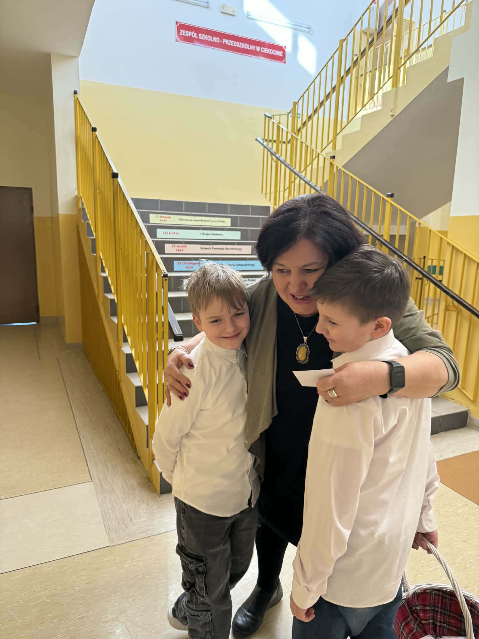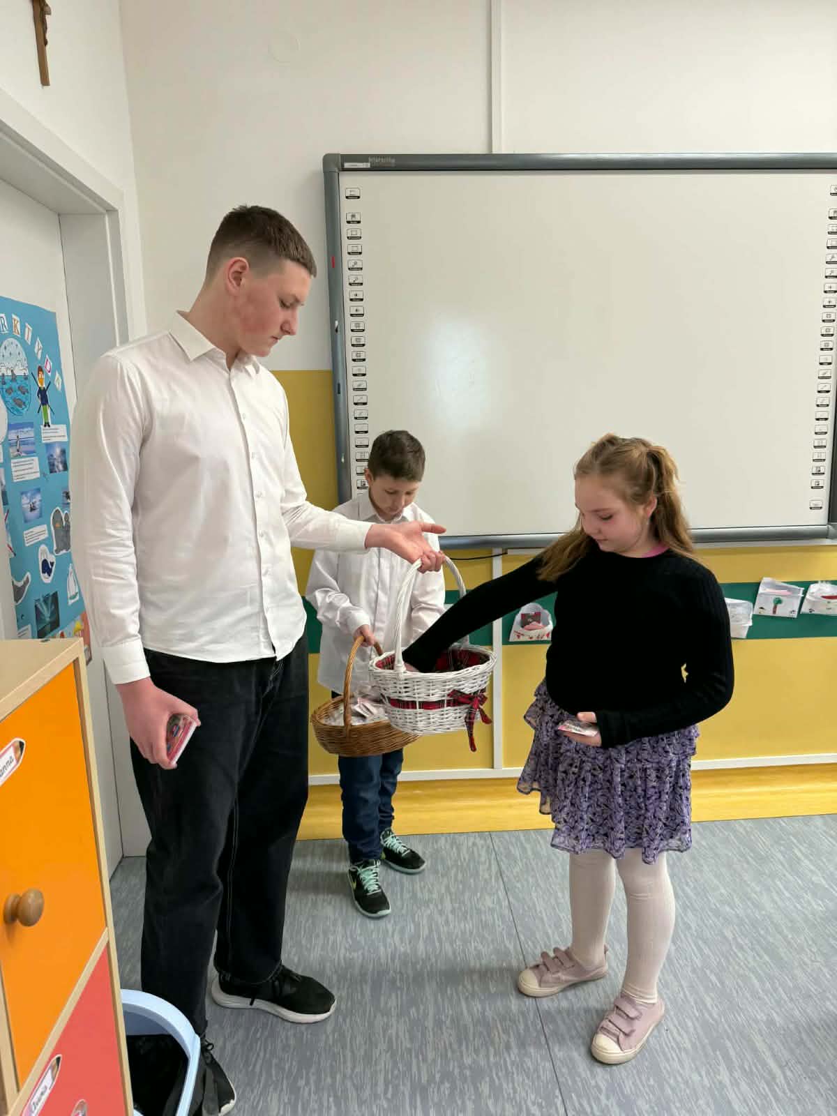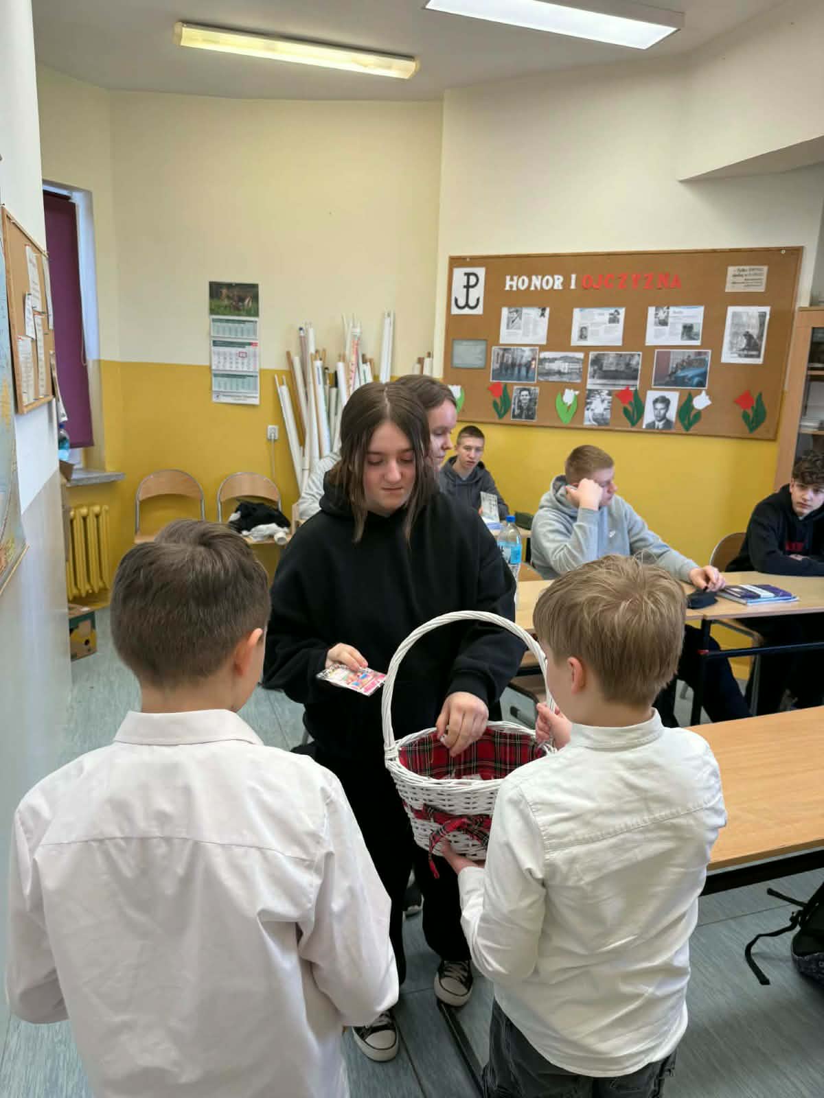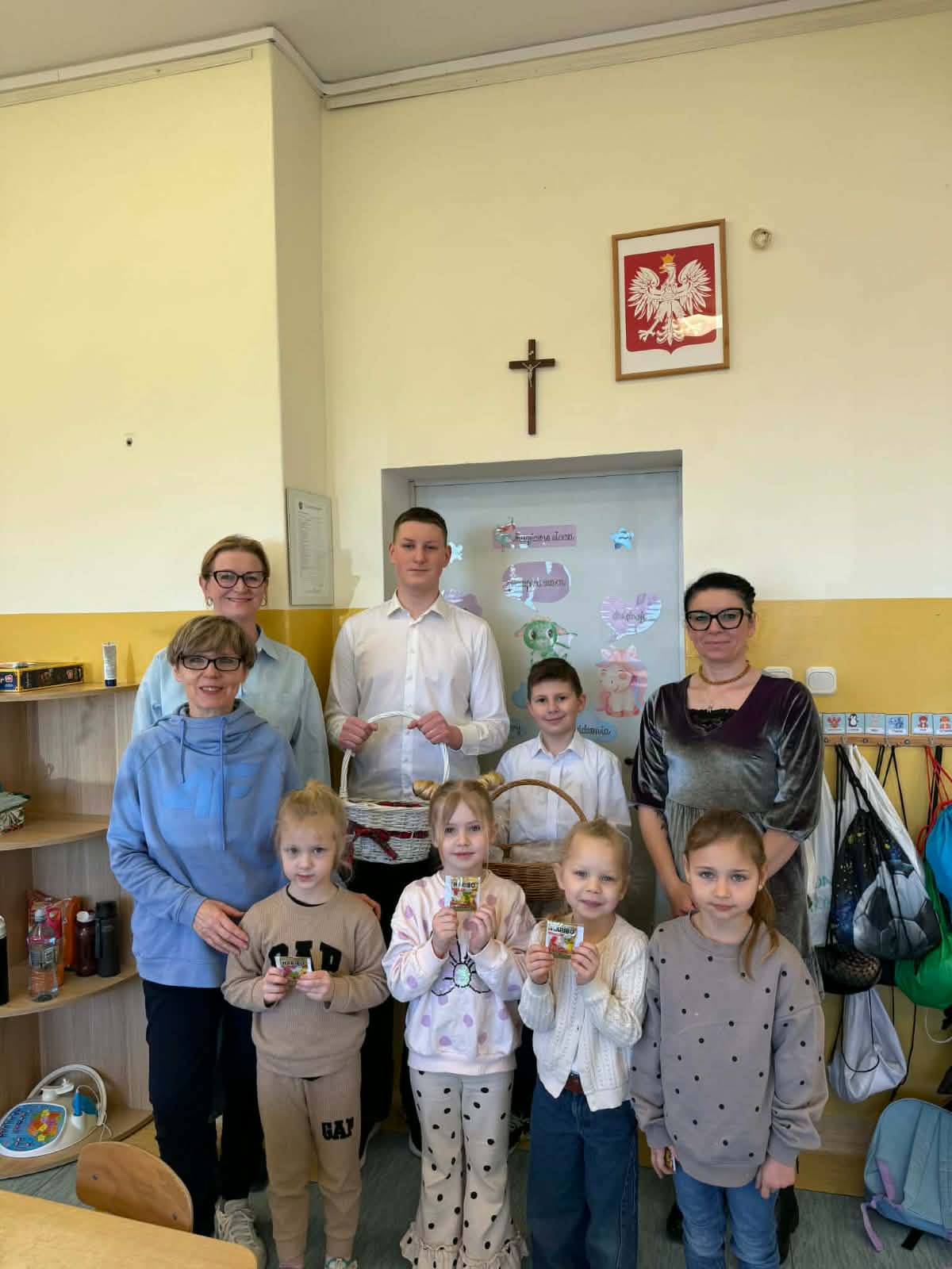 Panie – nasze dziewczynki otrzymały drobne upominki – breloczki z imieniem, piękne karteczki z życzeniami oraz słodkie cukierki z napisem „Słodkiego Dnia Kobiet”. W imieniu Samorządu Uczniowskiego przedstawiciele – Paweł, Hubert i Miłosz – złożyli wszystkim Paniom serdeczne życzenia, życząc wszystkiego najlepszego, dużo radości, zdrowia oraz wielu słonecznych dni. Ten miły gest sprawił wiele radości i wywołał uśmiechy na twarzach obdarowanych Pań.