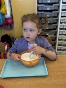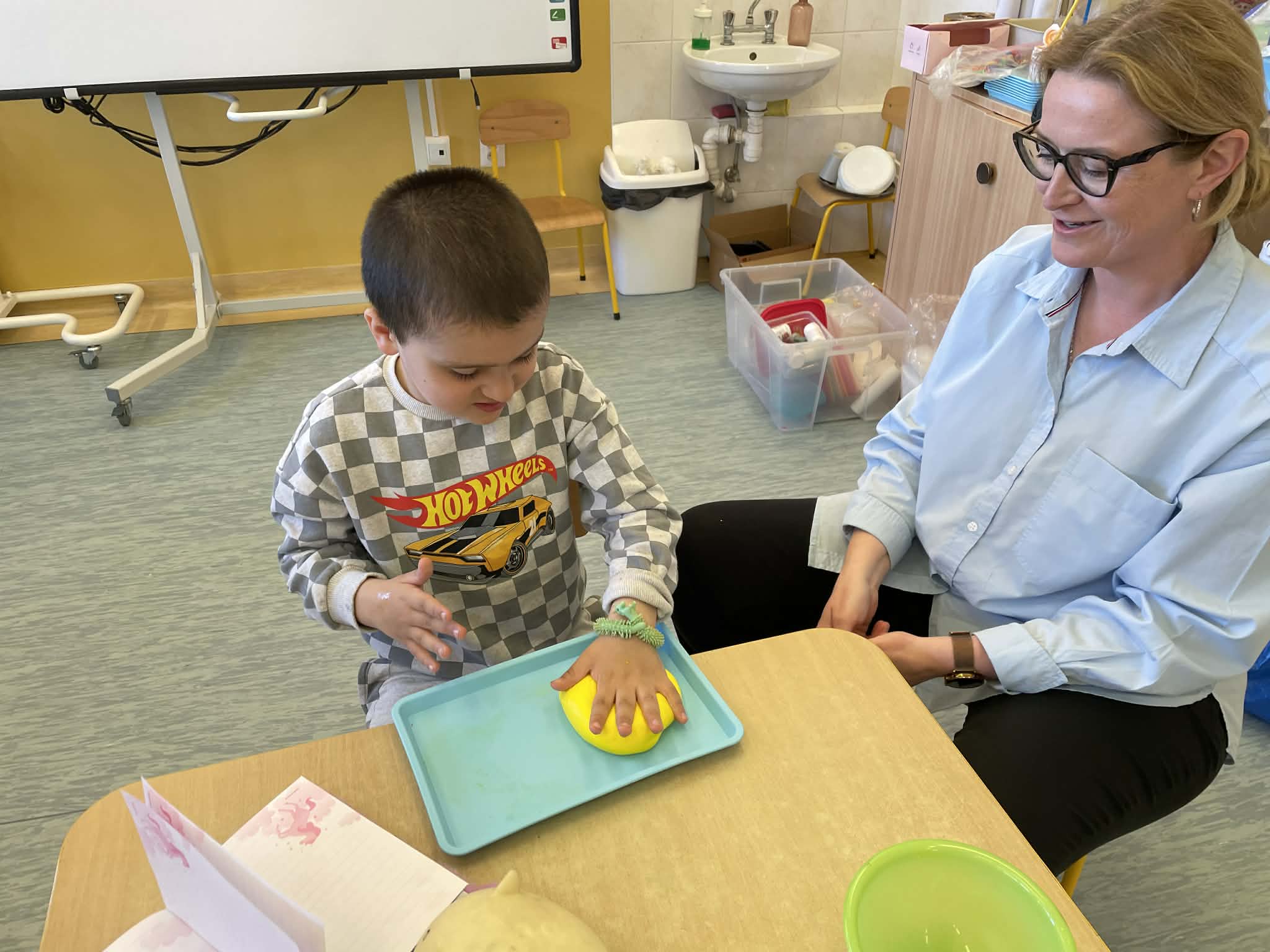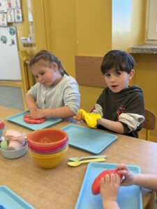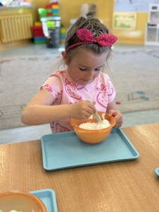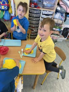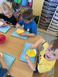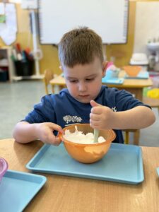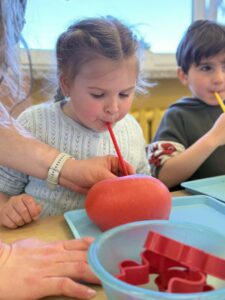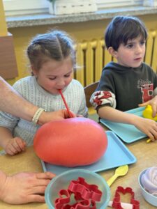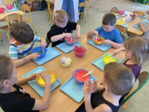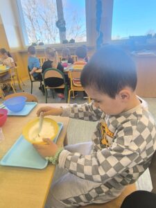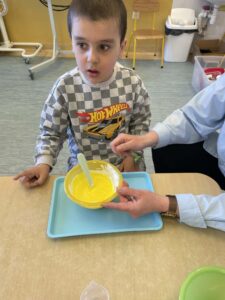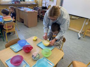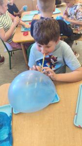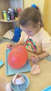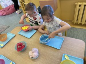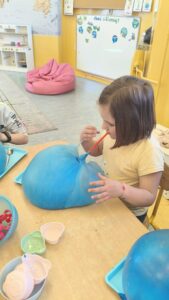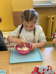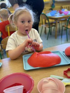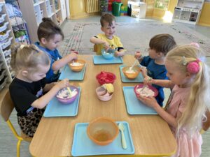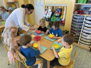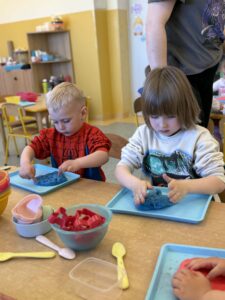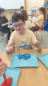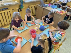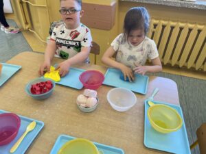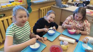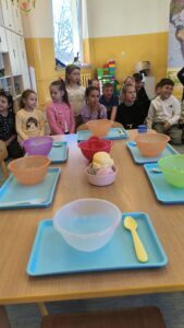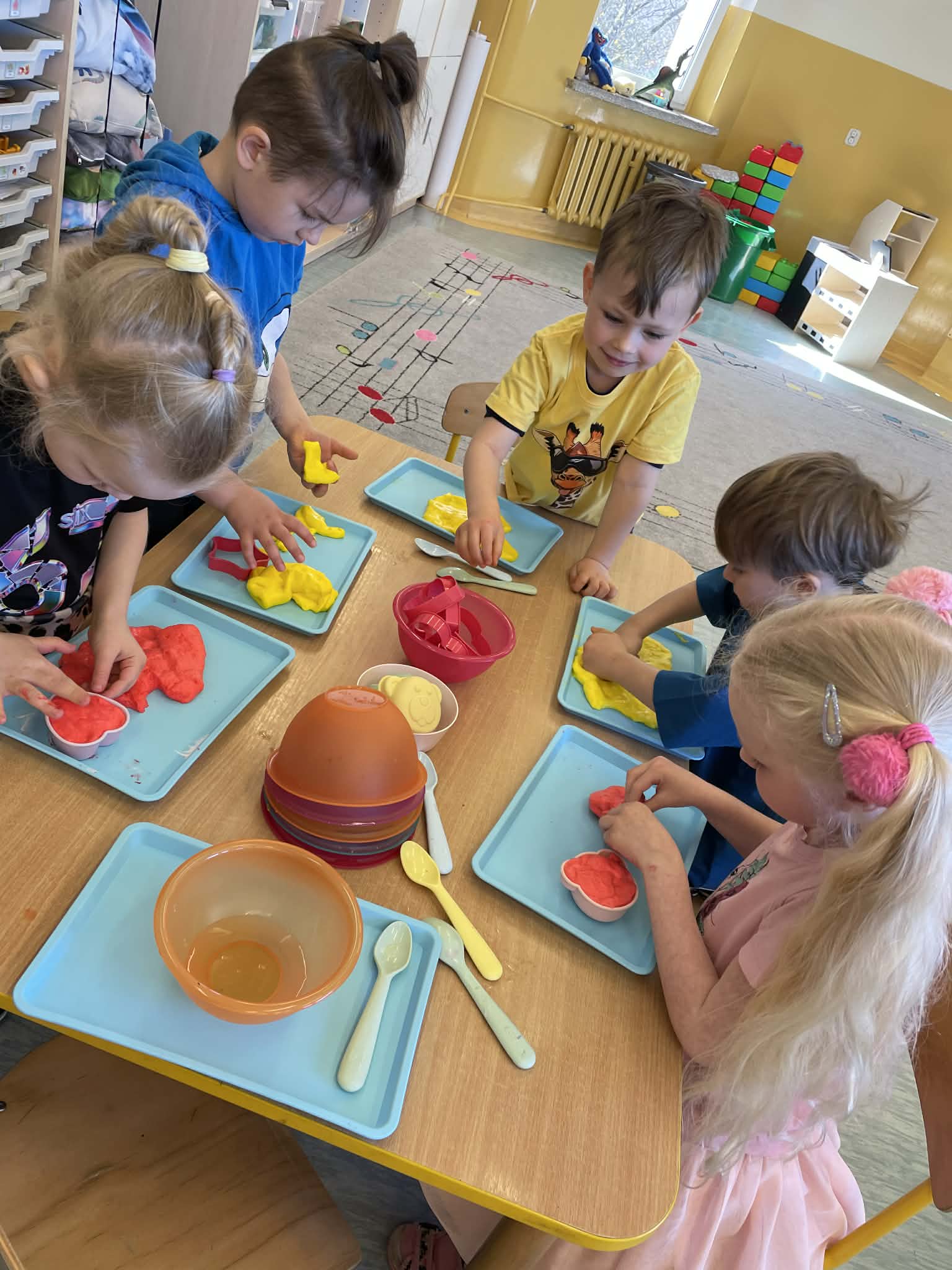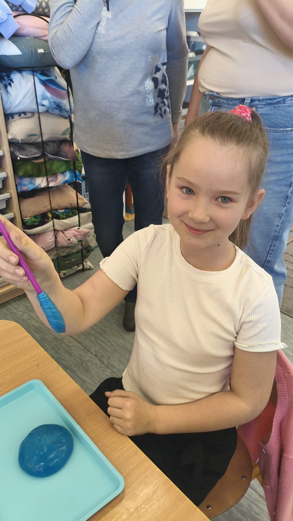 Największą atrakcją zajęć było samodzielne wykonywanie przez dzieci ekologicznego slime’u. Uczestnicy mogli eksperymentować, obserwować zmiany zachodzące w substancjach oraz przekonać się, jak w praktyce działają poznane wcześniej zjawiska. Warsztaty nie tylko rozwijały ciekawość poznawczą, ale również kształtowały świadomość ekologiczną najmłodszych.