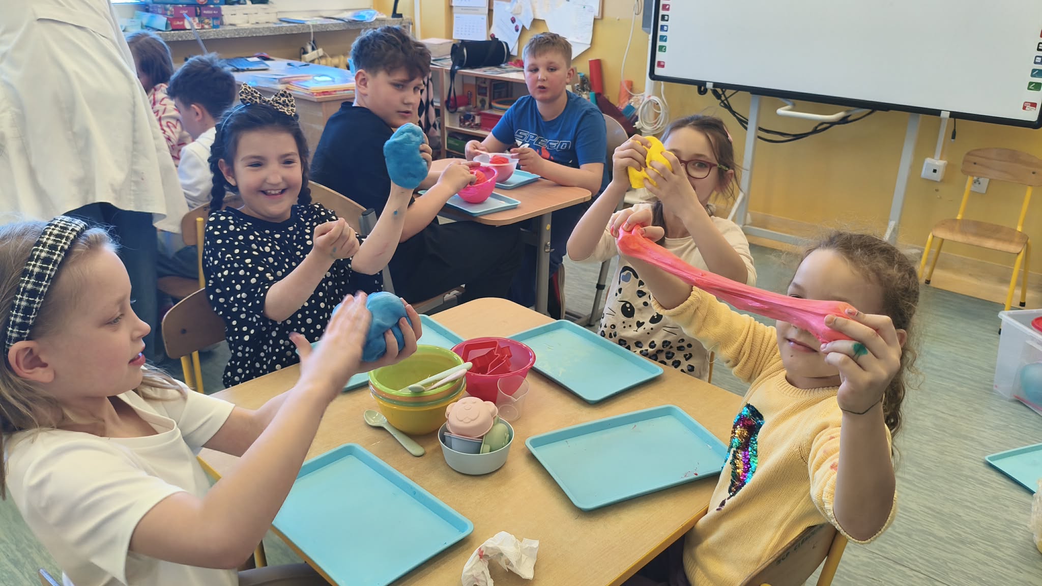 W naszej szkole odbyły się niezwykle ciekawe i angażujące warsztaty ekologiczne „Eko–slime”, przygotowane i przeprowadzone przez firmę Logosfera. W wydarzeniu wzięli udział uczniowie klas I–III oraz dzieci z oddziału przedszkolnego, które z ogromnym zainteresowaniem uczestniczyły w zajęciach łączących naukę z dobrą zabawą.