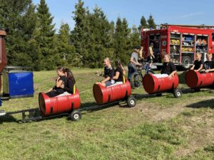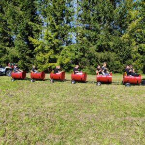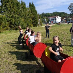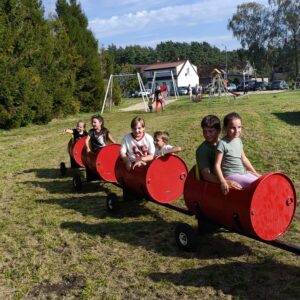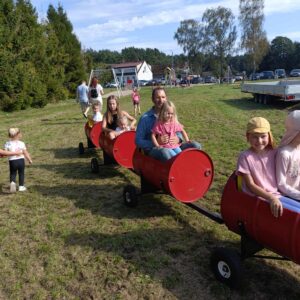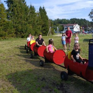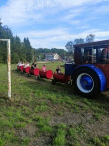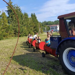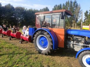 • przejażdżki traktorową lokomotywą z wagonikami.