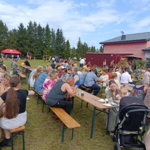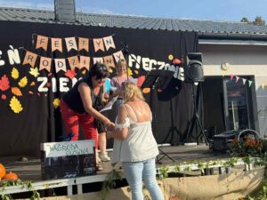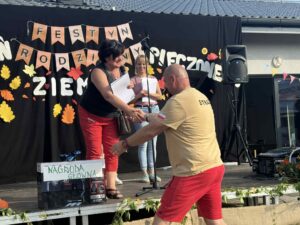 Nie zabrakło także wspólnej zabawy – taniec połączył starszych i młodszych, a na zakończenie wszyscy z niecierpliwością oczekiwali na losowanie głównej nagrody związanej z  loterią „szalone słoiki”. Czas oczekiwania na losowanie umilił koncert  Pana Garego Feinmessera- miejscowego muzyka z Ciekocina, który od niedawna zamieszkuje na naszym terenie. Kiedy główna nagroda została wylosowana, a był nią bezprzewodowy odkurzacz, odbyło się największe szaleństwo, czyli kąpiel w białej, puszystej pianie ufundowanej przez strażaków OSP Słajszewo. Ten punkt programu najbardziej spodobał się dzieciom i młodzieży.
