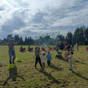 W niedzielę, 21 września 2025 roku, nasza szkolna społeczność tętniła życiem podczas tradycyjnego Festynu Rodzinnego „Święto Pieczonego Ziemniaka” zorganizowanego przy współpracy Rady Rodziców, Dyrekcji, nauczycieli i uczniów.  W tym roku z racji trwającego remontu szkoły odbył się on w Słajszewie. Tego dnia teren miejscowej remizy wypełnił się gwarem, śmiechem i atmosferą prawdziwej wspólnoty.