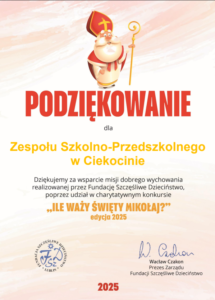 W okresie przedświątecznym nasza szkoła włączyła się w ogólnopolską akcję charytatywną „Ile waży św. Mikołaj”, której celem jest zbiórka monet na rzecz potrzebujących. Inicjatywa ta po raz kolejny spotkała się z dużym zaangażowaniem całej społeczności szkolnej – uczniów, rodziców oraz nauczycieli.