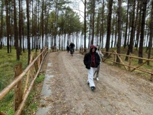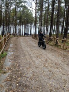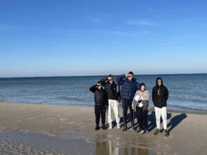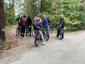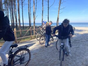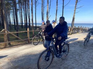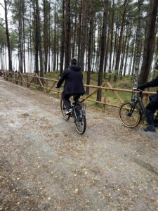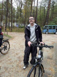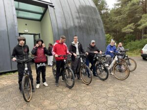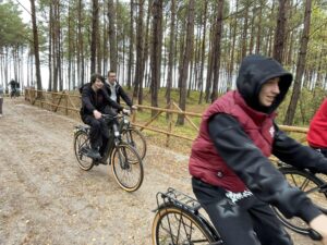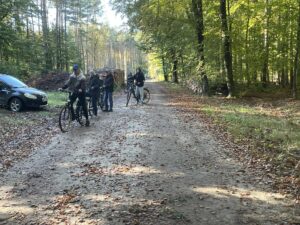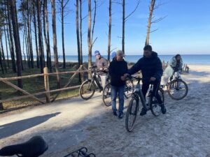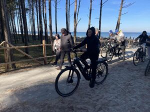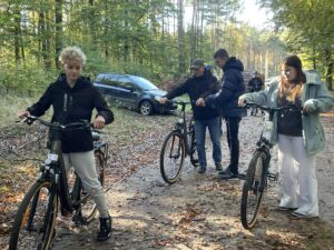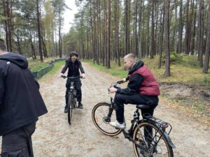 Po części teoretycznej przyszedł czas na praktykę! Uczniowie wraz z podopiecznymi ośrodka ruszyli na wspólną przejażdżkę rowerami elektrycznymi po lesie i nad morze. To była świetna okazja, by w bezpośrednim kontakcie przekonać się, jak działają te pojazdy i jak wiele radości mogą przynieść wspólne aktywności na świeżym powietrzu.