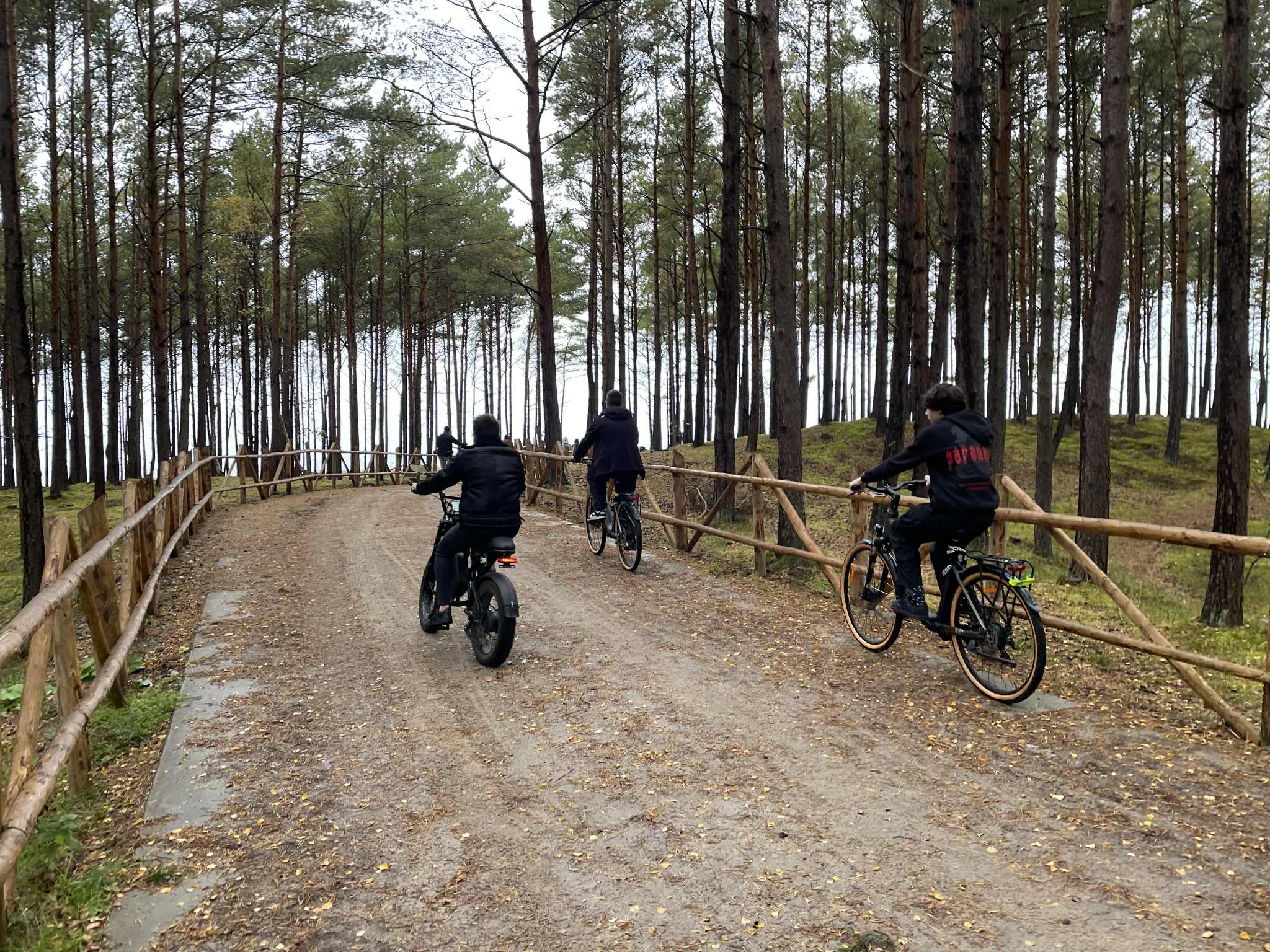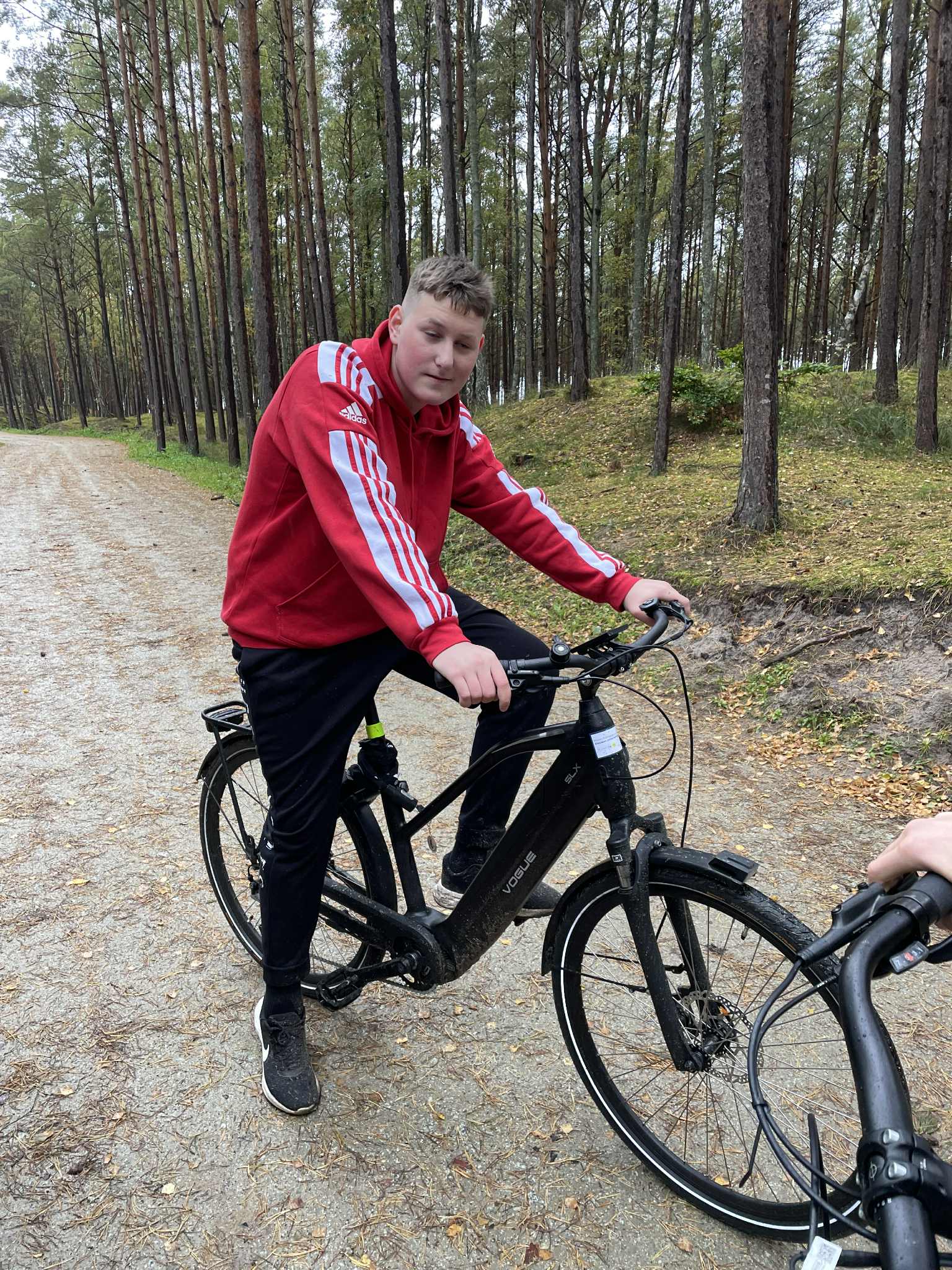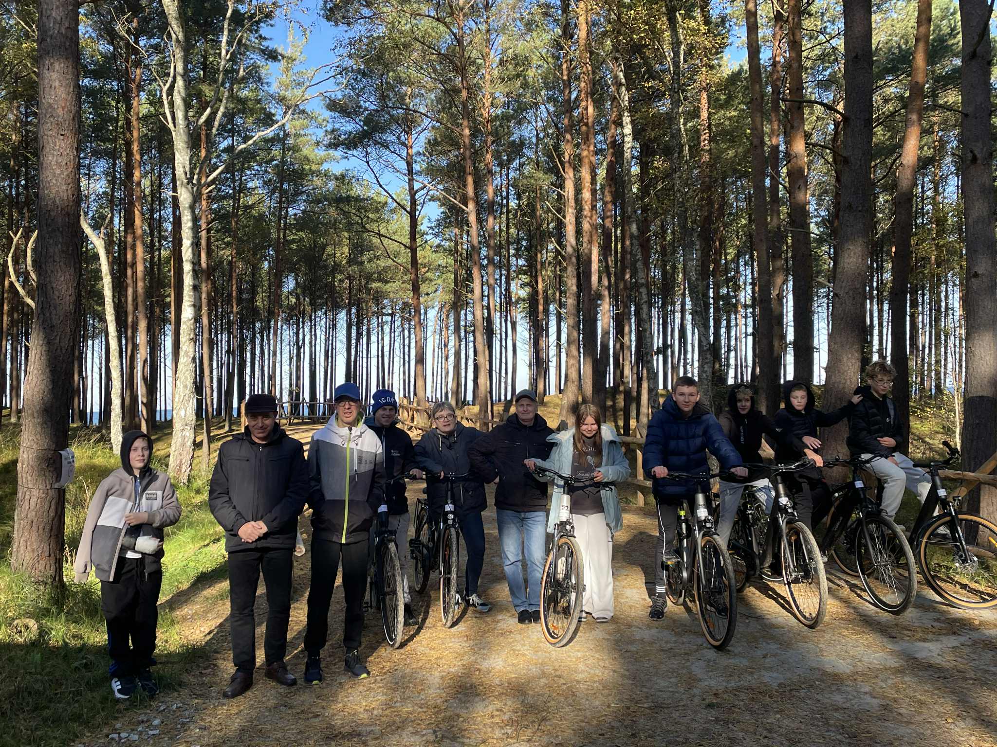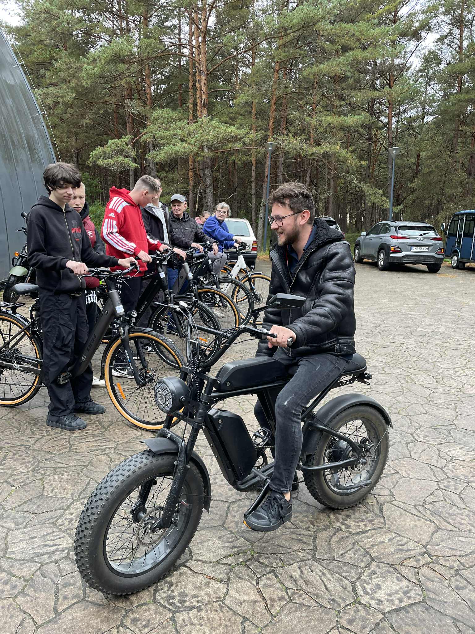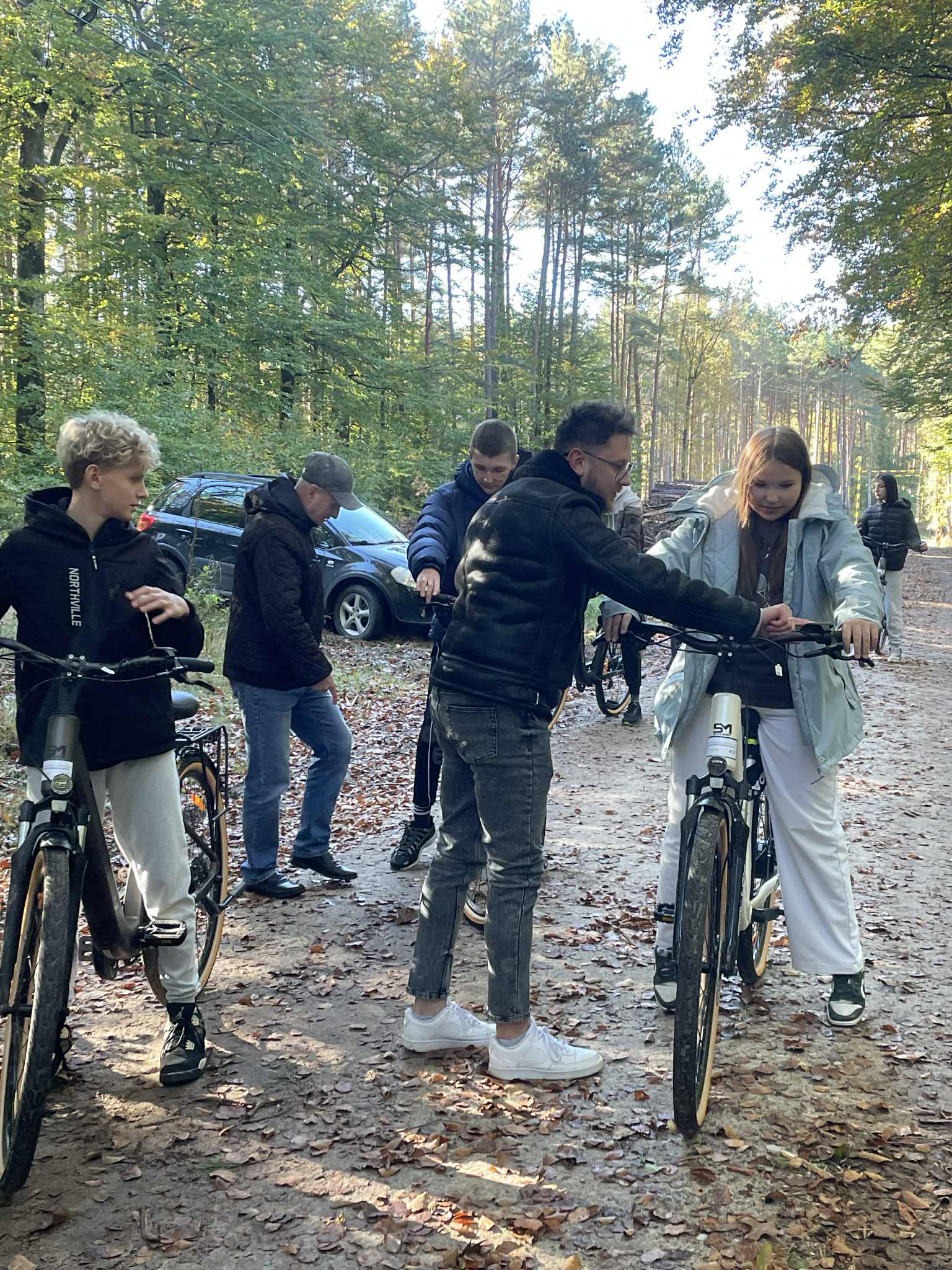 Po części teoretycznej przyszedł czas na praktykę! Uczniowie wraz z podopiecznymi ośrodka ruszyli na wspólną przejażdżkę rowerami elektrycznymi po lesie i nad morze. To była świetna okazja, by w bezpośrednim kontakcie przekonać się, jak działają te pojazdy i jak wiele radości mogą przynieść wspólne aktywności na świeżym powietrzu.