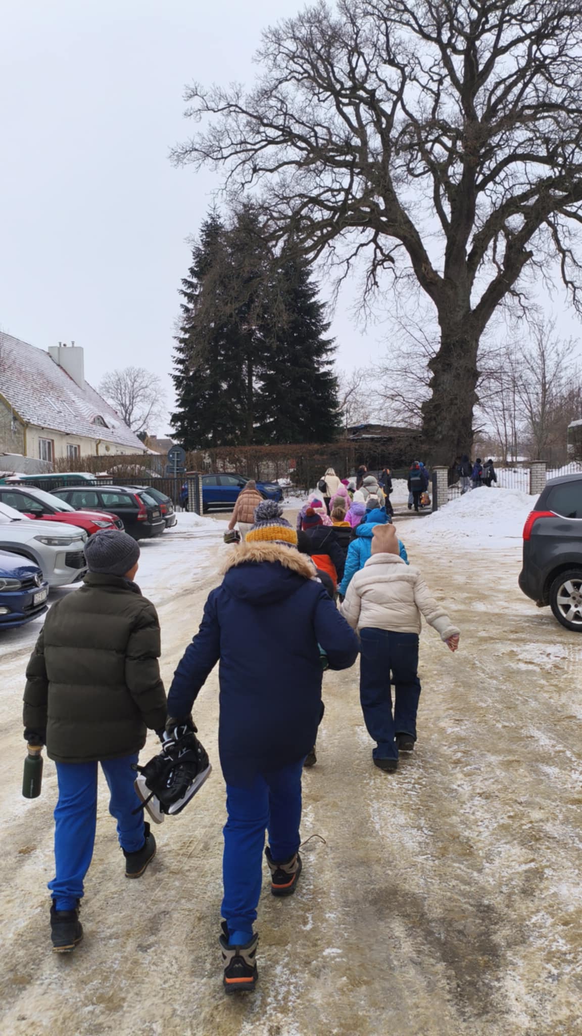 Dzisiaj uczniowie klas I–IV uczestniczyli w integracyjnym wyjeździe na lodowisko do Łeby. Celem wyjazdu była wspólna zabawa, aktywne spędzenie czasu oraz wzmacnianie relacji między uczniami.