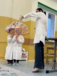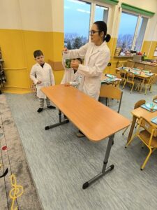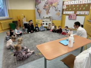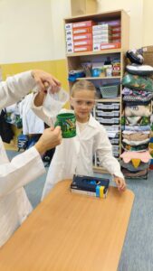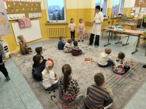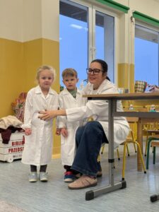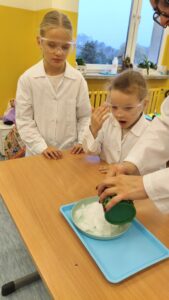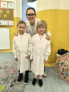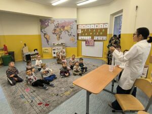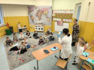 W środę, 20 listopada, w naszym przedszkolu oraz w klasach 0–3 odbyły się wyjątkowe warsztaty edukacyjne „Laboratorium Małego Chemika”, prowadzone przez firmę Logosfera. Spotkanie pełne barwnych doświadczeń i fascynujących eksperymentów przeniosło dzieci w świat nauki, pobudziło ich ciekawość oraz pokazało, że chemia może być niezwykle interesująca – i całkowicie bezpieczna.