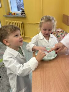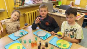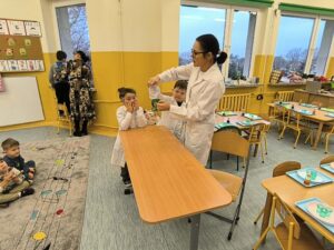 Zajęcia zostały przygotowane w taki sposób, aby każde dziecko mogło aktywnie uczestniczyć w eksperymentach. Kolorowe reakcje, musujące mieszanki czy tworzenie ekologicznych substancji nie tylko dostarczyły radości, ale również pomogły w zrozumieniu, jak ważna jest troska o planetę.
