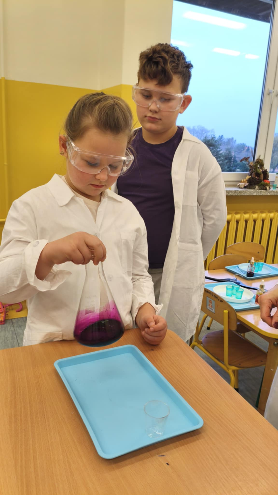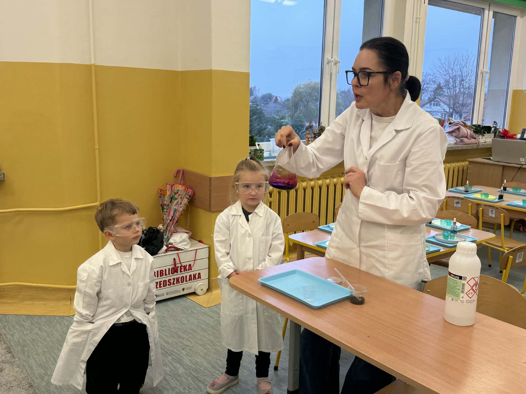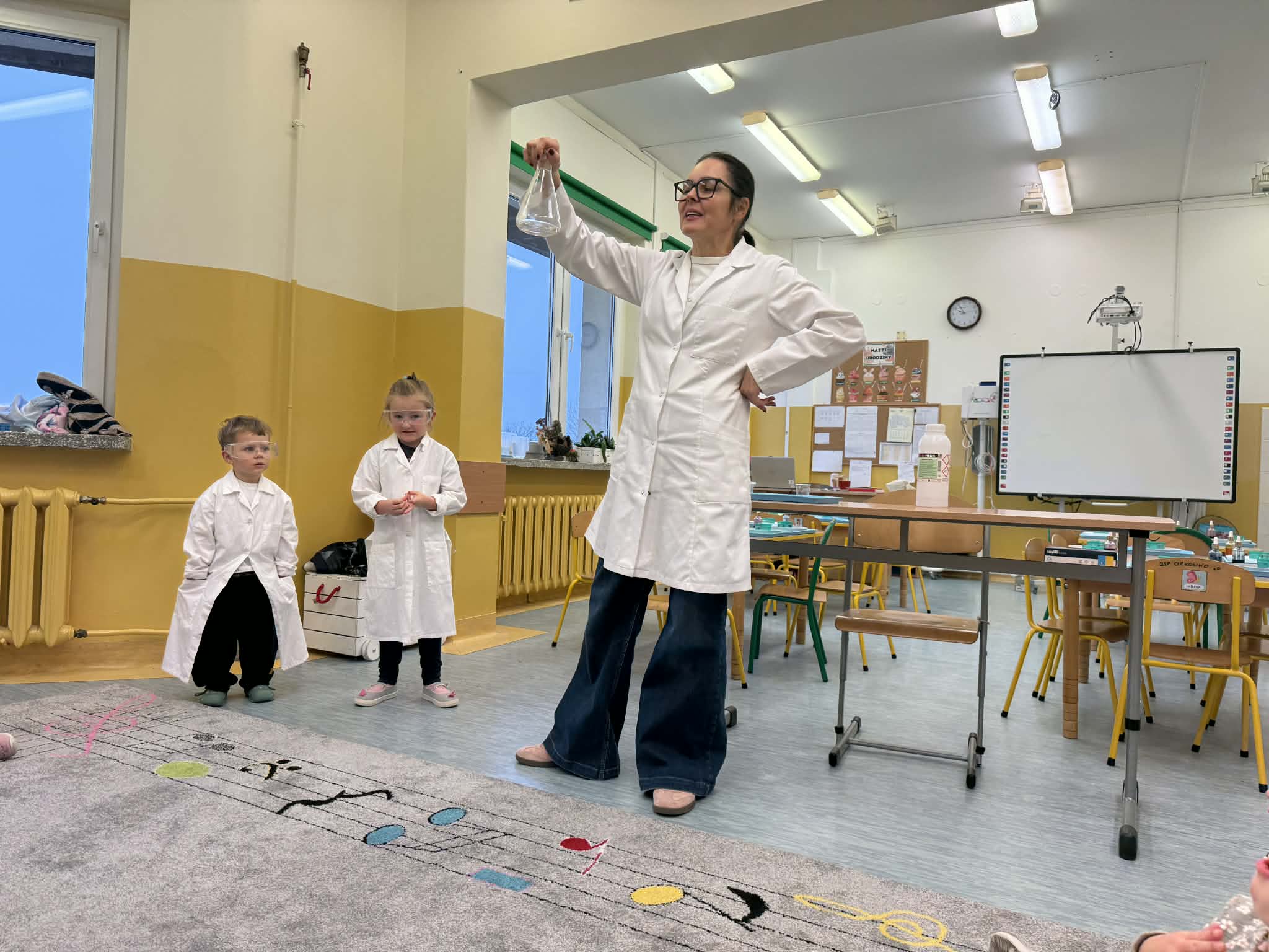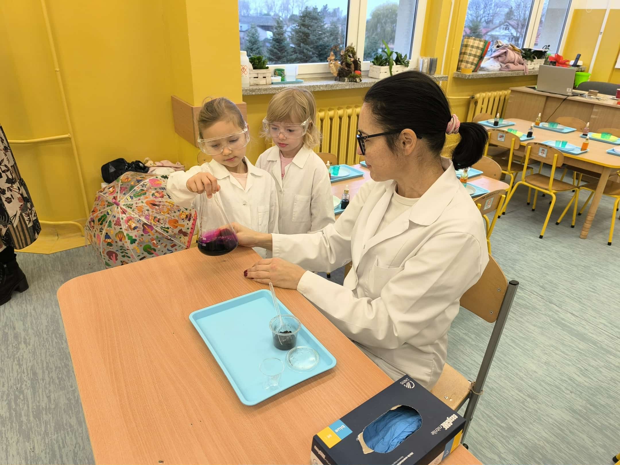 W środę, 20 listopada, w naszym przedszkolu oraz w klasach 0–3 odbyły się wyjątkowe warsztaty edukacyjne „Laboratorium Małego Chemika”, prowadzone przez firmę Logosfera. Spotkanie pełne barwnych doświadczeń i fascynujących eksperymentów przeniosło dzieci w świat nauki, pobudziło ich ciekawość oraz pokazało, że chemia może być niezwykle interesująca – i całkowicie bezpieczna.