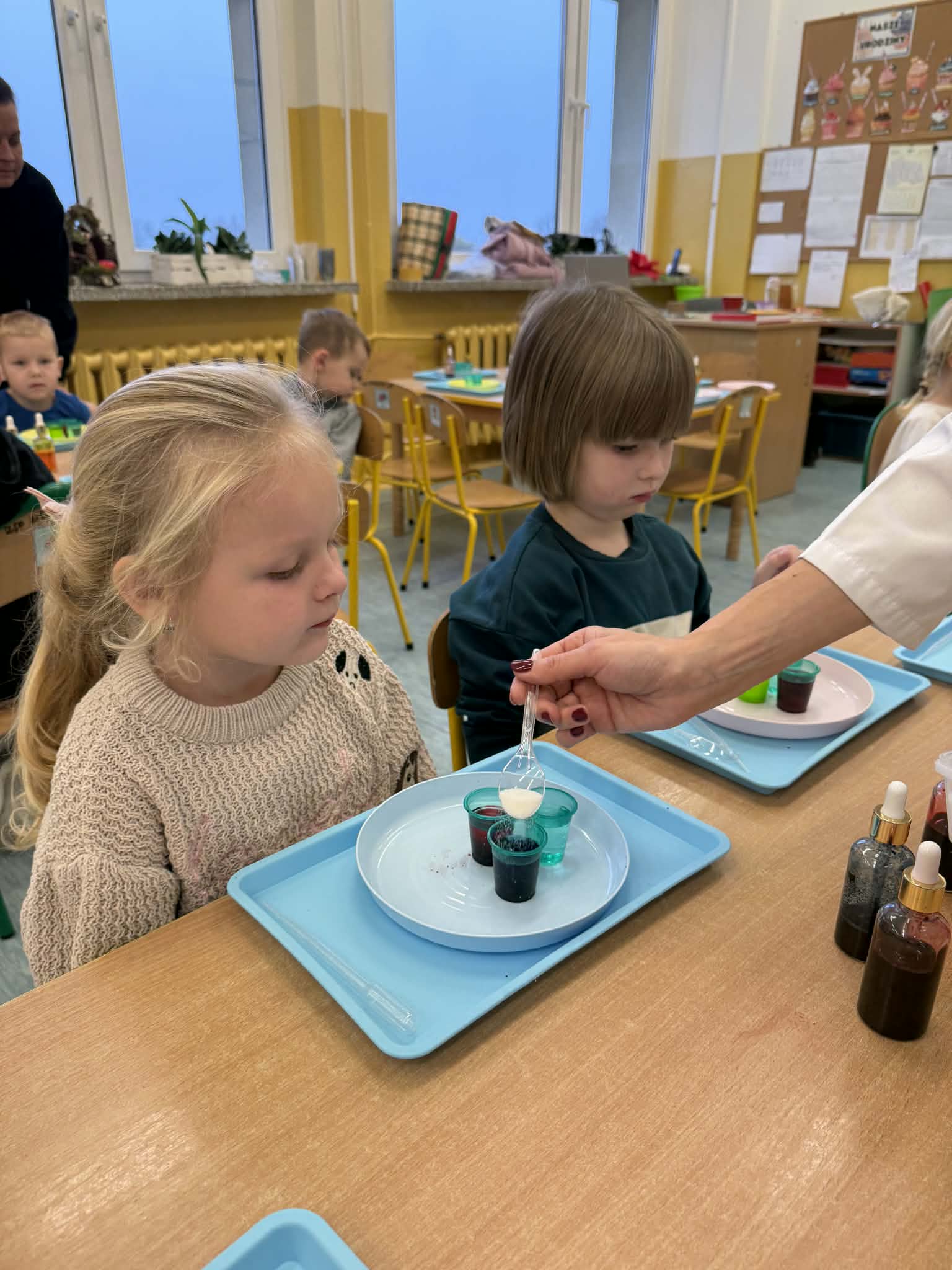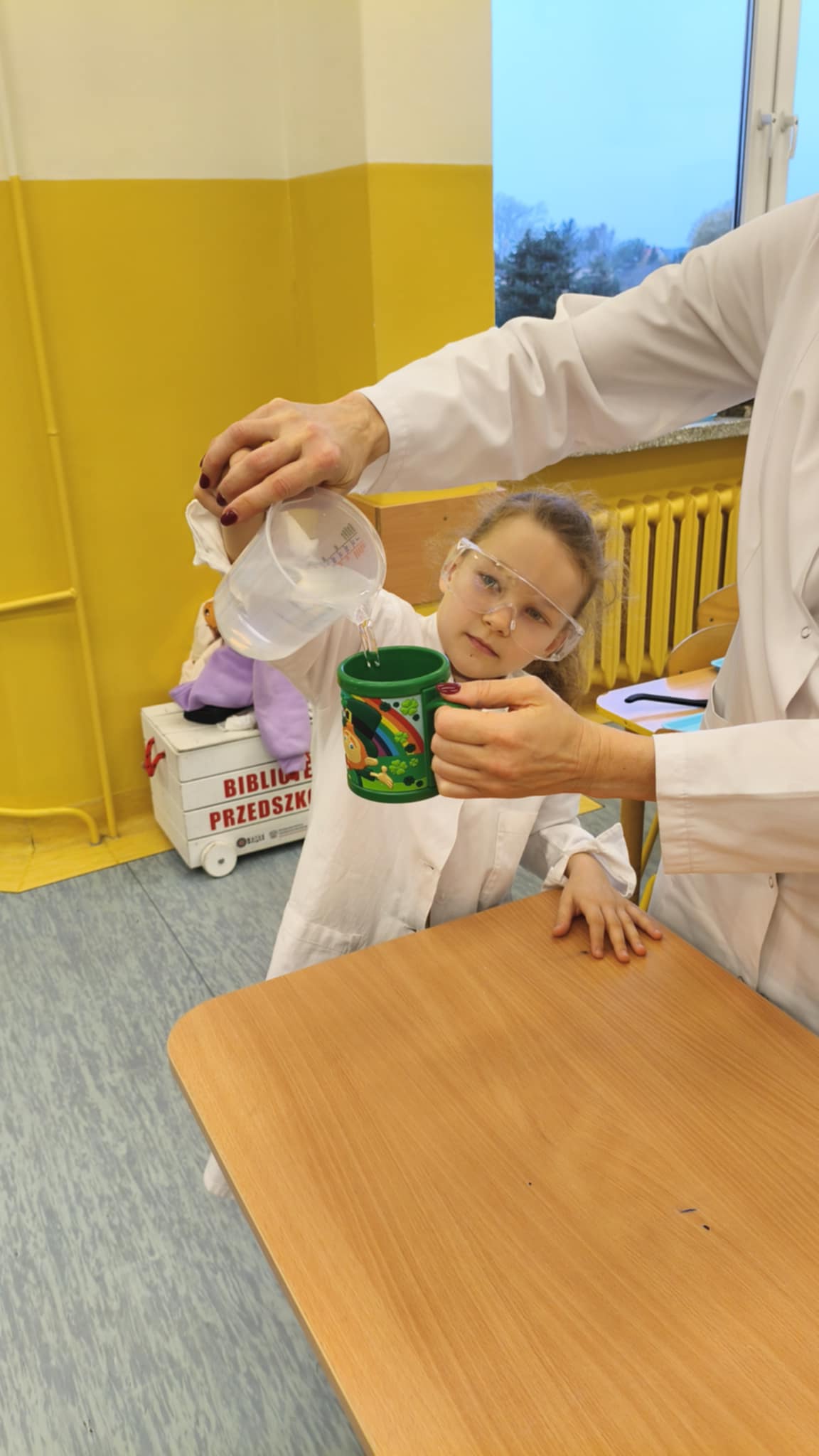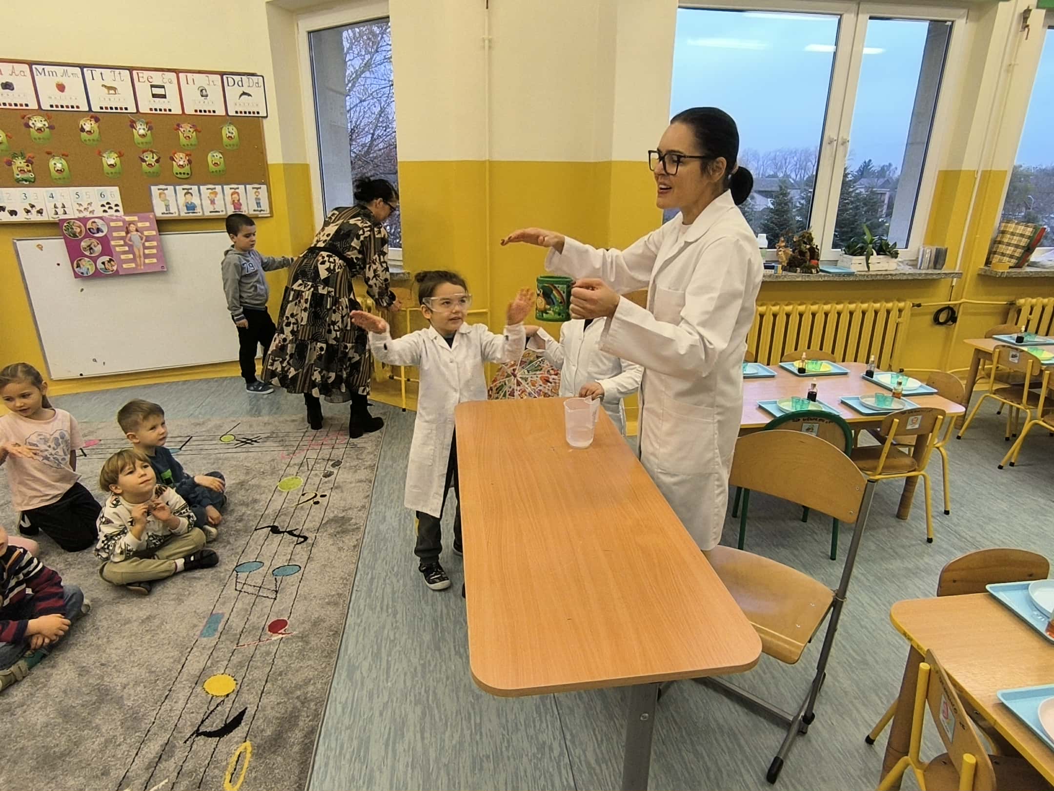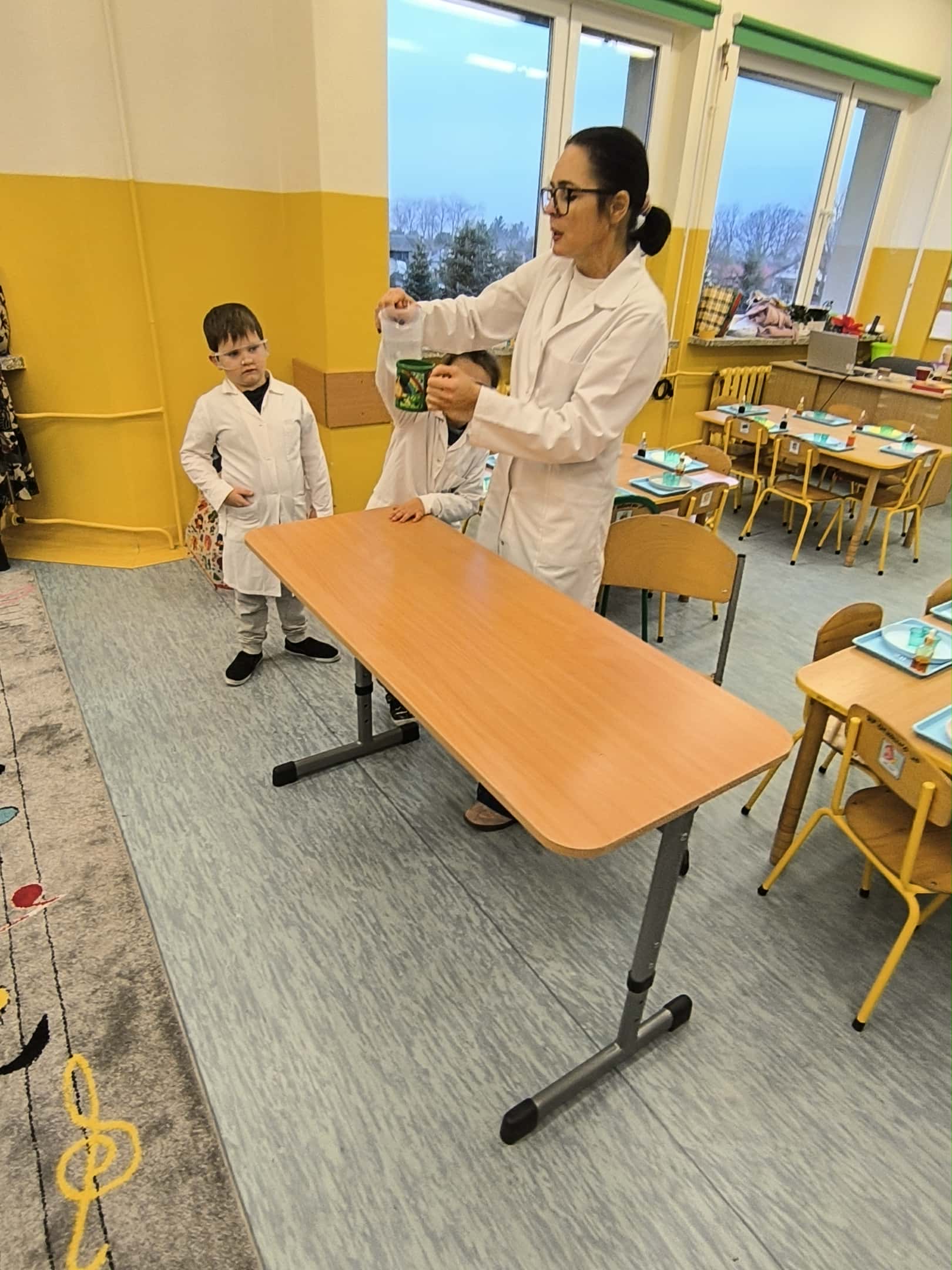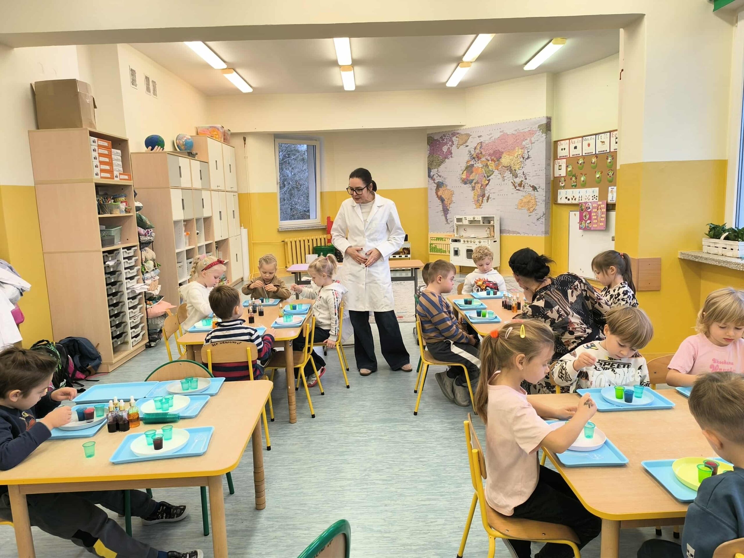 W środę, 20 listopada, w naszym przedszkolu oraz w klasach 0–3 odbyły się wyjątkowe warsztaty edukacyjne „Laboratorium Małego Chemika”, prowadzone przez firmę Logosfera. Spotkanie pełne barwnych doświadczeń i fascynujących eksperymentów przeniosło dzieci w świat nauki, pobudziło ich ciekawość oraz pokazało, że chemia może być niezwykle interesująca – i całkowicie bezpieczna.