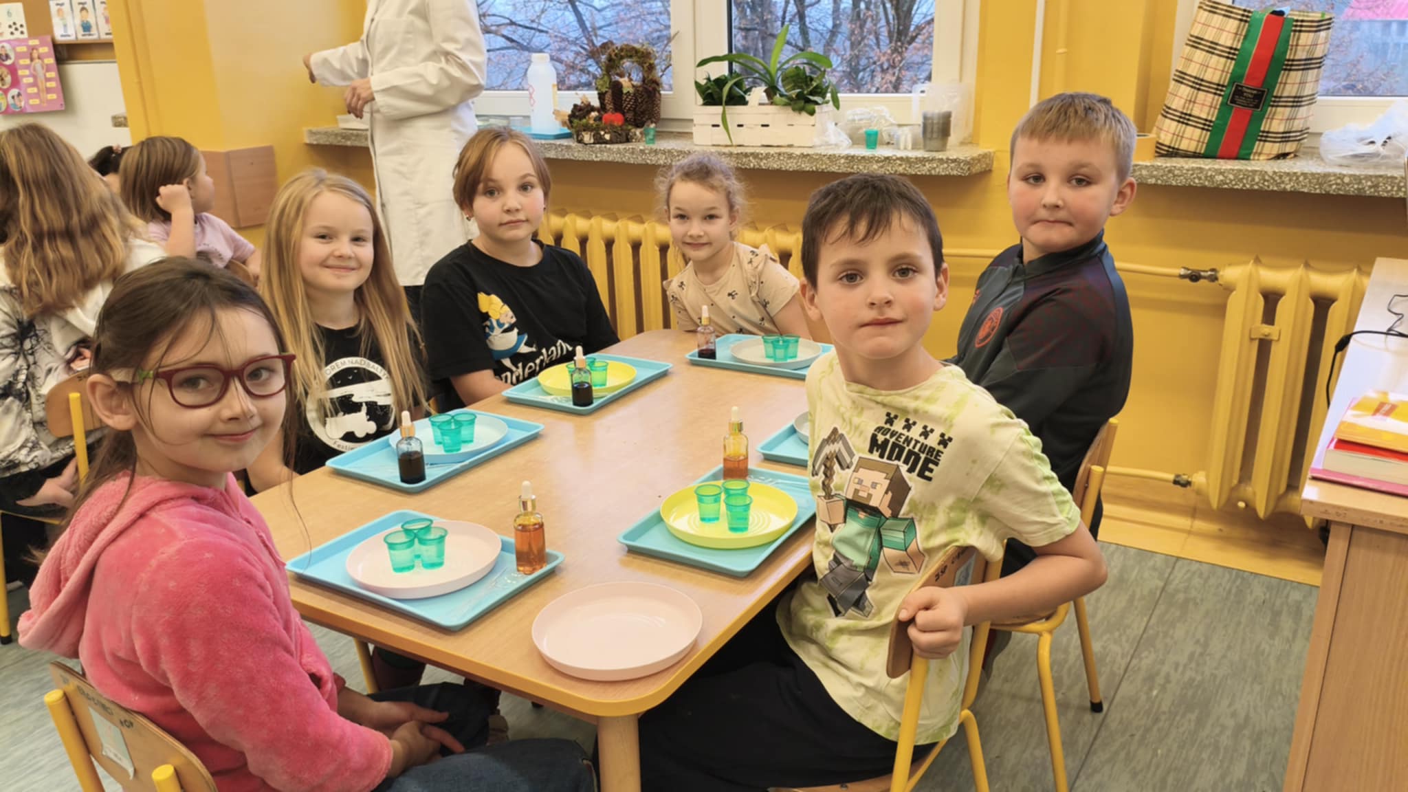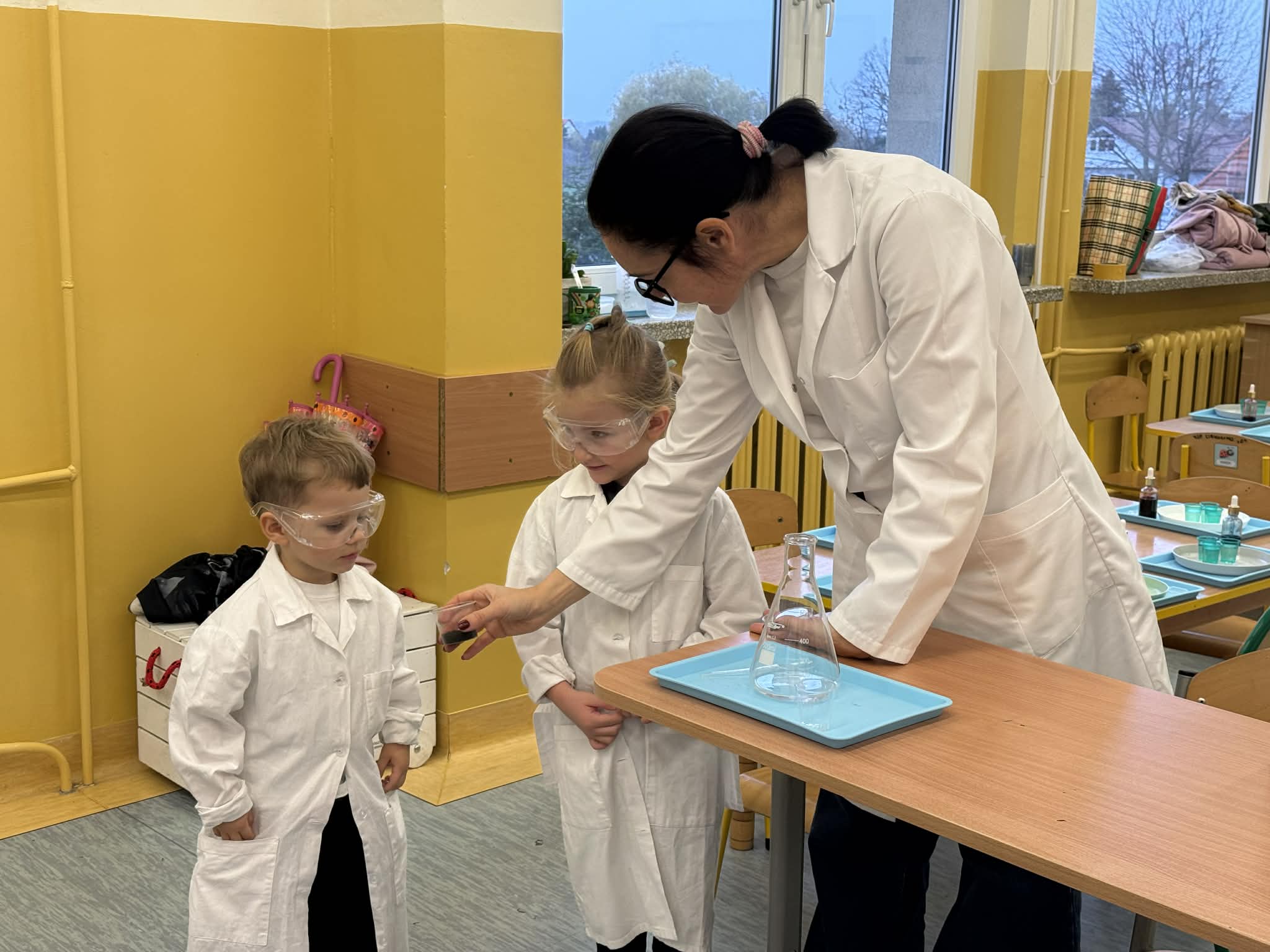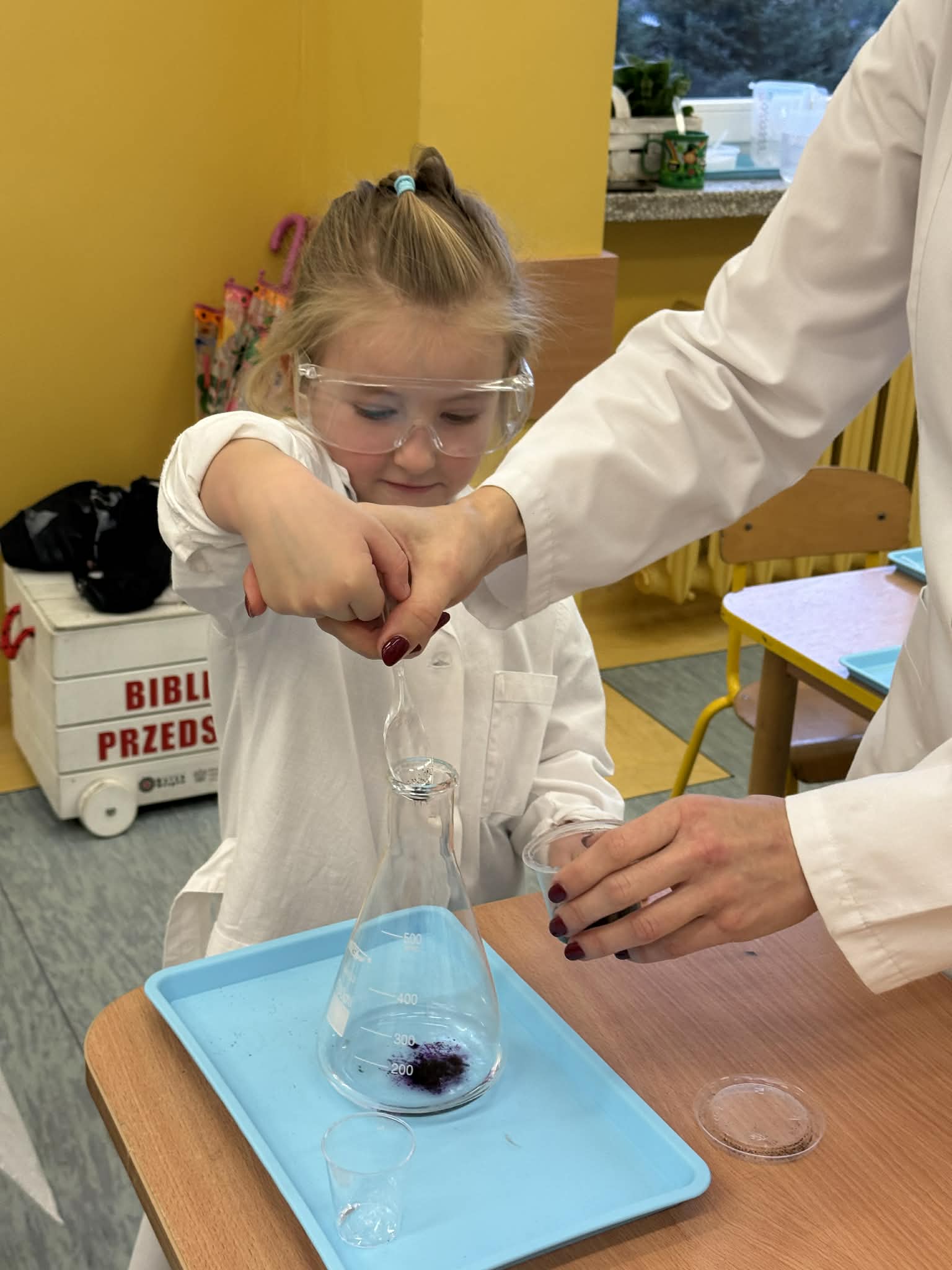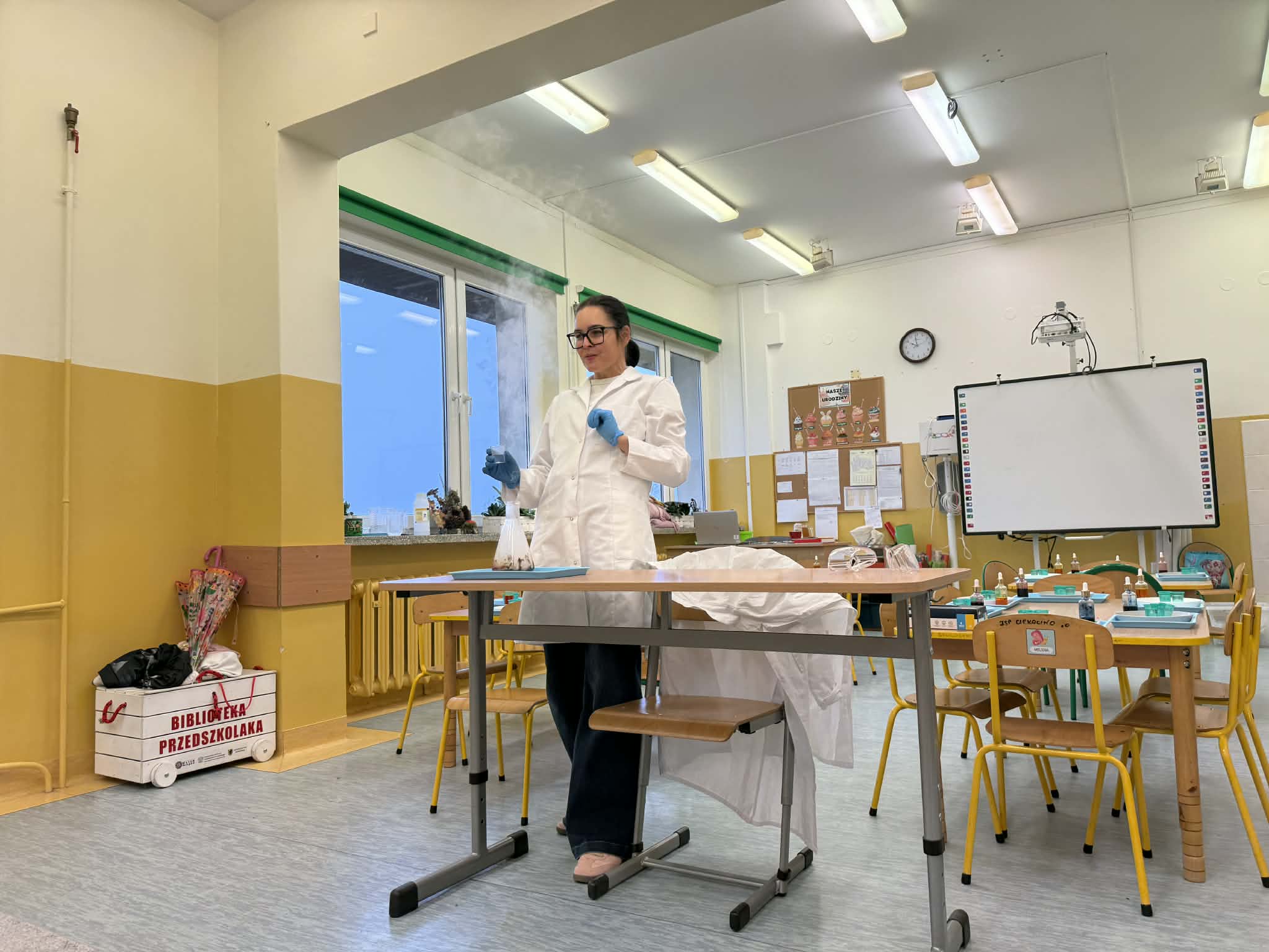 W środę, 20 listopada, w naszym przedszkolu oraz w klasach 0–3 odbyły się wyjątkowe warsztaty edukacyjne „Laboratorium Małego Chemika”, prowadzone przez firmę Logosfera. Spotkanie pełne barwnych doświadczeń i fascynujących eksperymentów przeniosło dzieci w świat nauki, pobudziło ich ciekawość oraz pokazało, że chemia może być niezwykle interesująca – i całkowicie bezpieczna.