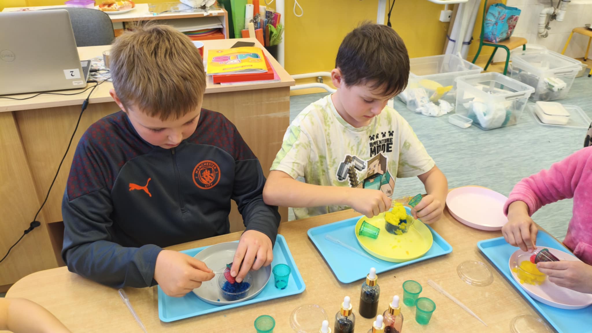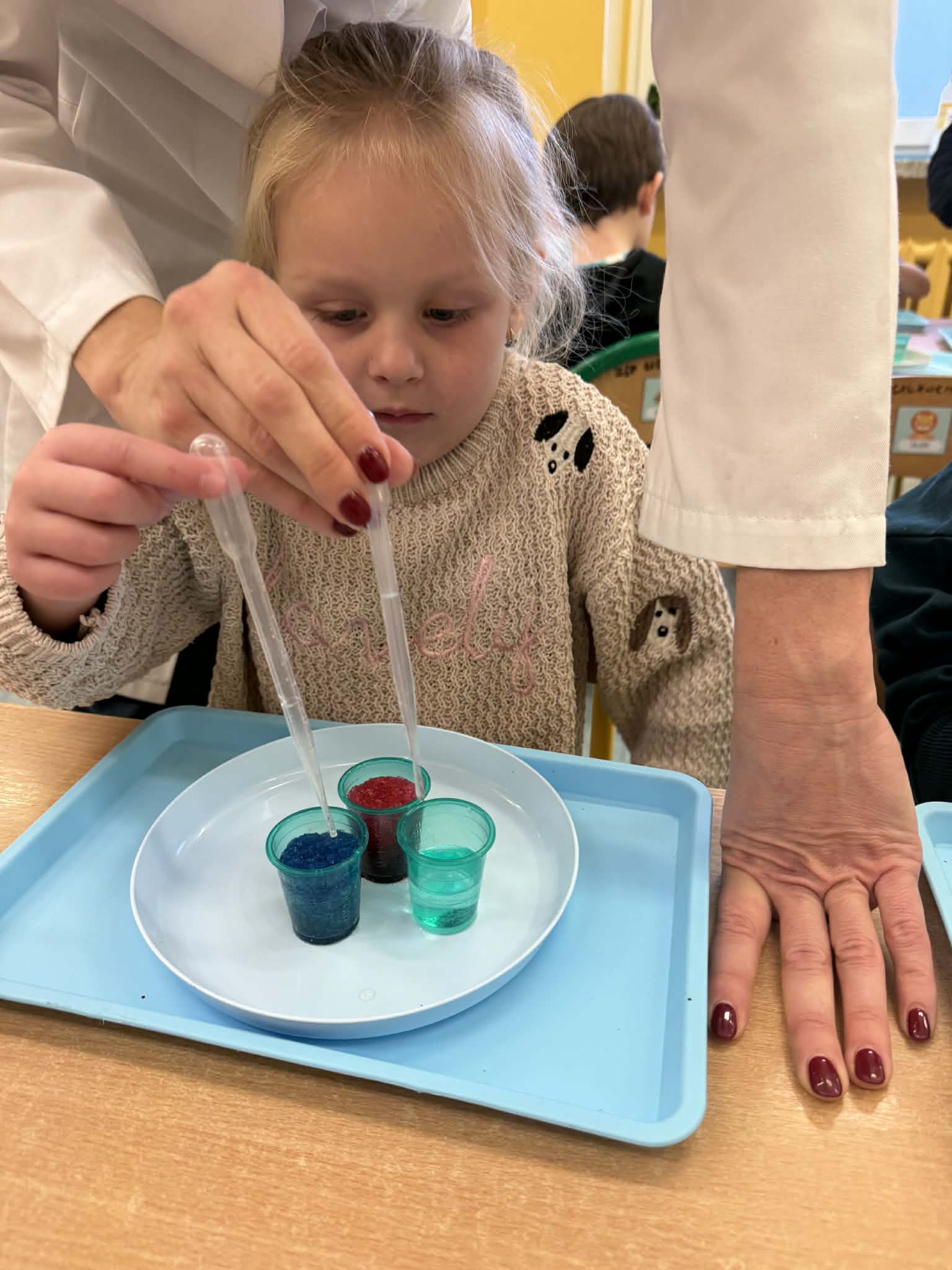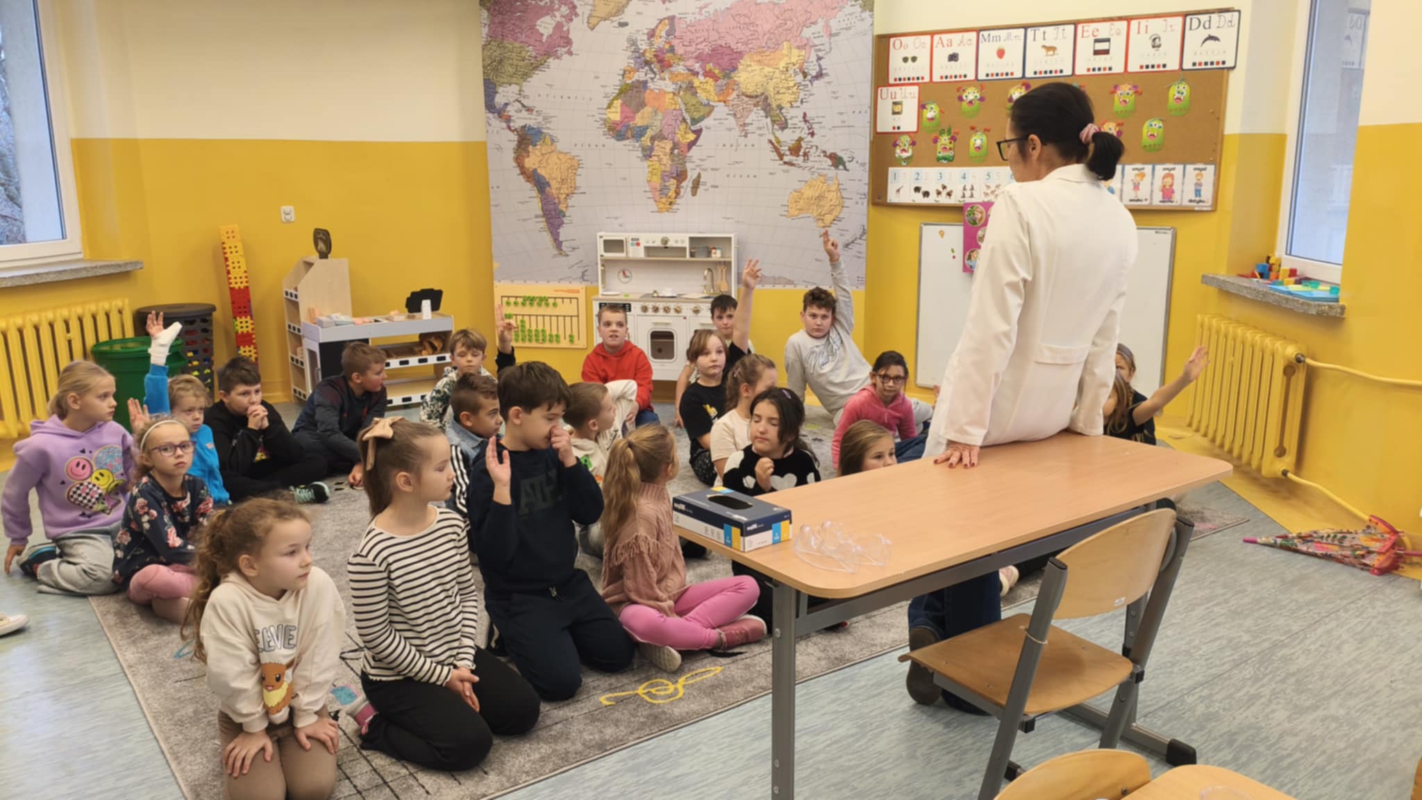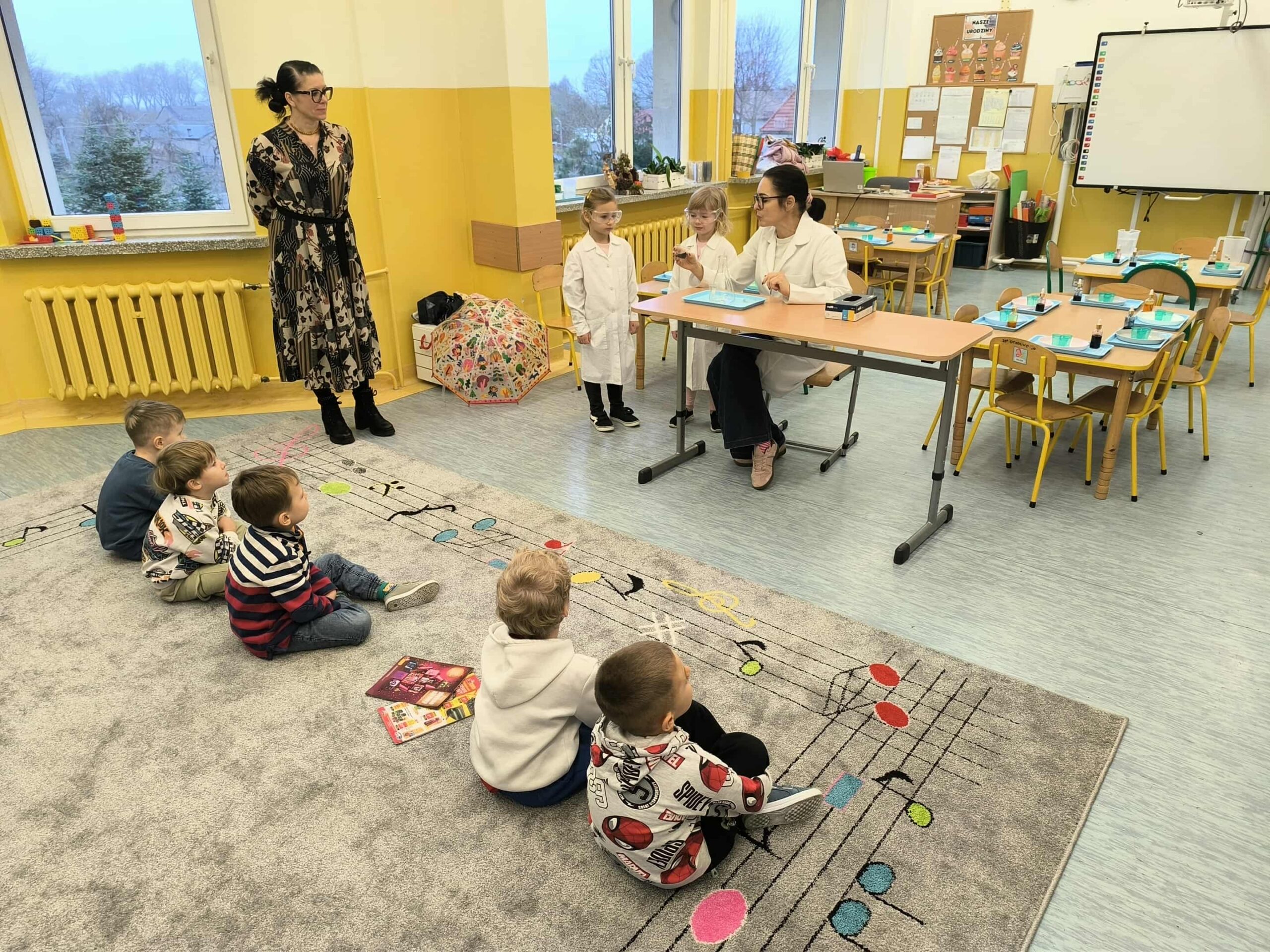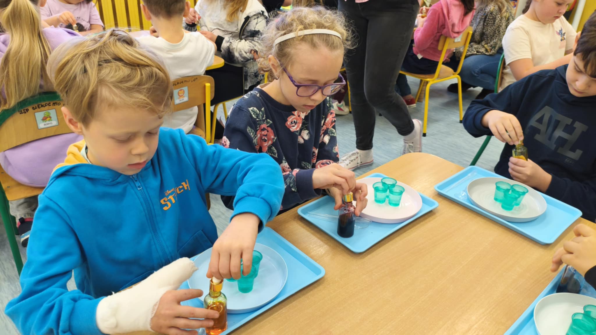 W środę, 20 listopada, w naszym przedszkolu oraz w klasach 0–3 odbyły się wyjątkowe warsztaty edukacyjne „Laboratorium Małego Chemika”, prowadzone przez firmę Logosfera. Spotkanie pełne barwnych doświadczeń i fascynujących eksperymentów przeniosło dzieci w świat nauki, pobudziło ich ciekawość oraz pokazało, że chemia może być niezwykle interesująca – i całkowicie bezpieczna.