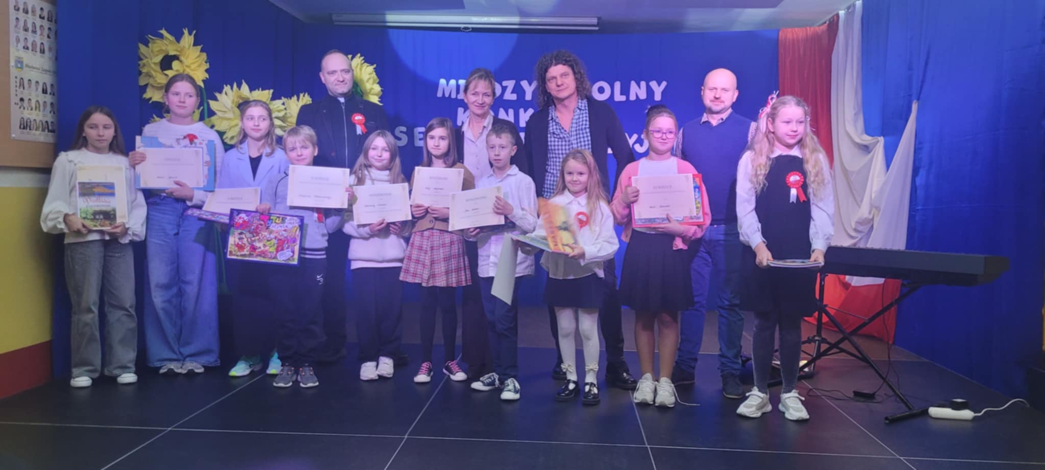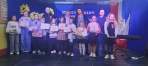 Talenty zostały docenione przez jury, która nagrodziła wszystkich uczestników, a czwórka naszych najbardziej uzdolnionych uczniów znalazła się na podium zwycięzców: Amelia Jędruch, która zdobyła pierwsze miejsce w kategorii klas 4-8, Melisa Łozicka również pierwsze miejsce, Hubert Stefański drugie a Magdalena Gil trzecie w kategorii klas 1-3. Wyróżnienie otrzymała uczennica: Barbara Niemiec. Zwycięzcom i uczestnikom gratulujemy uzdolnień muzycznych i życzymy, aby krzewienie wartości patriotycznych poprzez śpiew, przyczyniło się do jeszcze mocniejszego umiłowania naszej Ojczyzny.