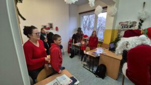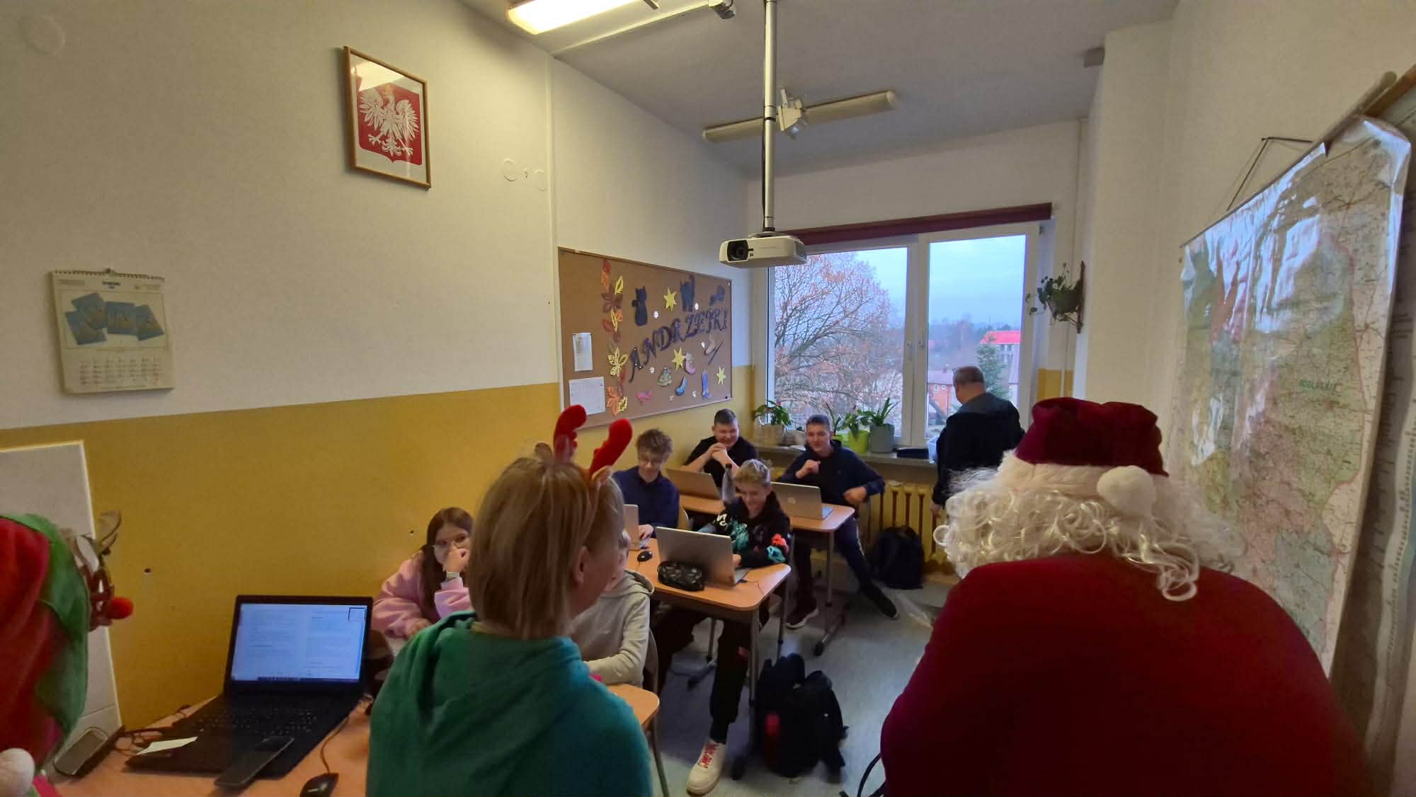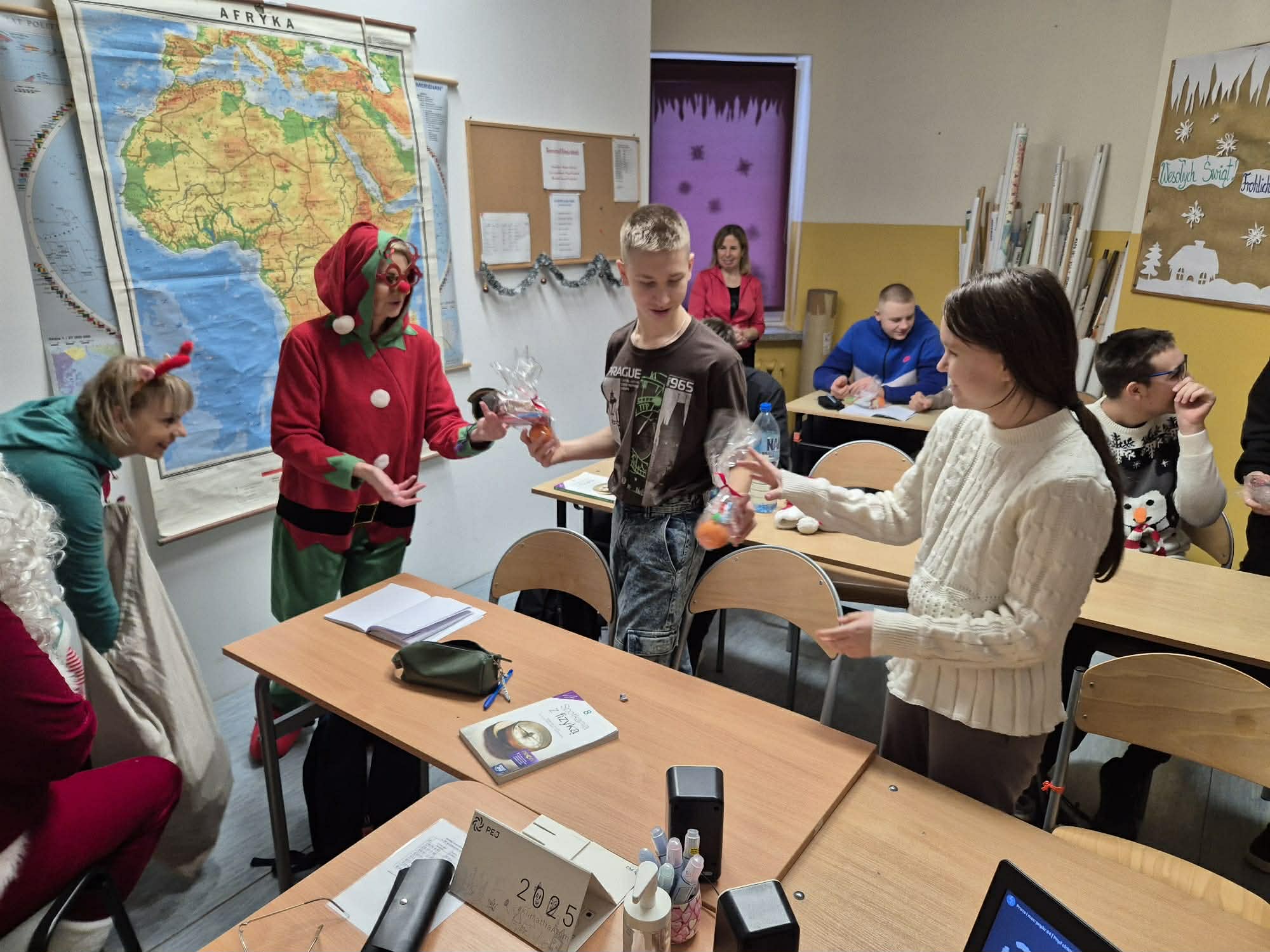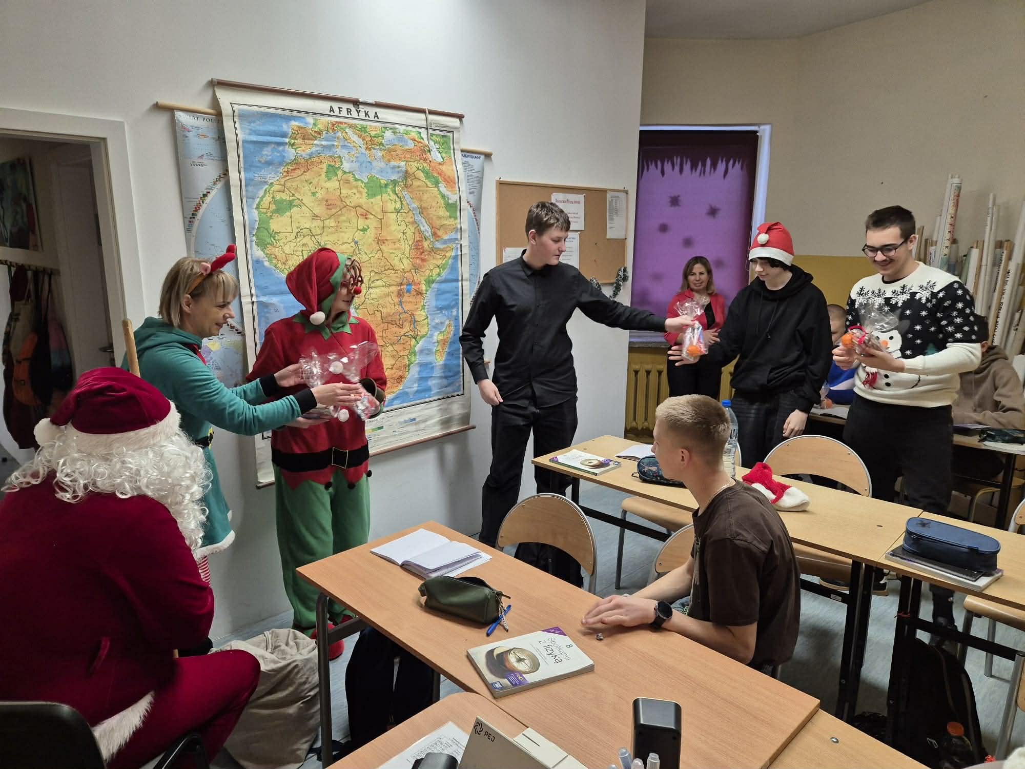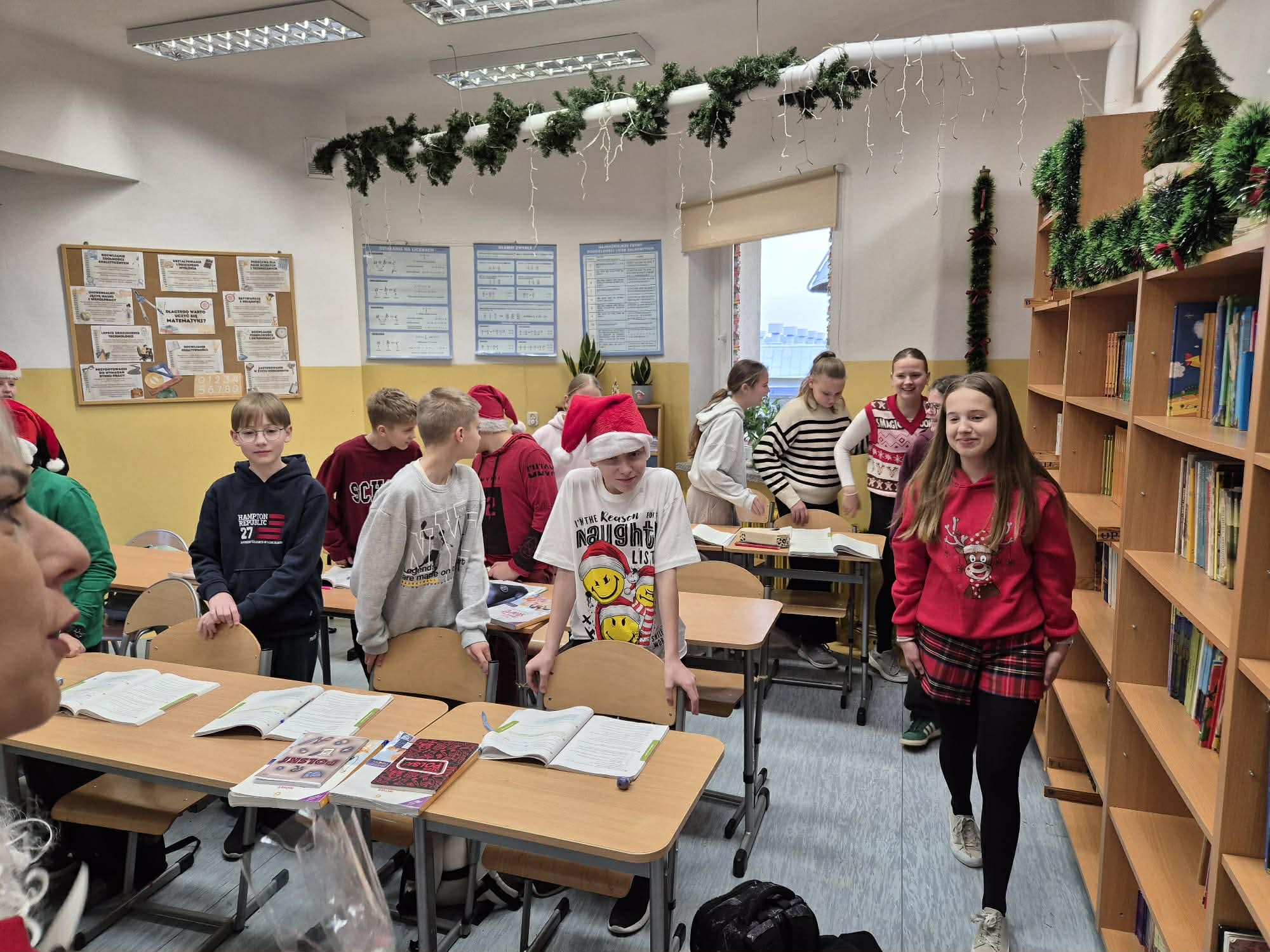 Były wspólne śpiewy, pamiątkowe zdjęcia i mnóstwo dobrego humoru, który udzielił się zarówno najmłodszym, jak i starszym uczniom. To był dzień pełen uśmiechu i magii zbliżających się świąt.