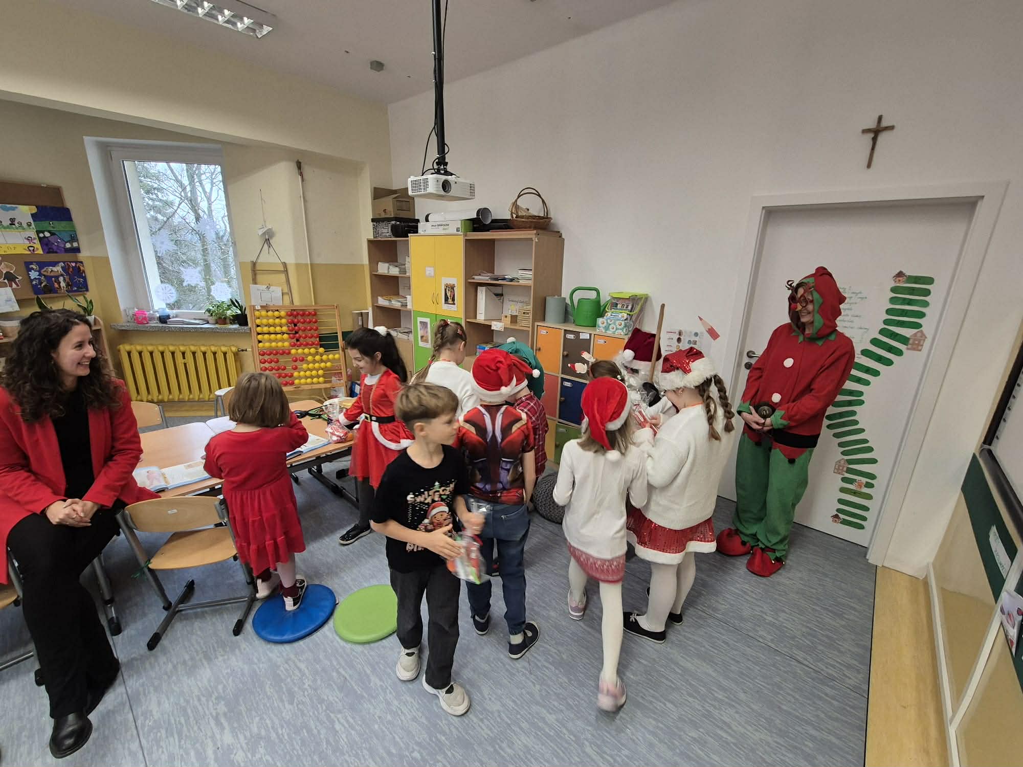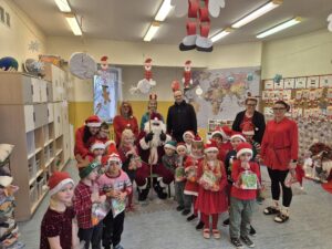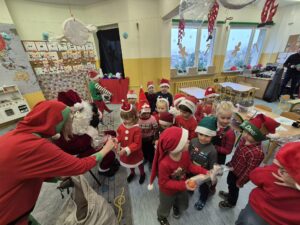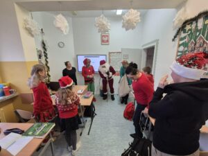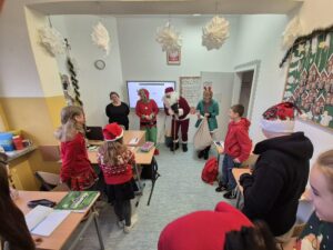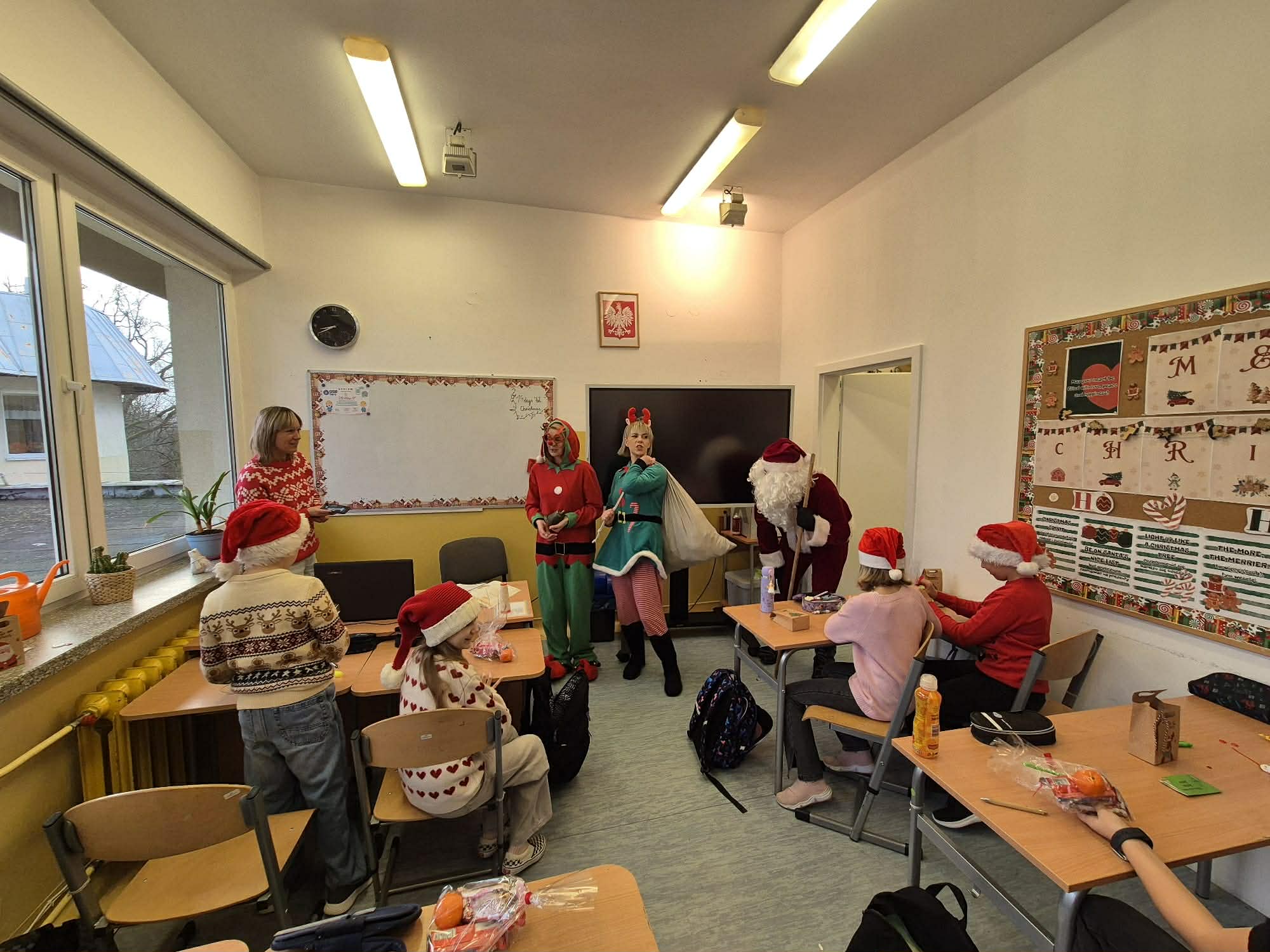 5 grudnia w naszej szkole panowała wyjątkowo radosna atmosfera, ponieważ odwiedził nas sam Święty Mikołaj wraz ze swoją wesołą ekipą pomocników! Każdy uczeń otrzymał drobny upominek, a na szkolnych korytarzach rozbrzmiewały świąteczne piosenki i dziecięcy śmiech.