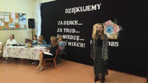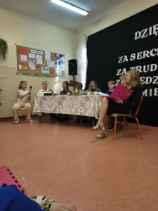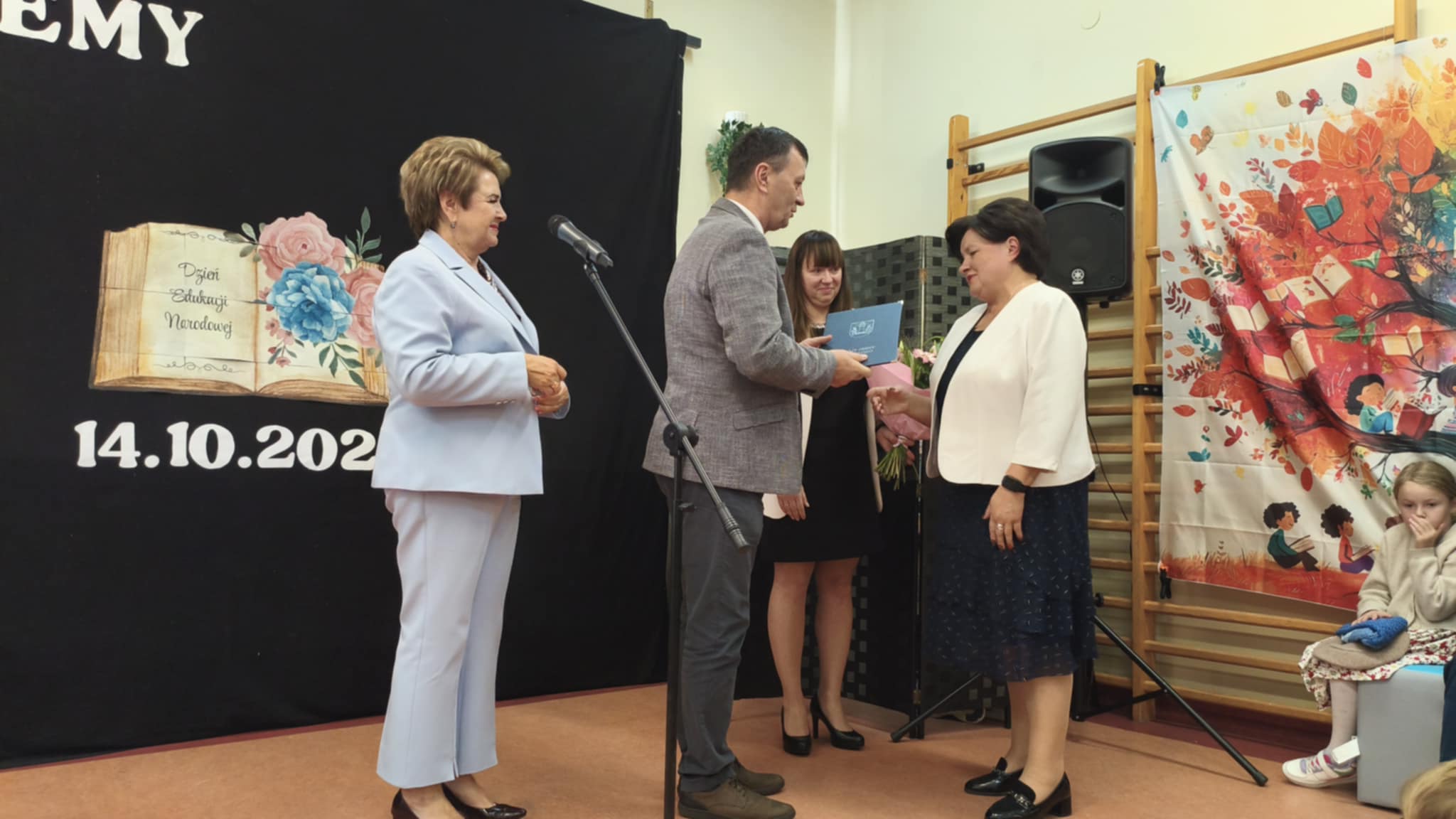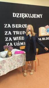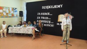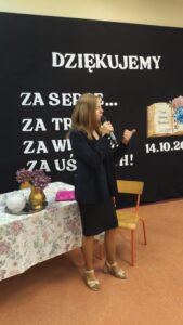 Na zakończenie spotkania nastąpiły wystąpienia dyrektora szkoły Pani Róży Majchrzak oraz zaproszonych gości, którzy złożyli serdeczne życzenia wszystkim pracownikom oświaty.