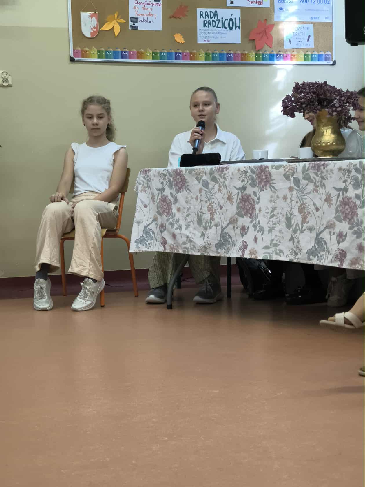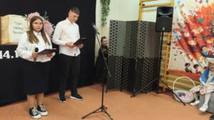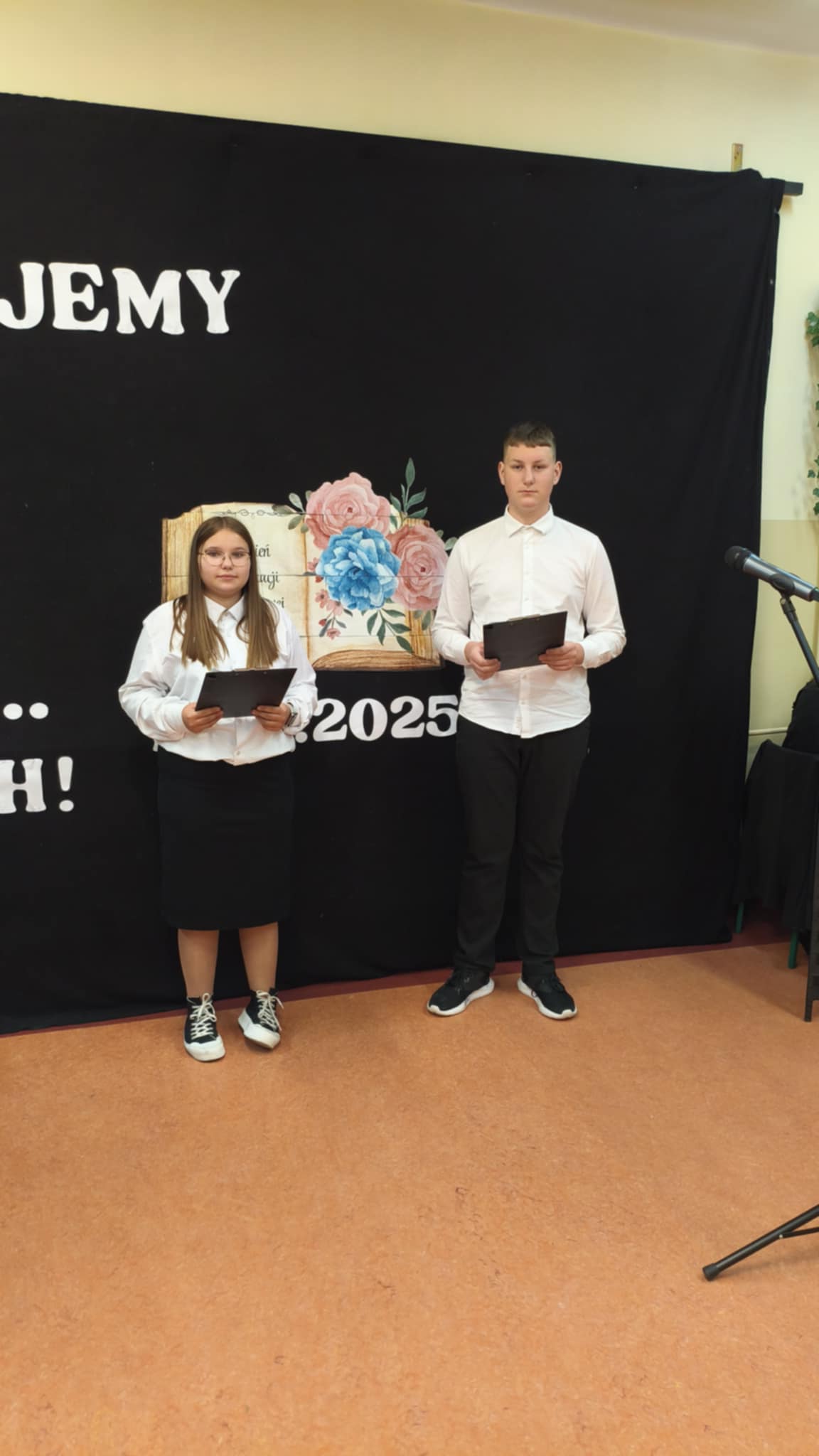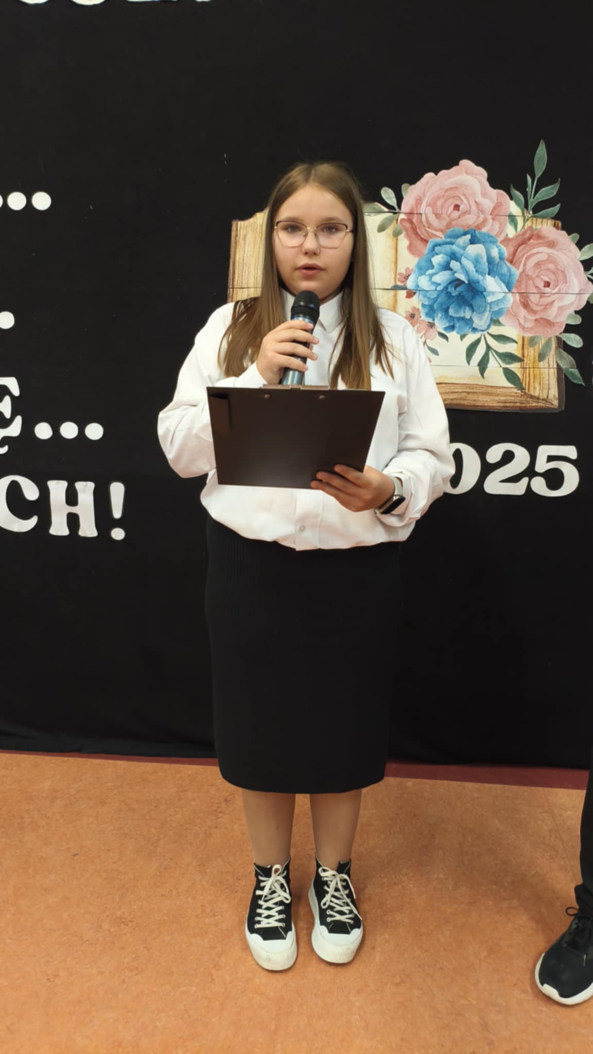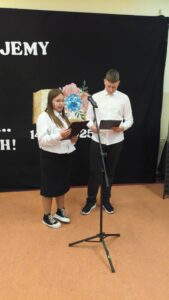 Część oficjalną uroczystości poprowadzili przewodniczący Samorządu Uczniowskiego Paweł Smolarek wraz z koleżanką Zosią Obrzud. Po krótkim wprowadzeniu, Samorząd Uczniowski wręczył nauczycielom i pracownikom szkoły drobne upominki – symboliczny gest wdzięczności za ich pracę, cierpliwość i poświęcenie.