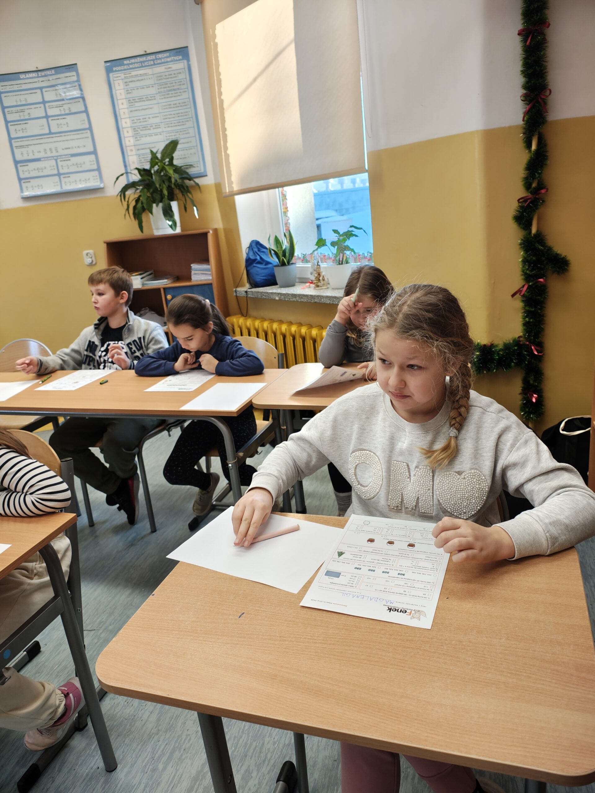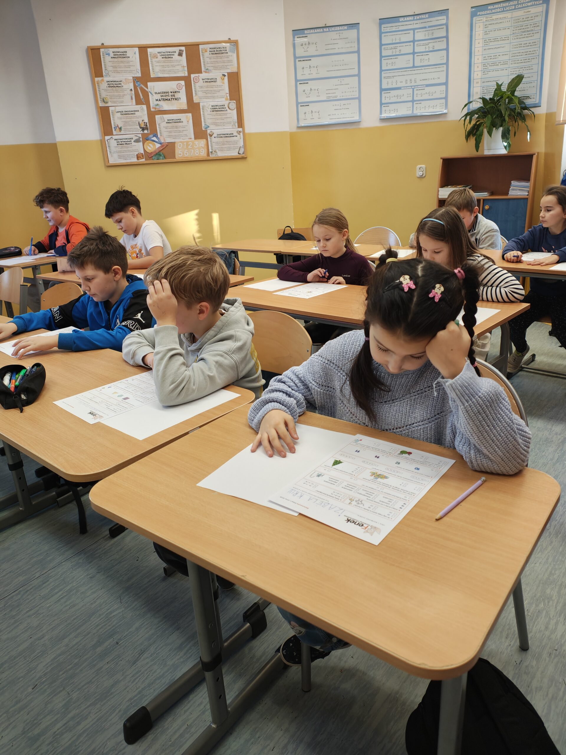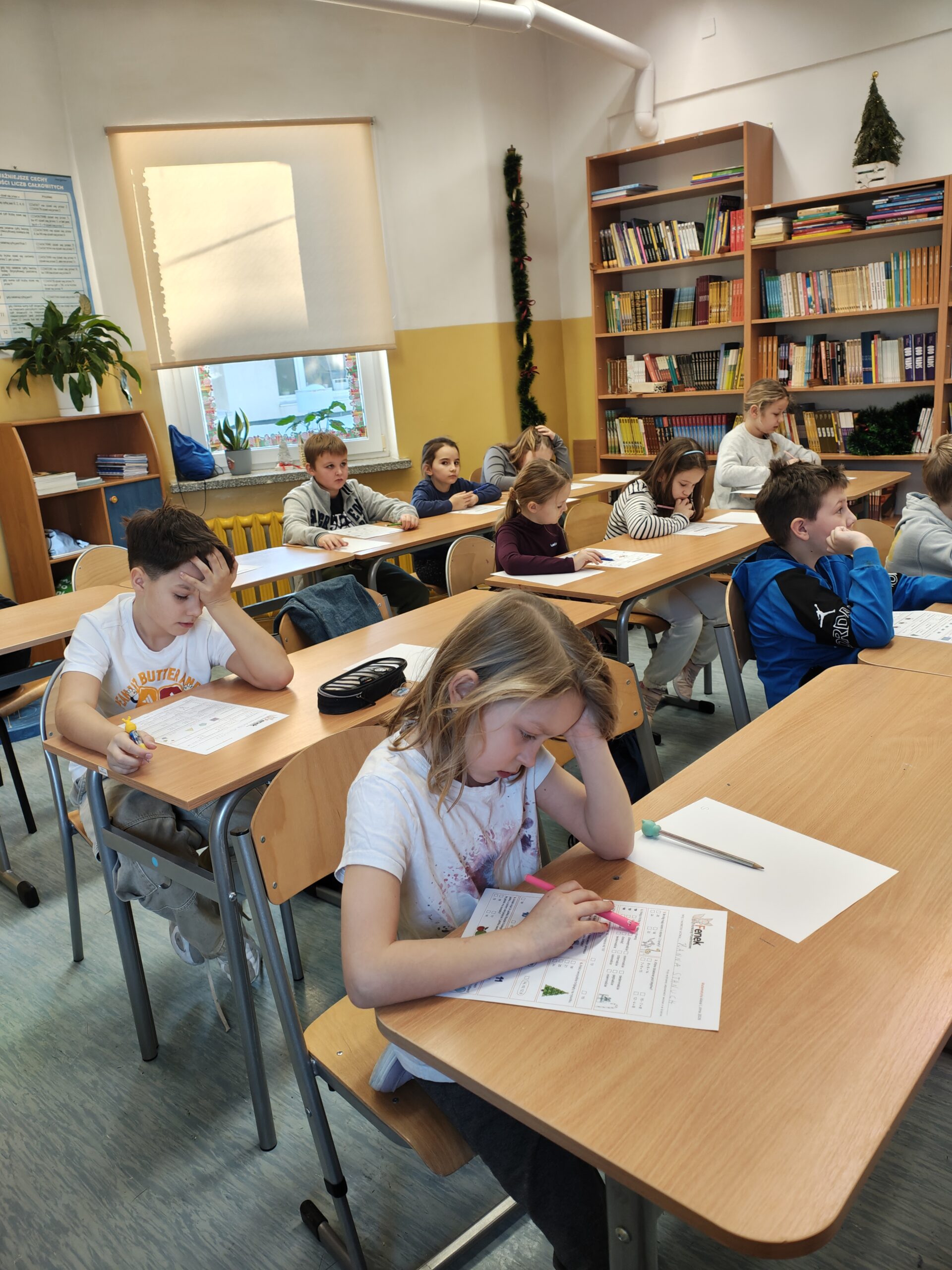W piątek 9 stycznia chętni uczniowie z klas I- IV naszej szkoły wzięli udział w ogólnopolskim konkursie przedmiotowym z matematyki „FENEK”. Konkurs był doskonałą okazją do sprawdzenia swoich umiejętności matematycznych, logicznego myślenia oraz zastosowania wiedzy w praktyce. Uczniowie z dużym zaangażowaniem i skupieniem rozwiązywali przygotowane zadania, wykazując się wytrwałością oraz samodzielnością. Po zakończeniu konkursu wszystkie testy zostały wysłane do organizatorów, gdzie zostaną ocenione zgodnie z ogólnopolskimi kryteriami.