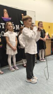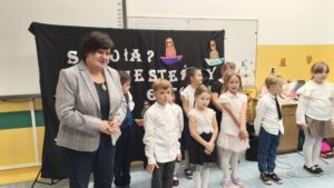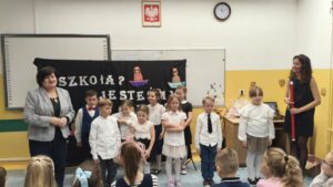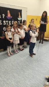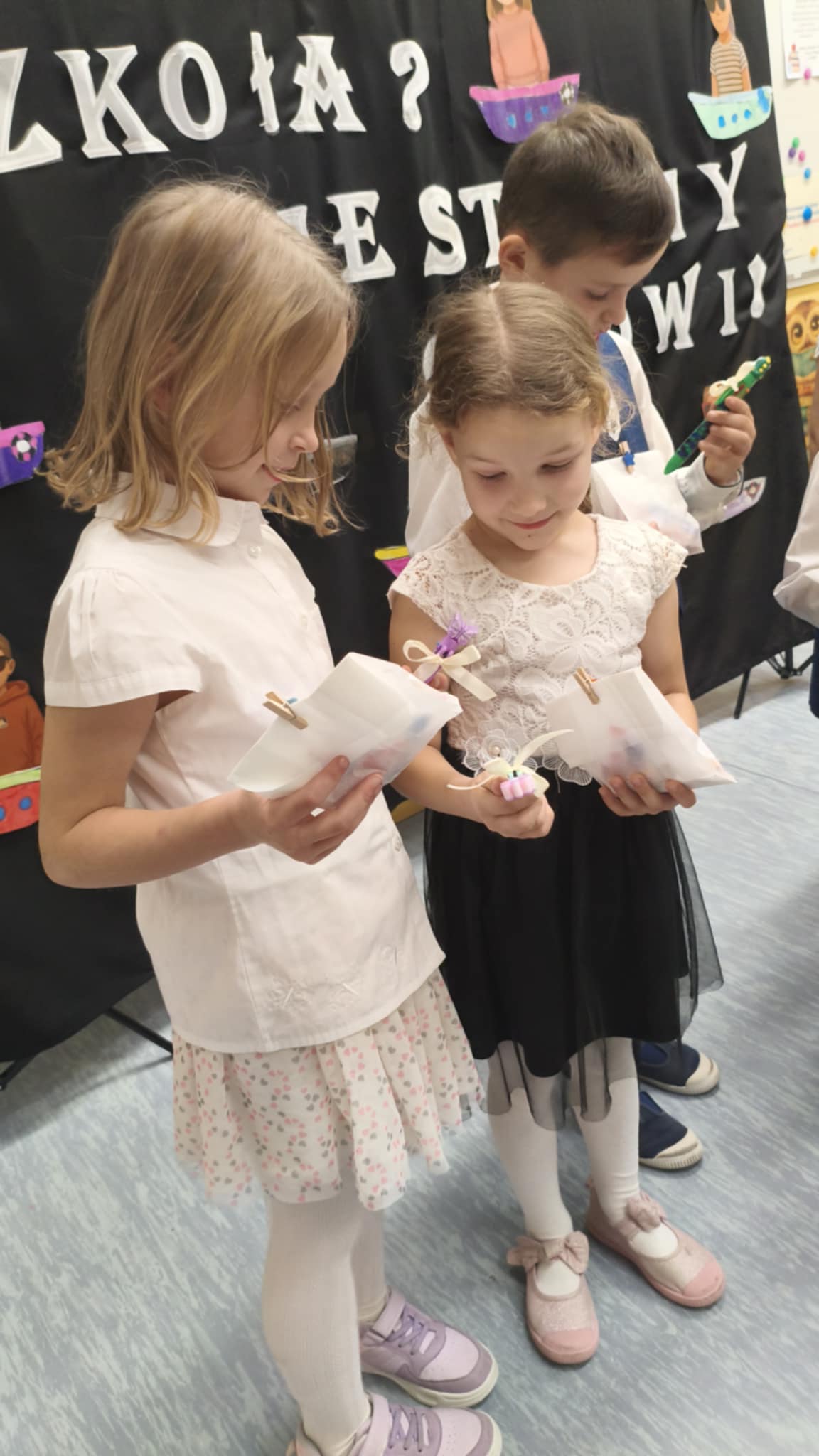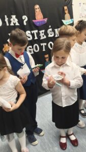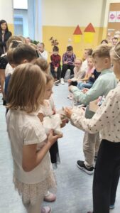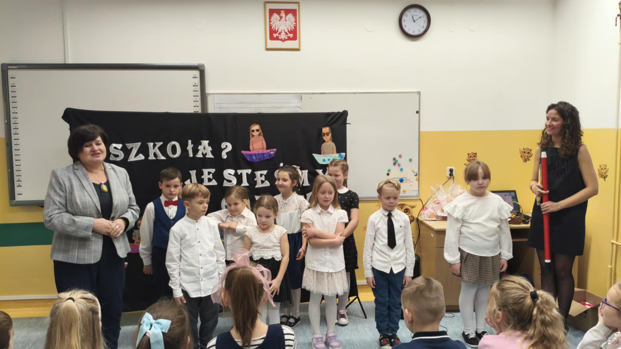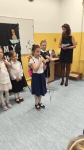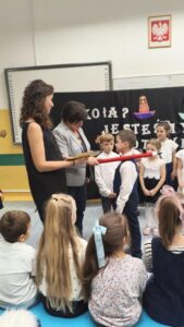 Pierwszoklasiści zaprezentowali piękny program artystyczny – recytowali wiersze i śpiewali piosenki. Po części artystycznej Pani Dyrektor dokonała uroczystego aktu pasowania. Na zakończenie dzieci otrzymały pamiątkowe dyplomy oraz drobne upominki przygotowane przez rodziców. To był dzień pełen emocji, wzruszeń i radości, który na długo pozostanie w pamięci naszych najmłodszych uczniów. Serdecznie gratulujemy pierwszoklasistom i życzymy wielu sukcesów w szkolnej przygodzie!