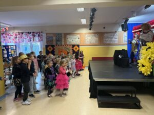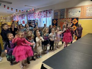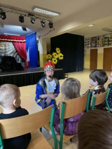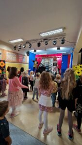 Najmłodsi – dzieci z przedszkola oraz klas 0–2 – obejrzeli pełne humoru i ciekawych zwrotów akcji widowisko „Tajemnice zaginionych książek”. Spektakl nie tylko rozwijał wyobraźnię, ale również promował wartości związane z czytelnictwem, przyjaźnią i odpowiedzialnością. Dzieci uczestniczyły w historii z ogromnym zaangażowaniem, aktywnie reagując na wydarzenia sceniczne.