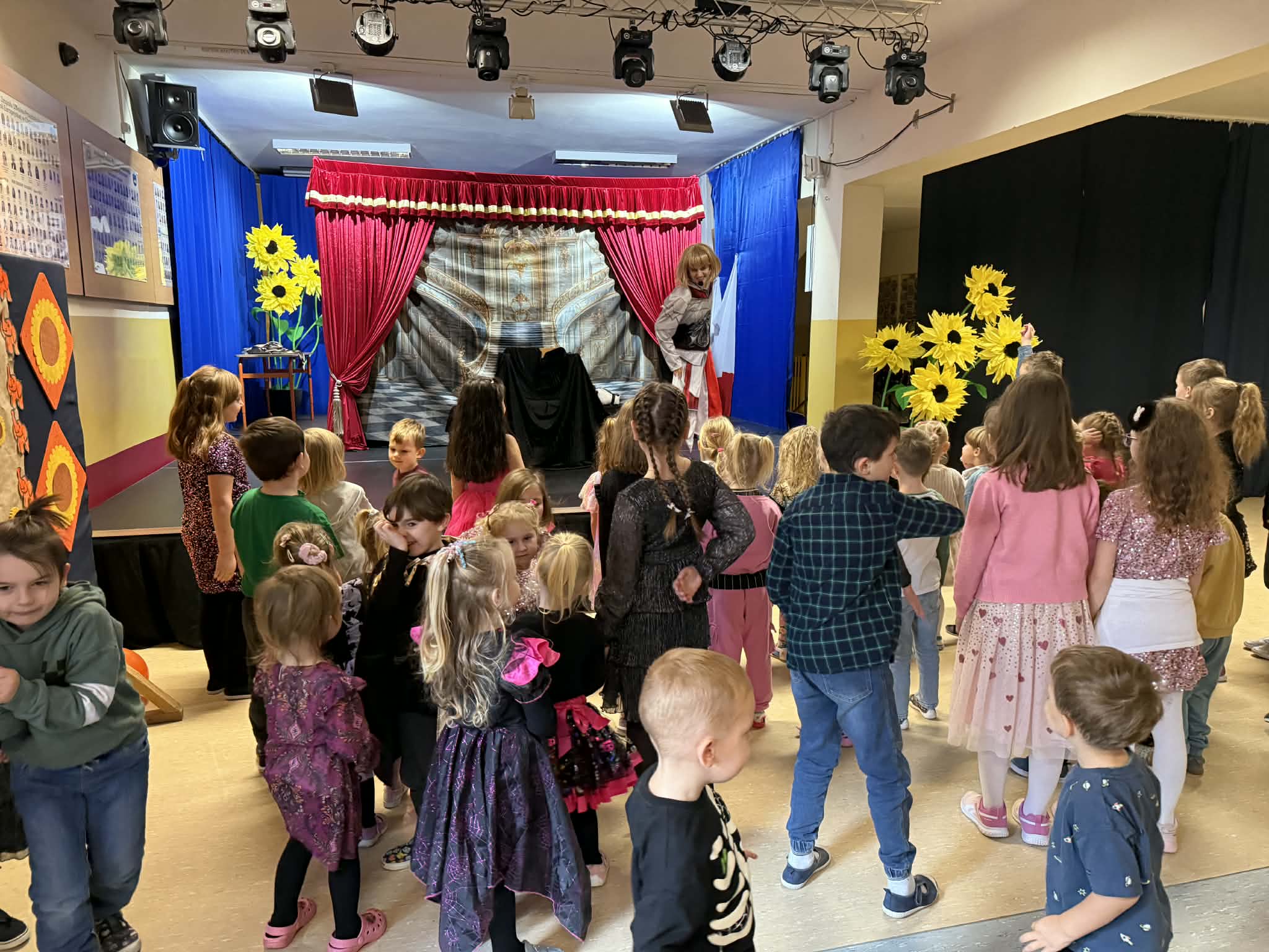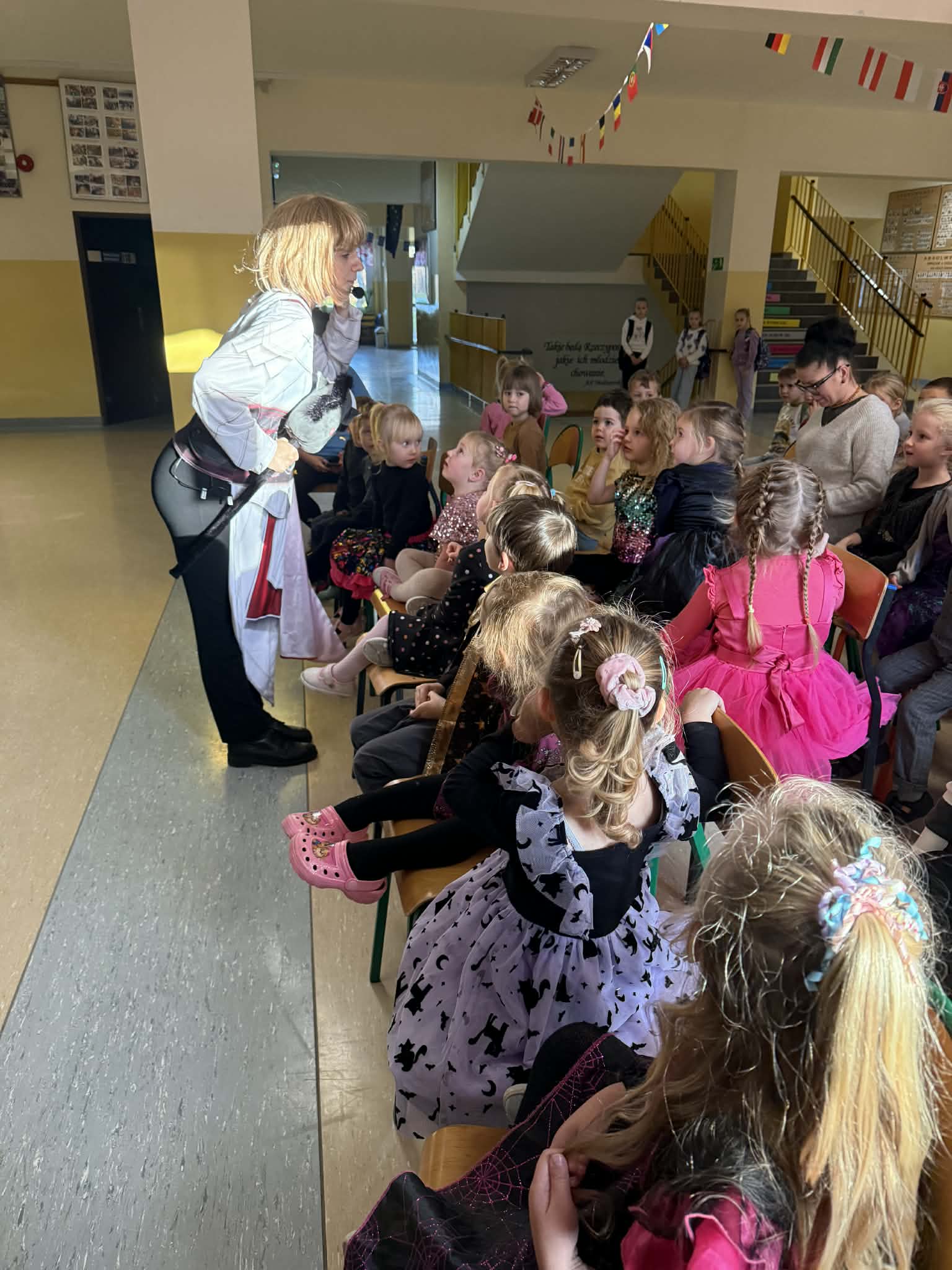 Najmłodsi – dzieci z przedszkola oraz klas 0–2 – obejrzeli pełne humoru i ciekawych zwrotów akcji widowisko „Tajemnice zaginionych książek”. Spektakl nie tylko rozwijał wyobraźnię, ale również promował wartości związane z czytelnictwem, przyjaźnią i odpowiedzialnością. Dzieci uczestniczyły w historii z ogromnym zaangażowaniem, aktywnie reagując na wydarzenia sceniczne.