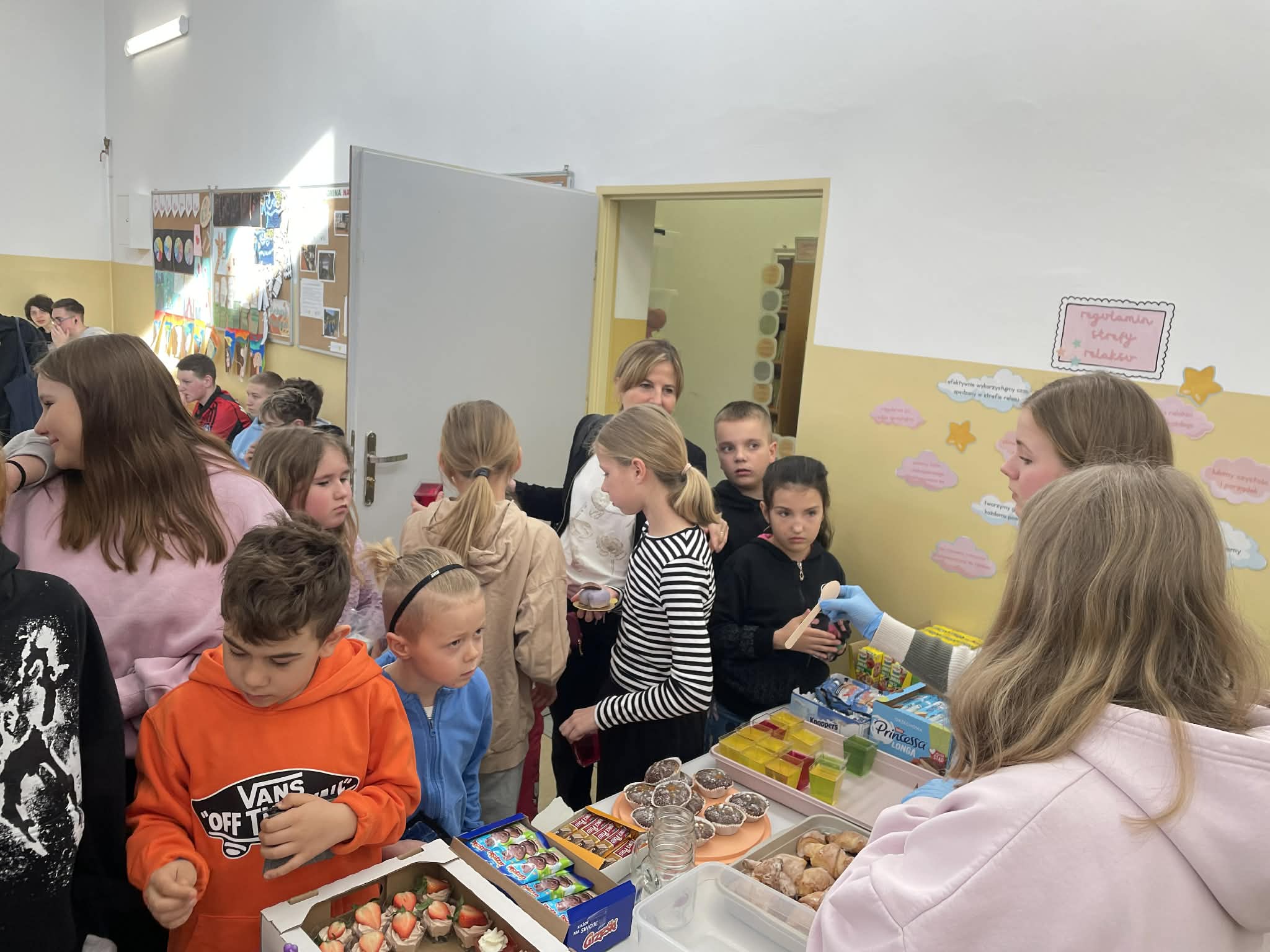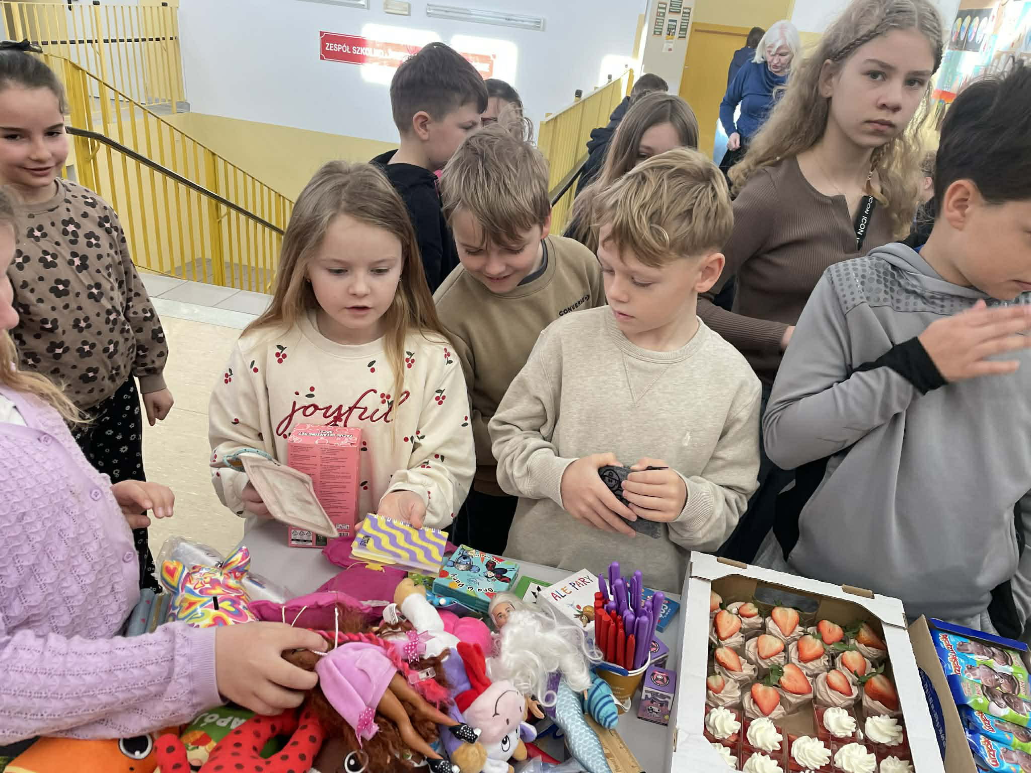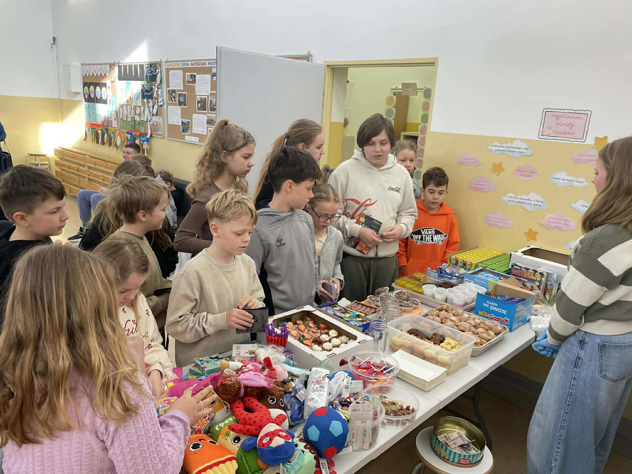 Na przygotowanym stoisku można było znaleźć pyszne domowe wypieki, słodkości oraz różnorodne gadżety. Wszystko zostało przygotowane z wielkim zaangażowaniem i sercem przez naszych wolontariuszy, przy wsparciu rodziców oraz pracowników szkoły.