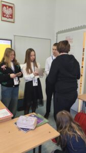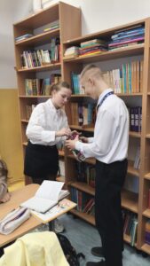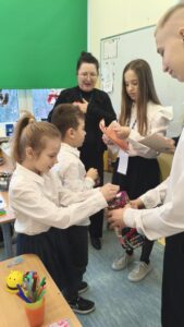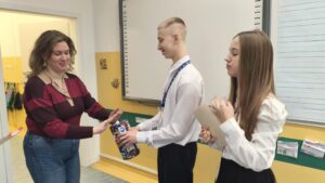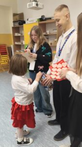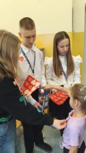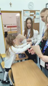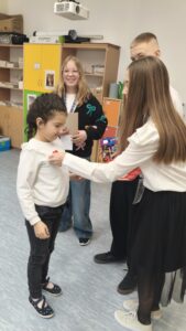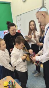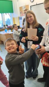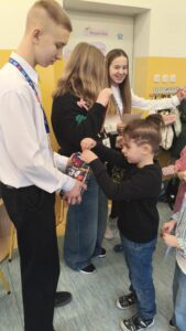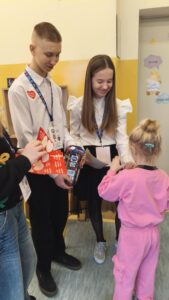 Dzisiaj wolontariusze naszej szkoły – Kaja, Amelia oraz Hubert – aktywnie włączyli się w ogólnopolską akcję charytatywną Wielkiej Orkiestry Świątecznej Pomocy. Z dużym zaangażowaniem i uśmiechem na twarzy prowadzili zbiórkę pieniędzy na terenie szkoły. Nasi wolontariusze wykazali się odpowiedzialnością, empatią oraz kulturą osobistą, godnie reprezentując naszą szkołę.