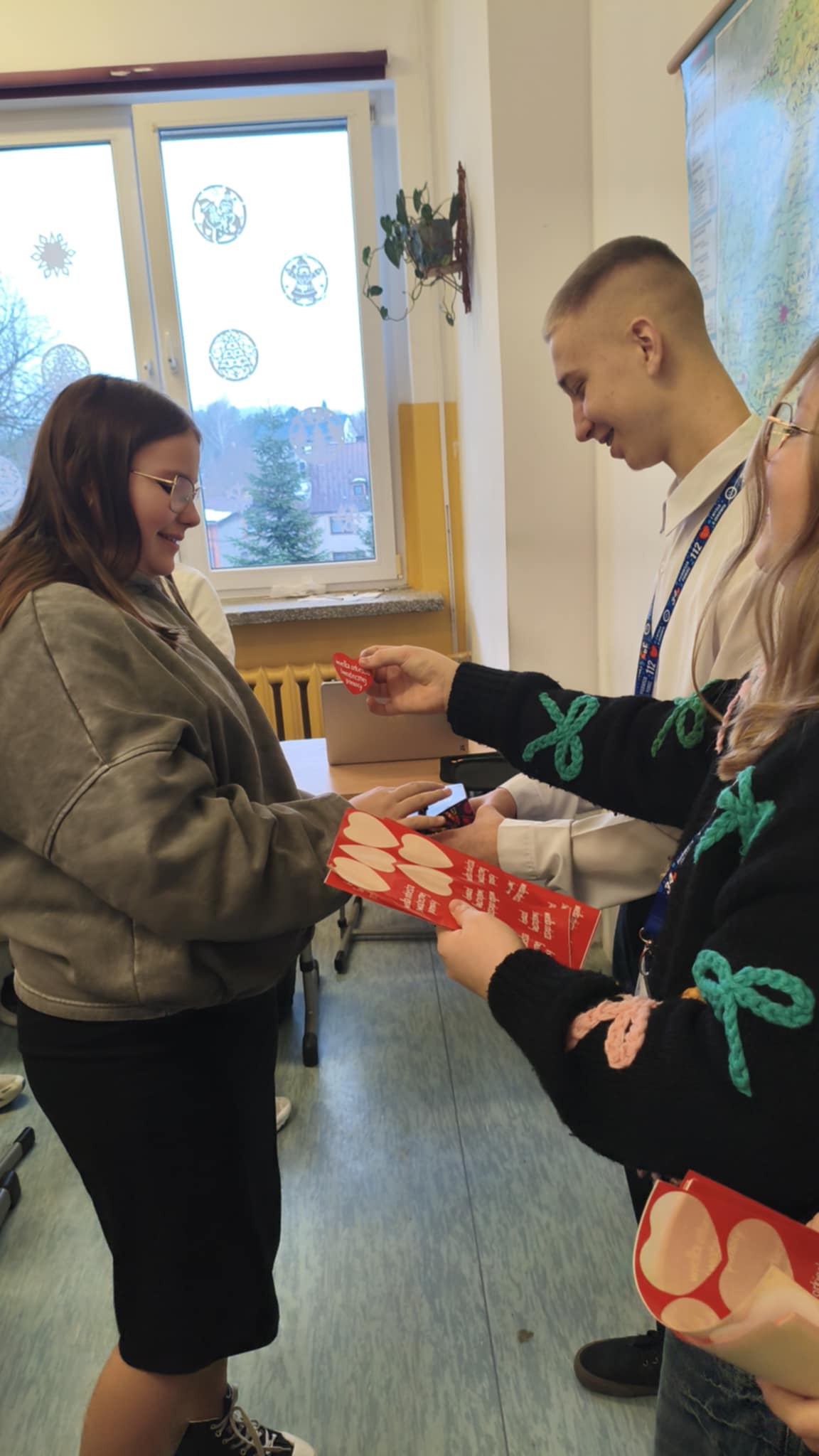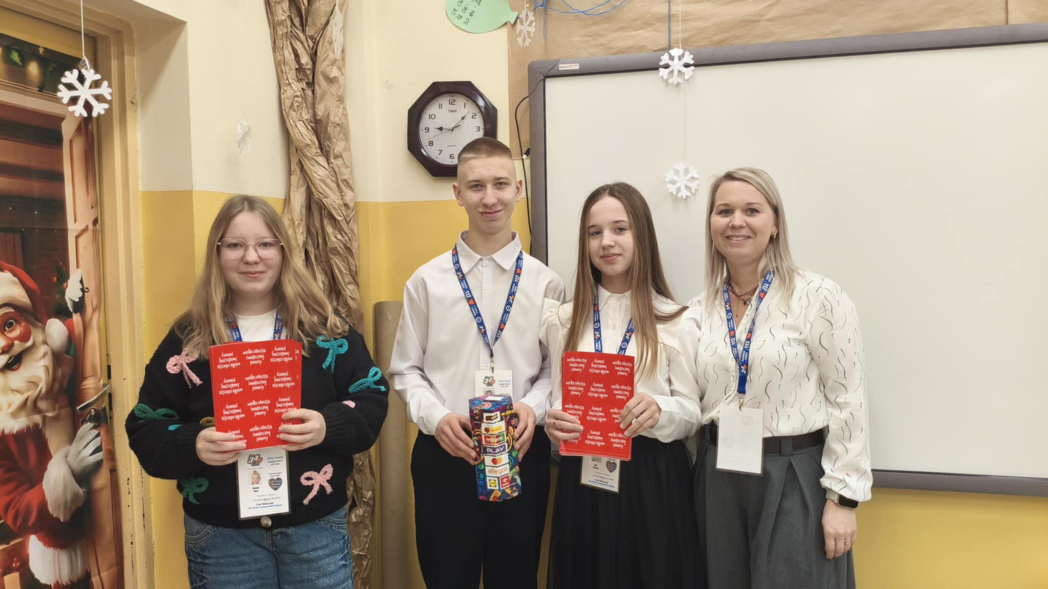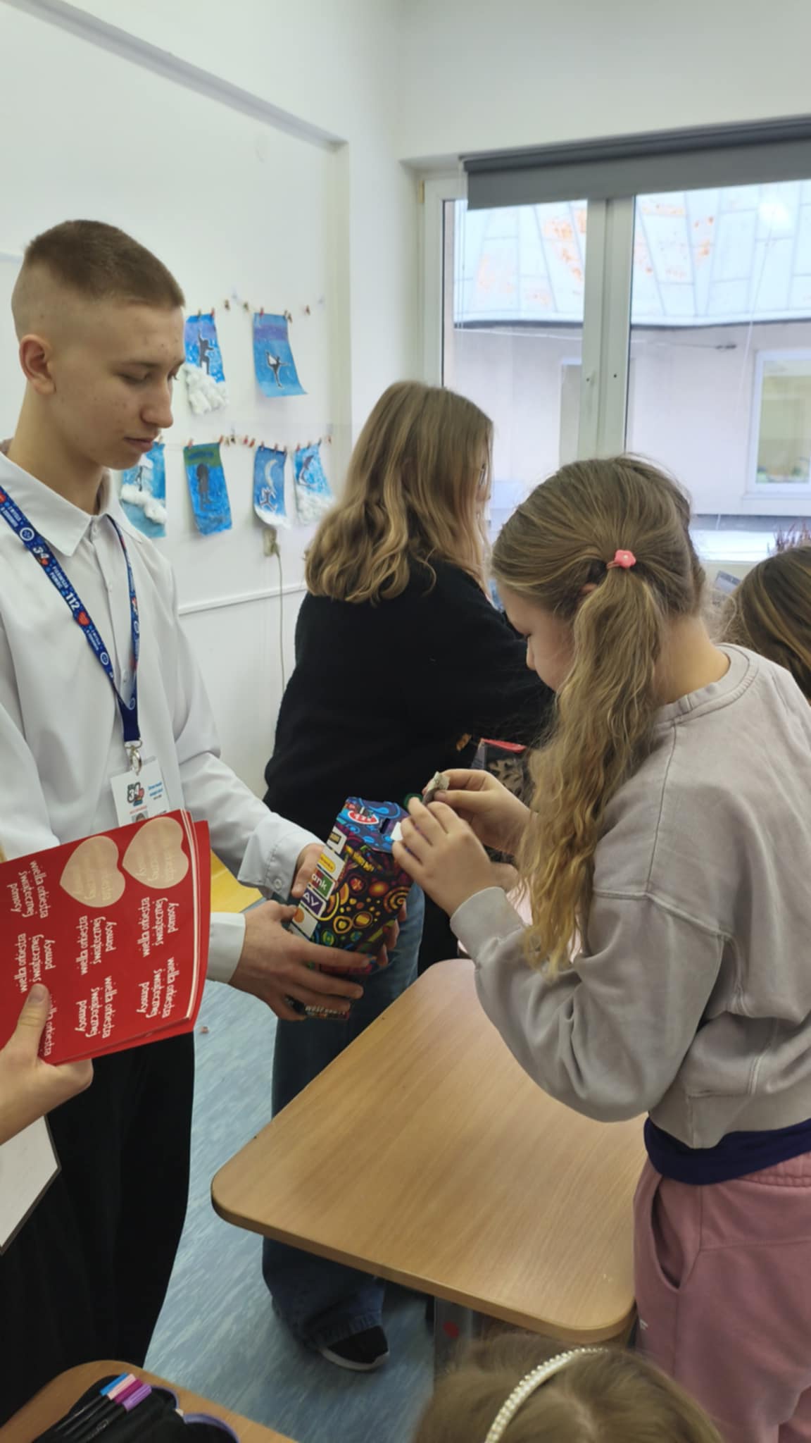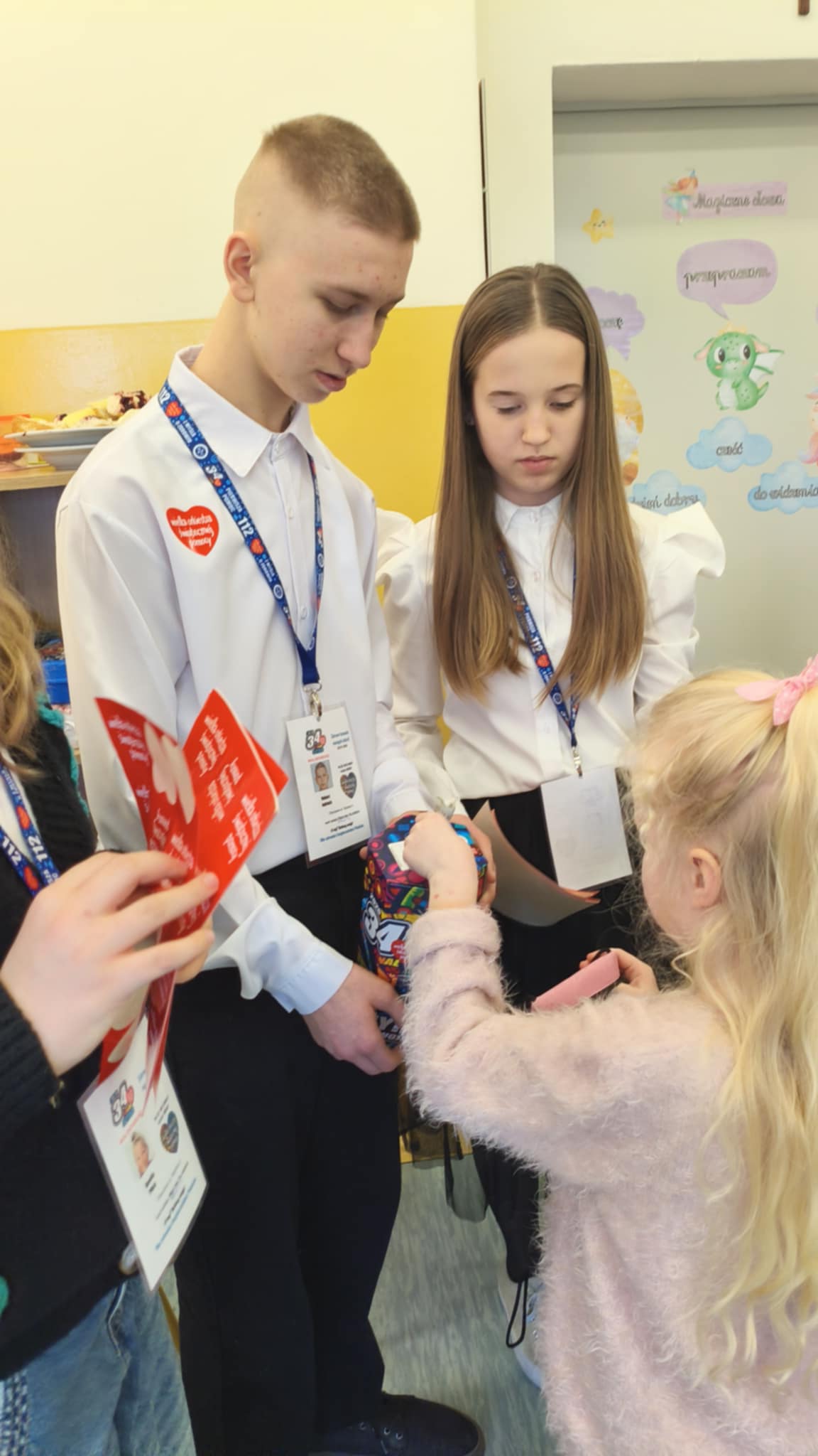 Dzisiaj wolontariusze naszej szkoły – Kaja, Amelia oraz Hubert – aktywnie włączyli się w ogólnopolską akcję charytatywną Wielkiej Orkiestry Świątecznej Pomocy. Z dużym zaangażowaniem i uśmiechem na twarzy prowadzili zbiórkę pieniędzy na terenie szkoły. Nasi wolontariusze wykazali się odpowiedzialnością, empatią oraz kulturą osobistą, godnie reprezentując naszą szkołę.