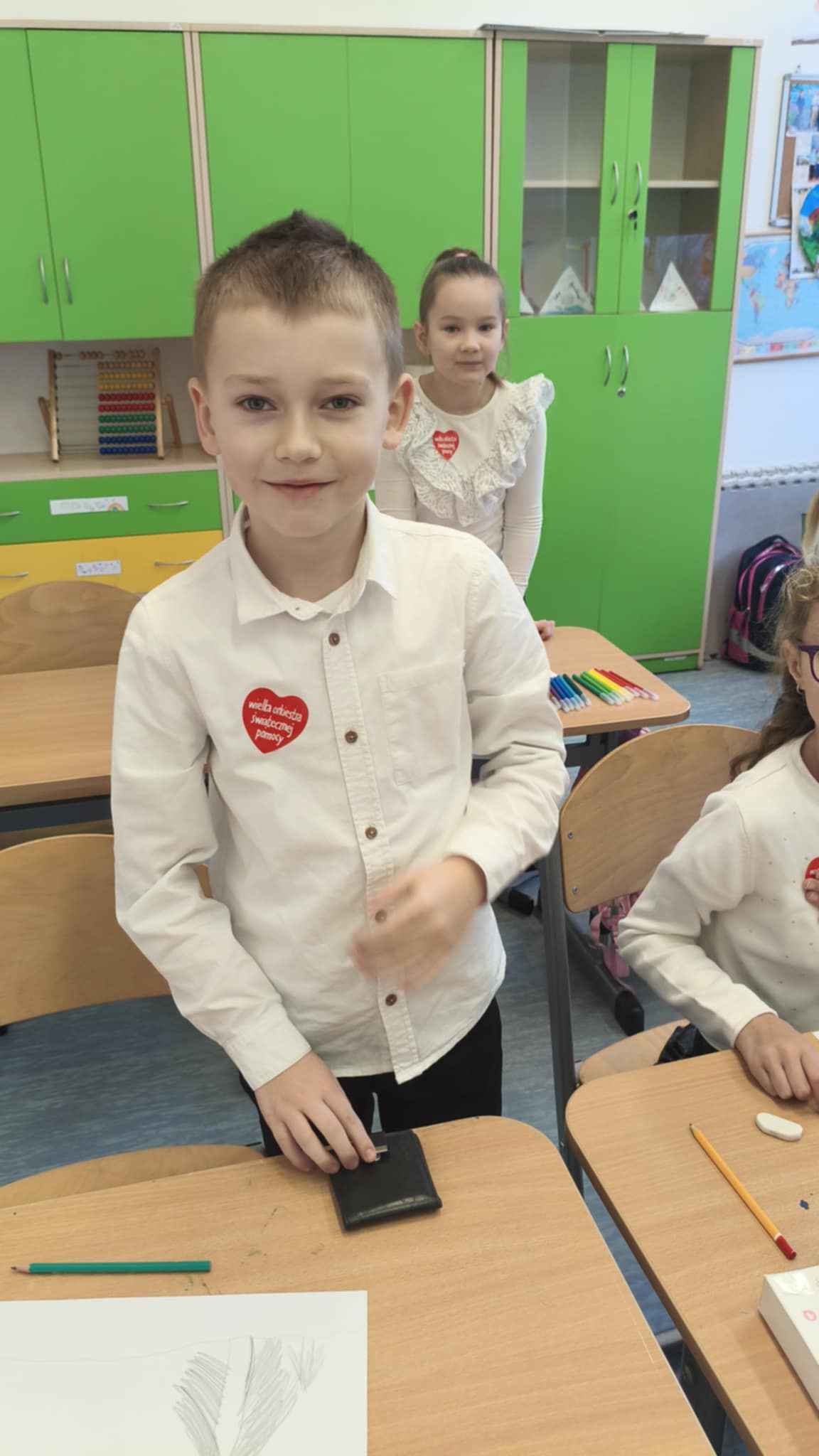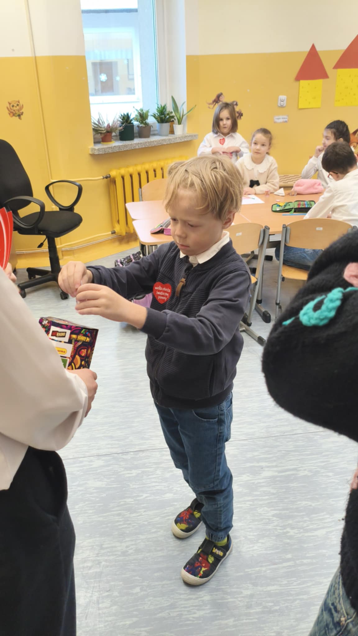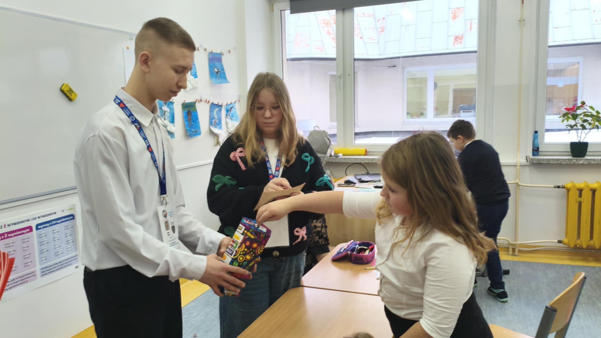 Dzisiaj wolontariusze naszej szkoły – Kaja, Amelia oraz Hubert – aktywnie włączyli się w ogólnopolską akcję charytatywną Wielkiej Orkiestry Świątecznej Pomocy. Z dużym zaangażowaniem i uśmiechem na twarzy prowadzili zbiórkę pieniędzy na terenie szkoły. Nasi wolontariusze wykazali się odpowiedzialnością, empatią oraz kulturą osobistą, godnie reprezentując naszą szkołę.