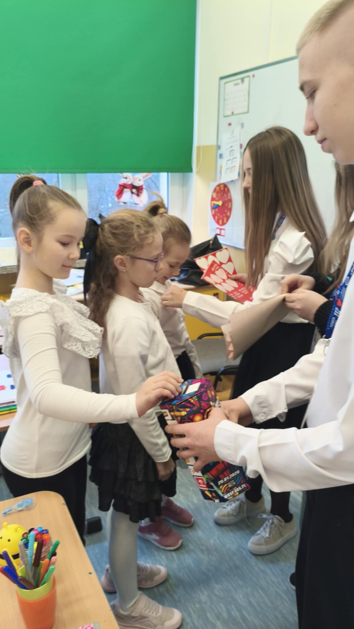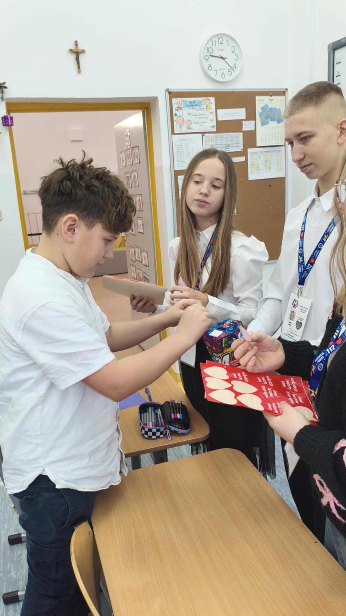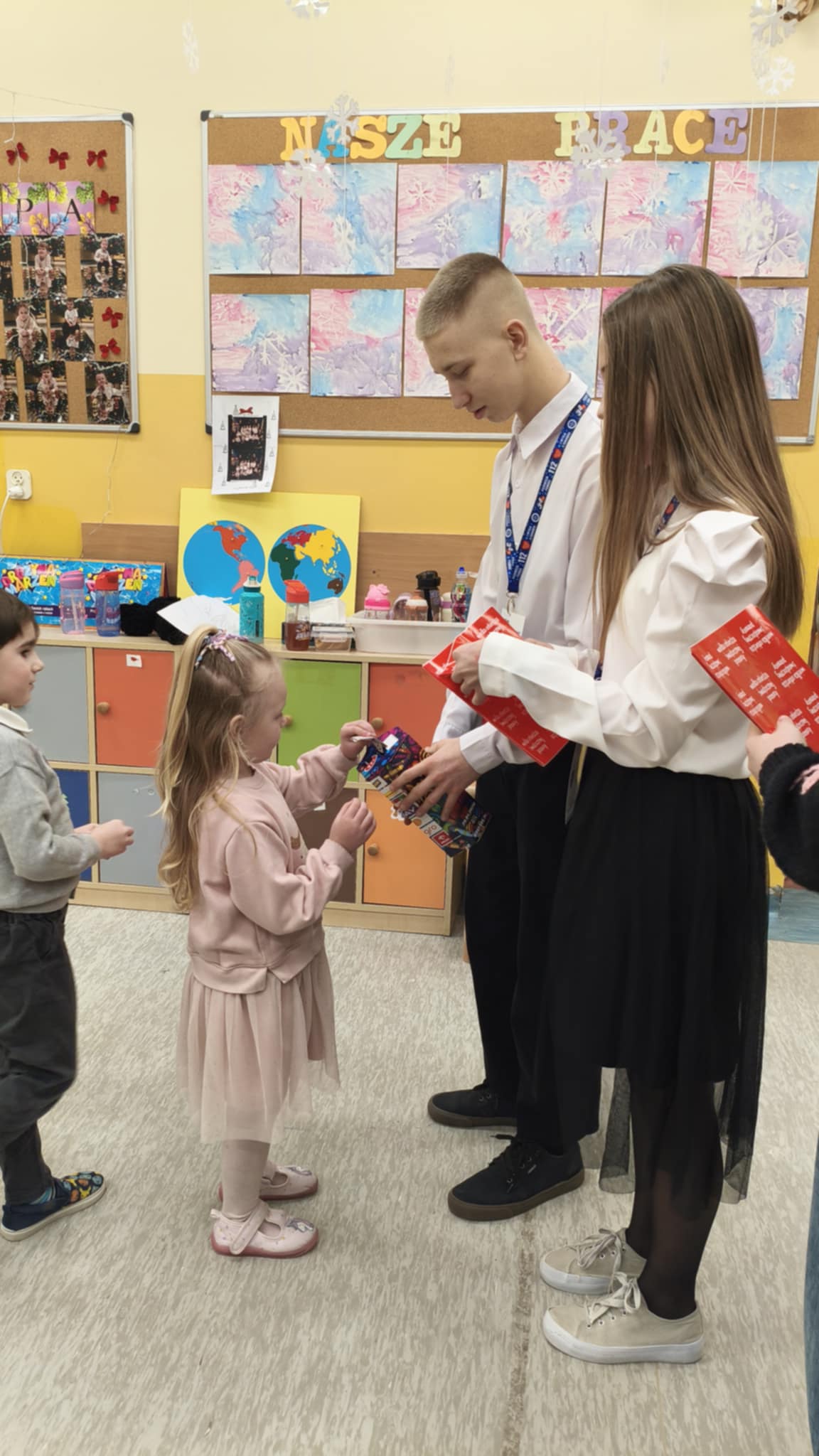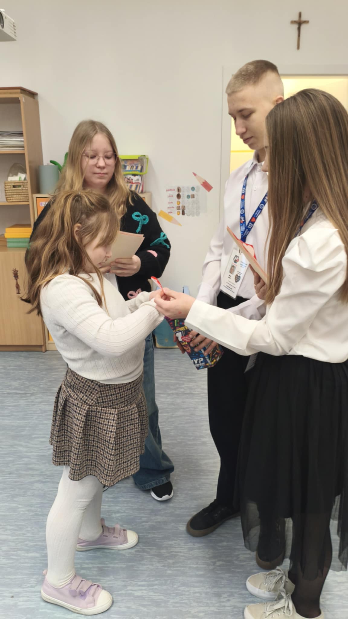 Dzisiaj wolontariusze naszej szkoły – Kaja, Amelia oraz Hubert – aktywnie włączyli się w ogólnopolską akcję charytatywną Wielkiej Orkiestry Świątecznej Pomocy. Z dużym zaangażowaniem i uśmiechem na twarzy prowadzili zbiórkę pieniędzy na terenie szkoły. Nasi wolontariusze wykazali się odpowiedzialnością, empatią oraz kulturą osobistą, godnie reprezentując naszą szkołę.