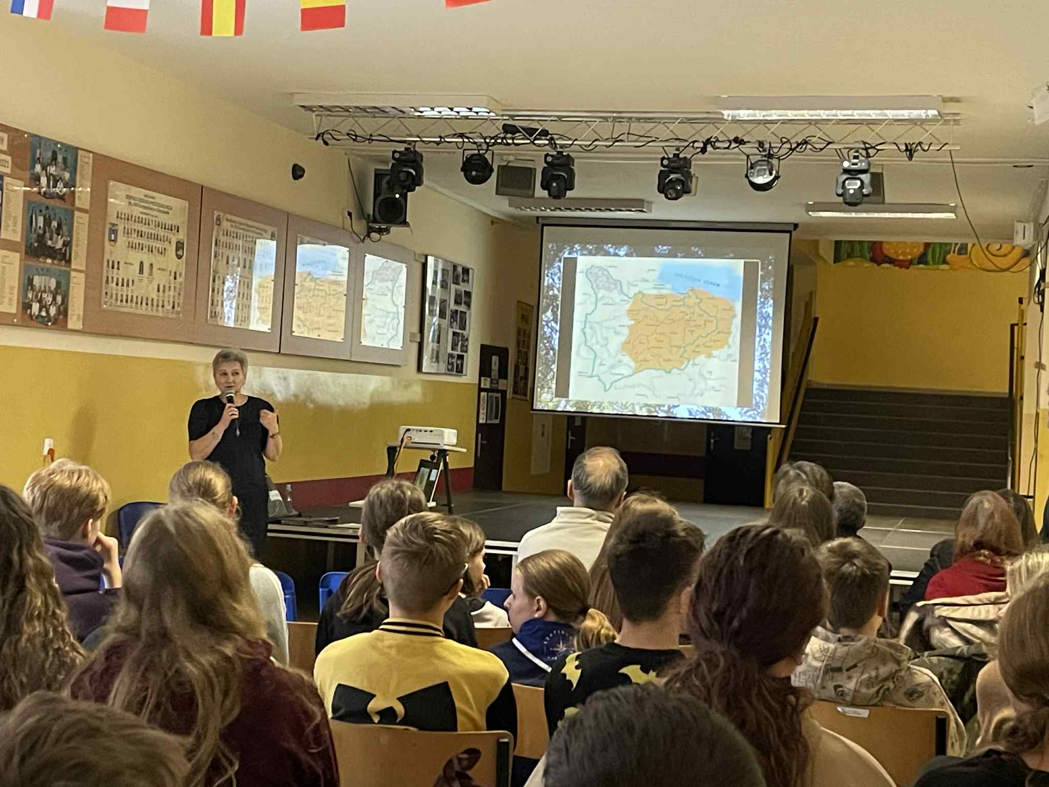 W dniu 14 listopada uczniowie klas 7 i 8 naszej szkoły wzięli udział w wyjątkowej prelekcji zorganizowanej przez Stowarzyszenie Rodziny Ponarskiej, która odbyła się w ZSP Choczewo. Spotkanie poświęcone było wydarzeniom związanym z tragedią w Ponarach – jednym z najtragiczniejszych epizodów II wojny światowej, o którym wciąż mówi się zbyt rzadko.