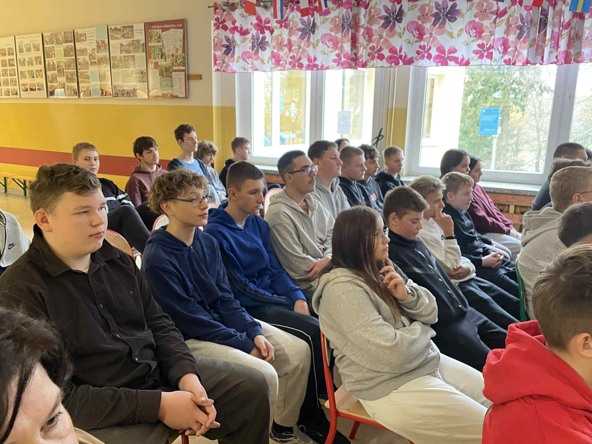 Uczniowie z dużą uwagą śledzili prezentację, która wzbogacona była o fotografie i dokumenty. Spotkanie wywołało wiele pytań i refleksji – młodzież mogła lepiej zrozumieć, jak skomplikowana i bolesna bywa historia oraz jak ogromne znaczenie ma pamięć o tych, którzy stracili życie w czasie wojny.