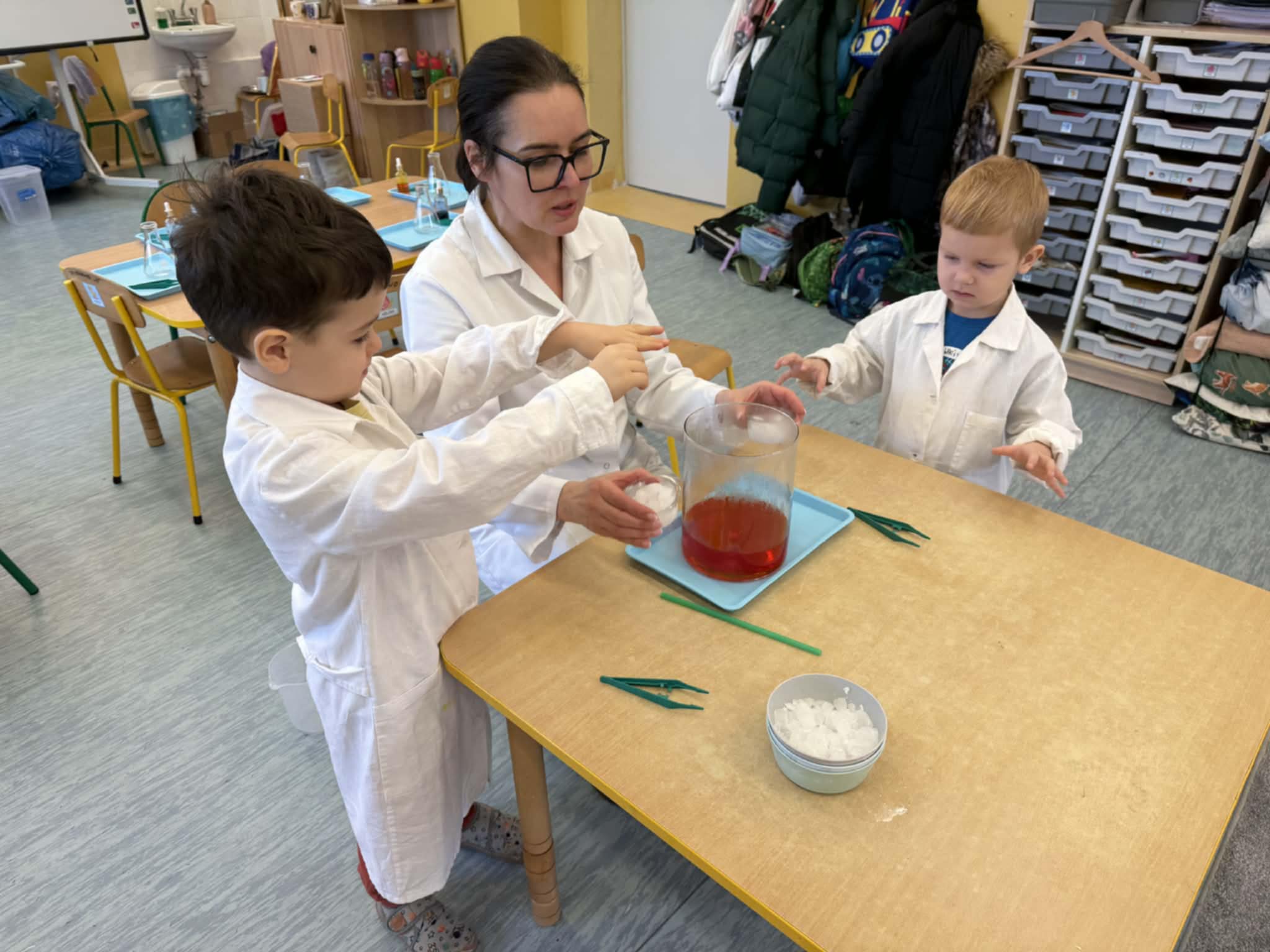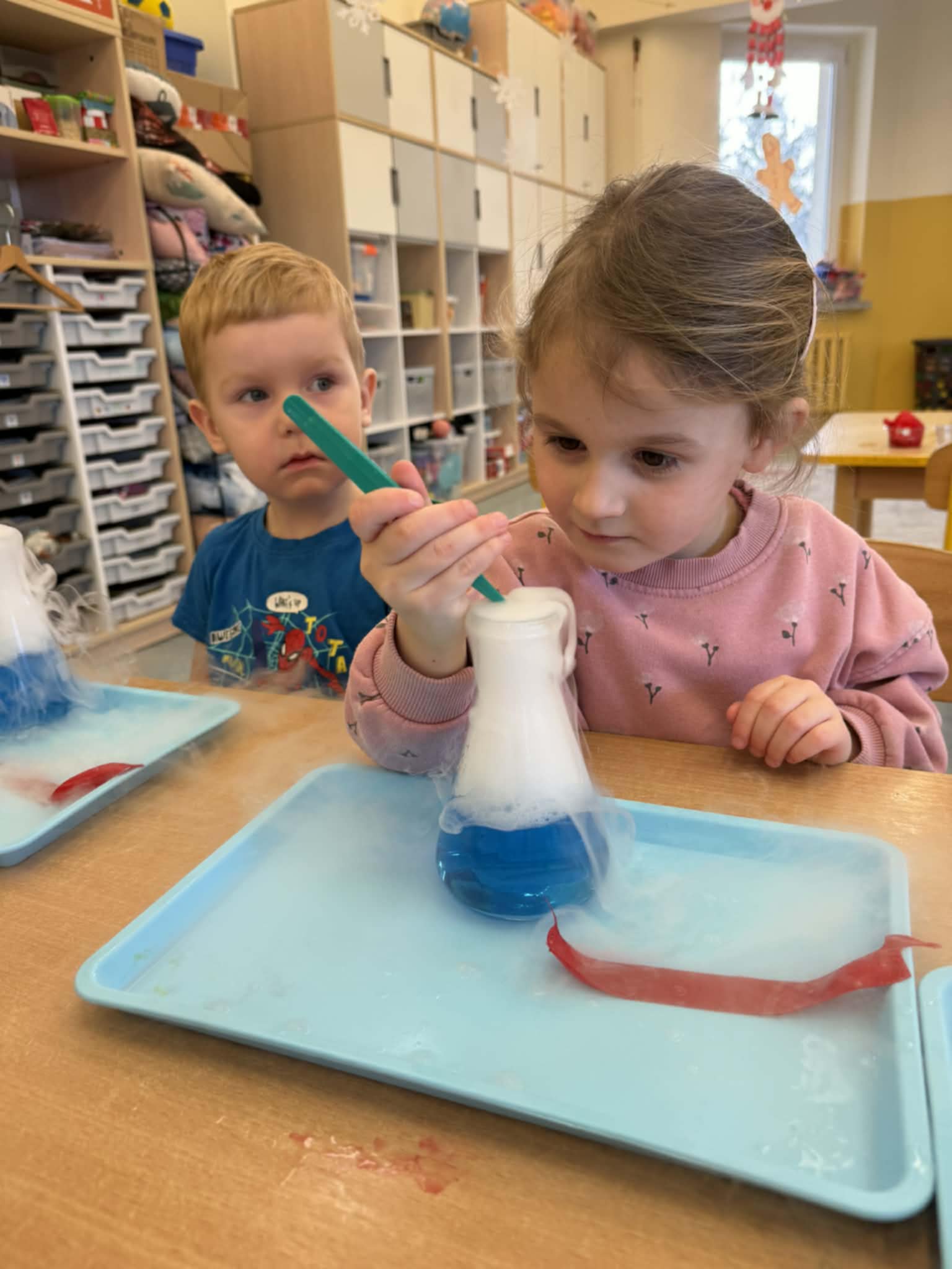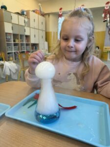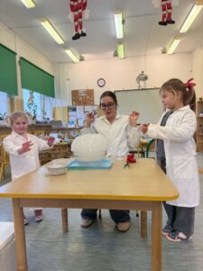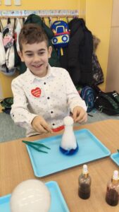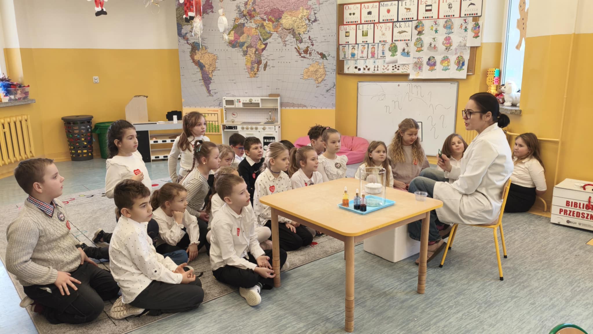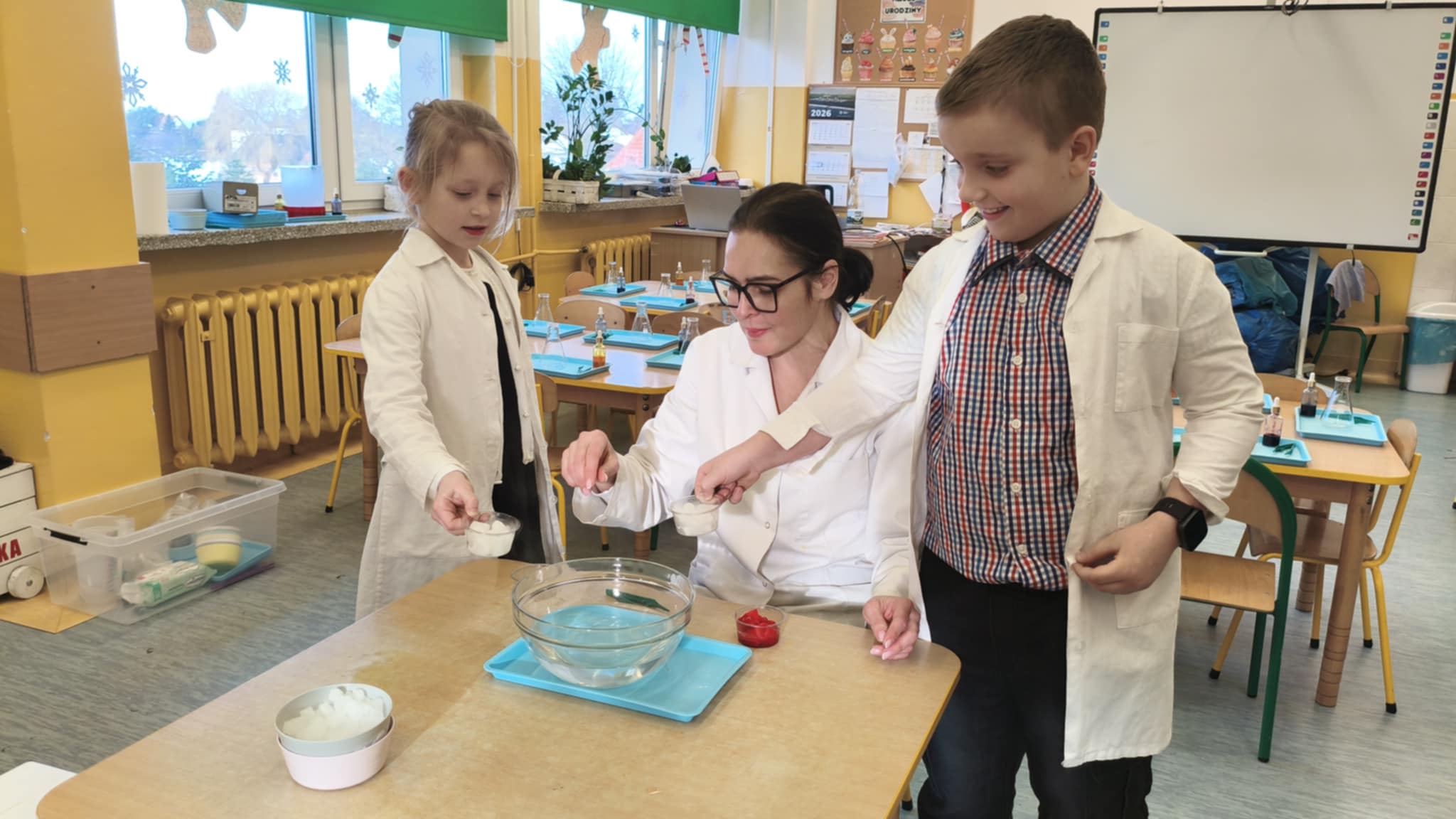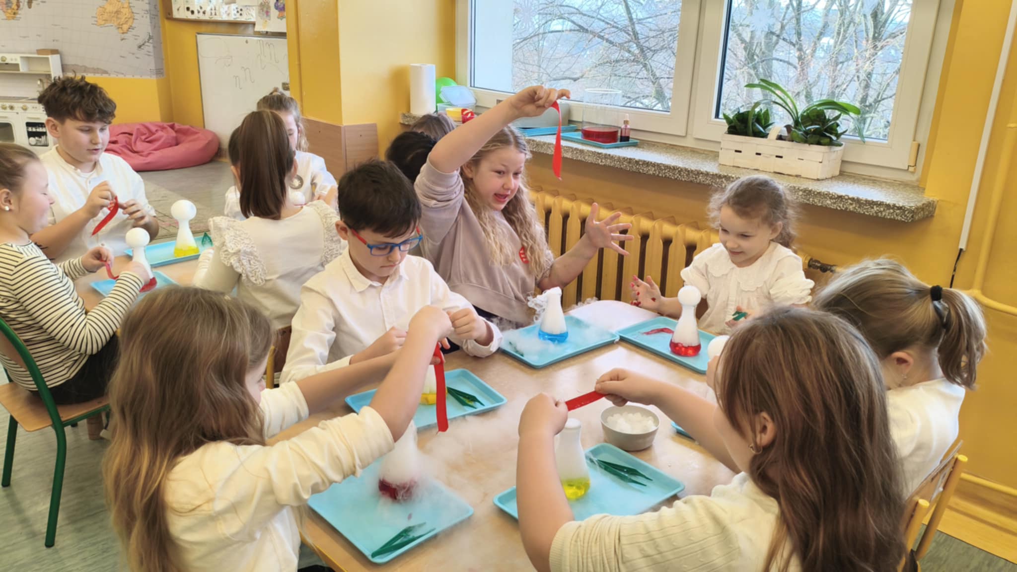Dzisiaj w naszej szkole odbyły się niezwykle ciekawe pokazy i eksperymenty naukowe skierowane do grup przedszkolnych oraz uczniów klas I–III. Głównym bohaterem spotkania był suchy lód, który w widowiskowy sposób wprowadził dzieci w świat nauki i fascynujących zjawisk fizycznych. Uczniowie mieli okazję odkryć tajemnice ekstremalnie niskich temperatur, obserwować „dymiące” reakcje, zjawisko znikającej materii oraz inne efektowne doświadczenia, które wzbudziły ogromne zainteresowanie i zachwyt. Pokazy były nie tylko atrakcyjne wizualnie, ale przede wszystkim miały charakter edukacyjny – dzieci aktywnie uczestniczyły w eksperymentach, zadawały pytania i z ciekawością poznawały naukowe wyjaśnienia obserwowanych zjawisk.