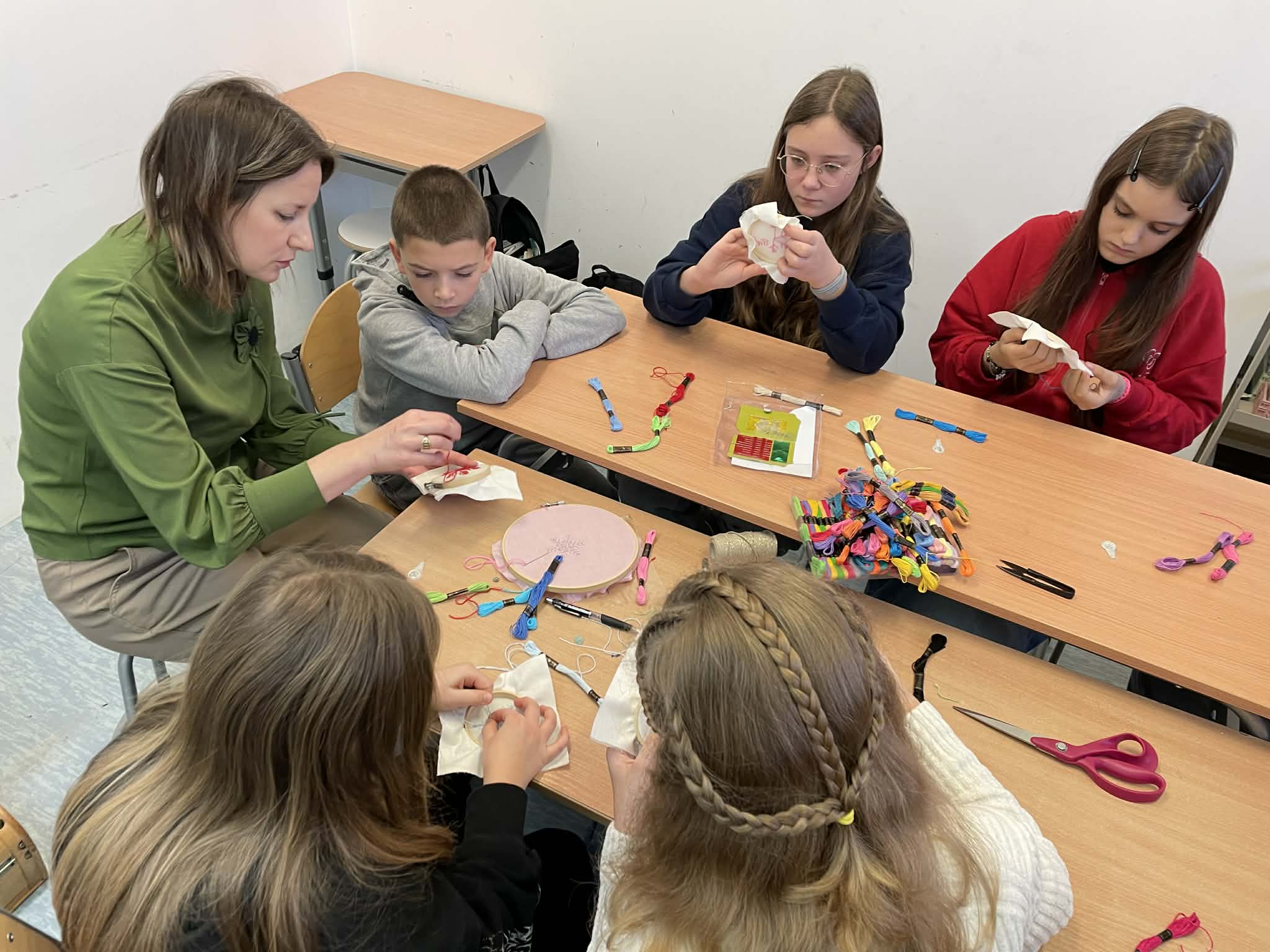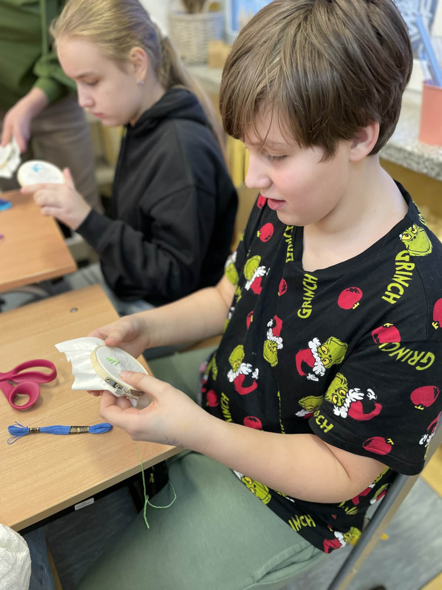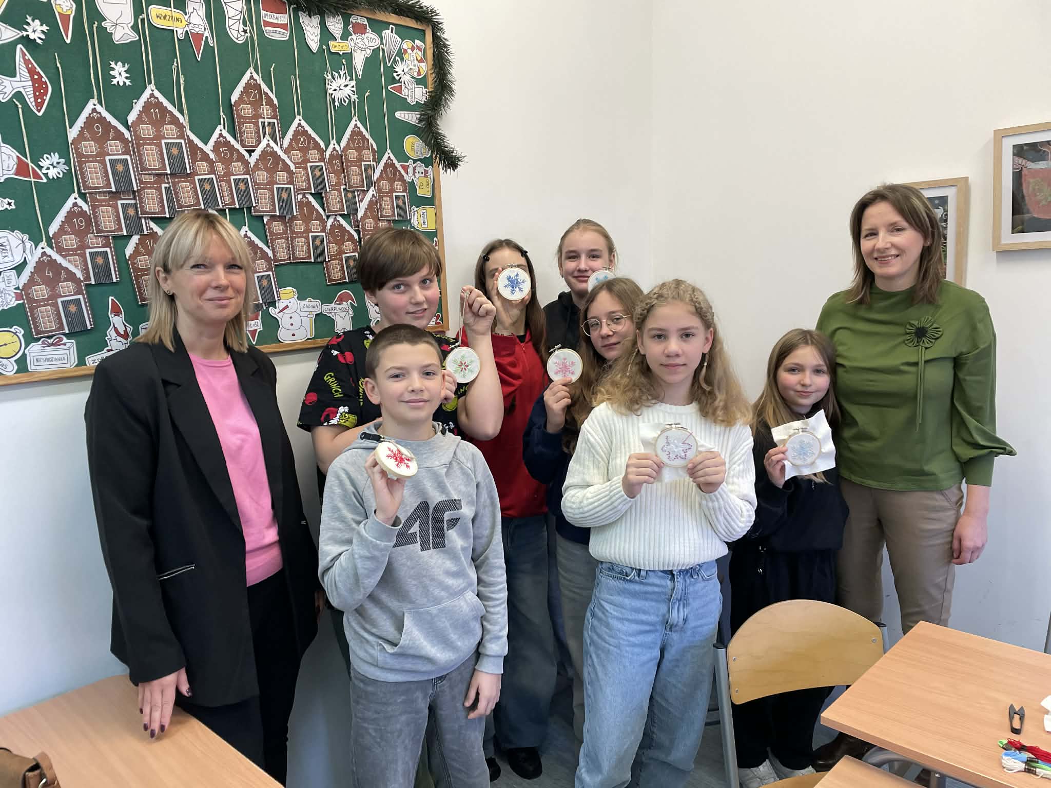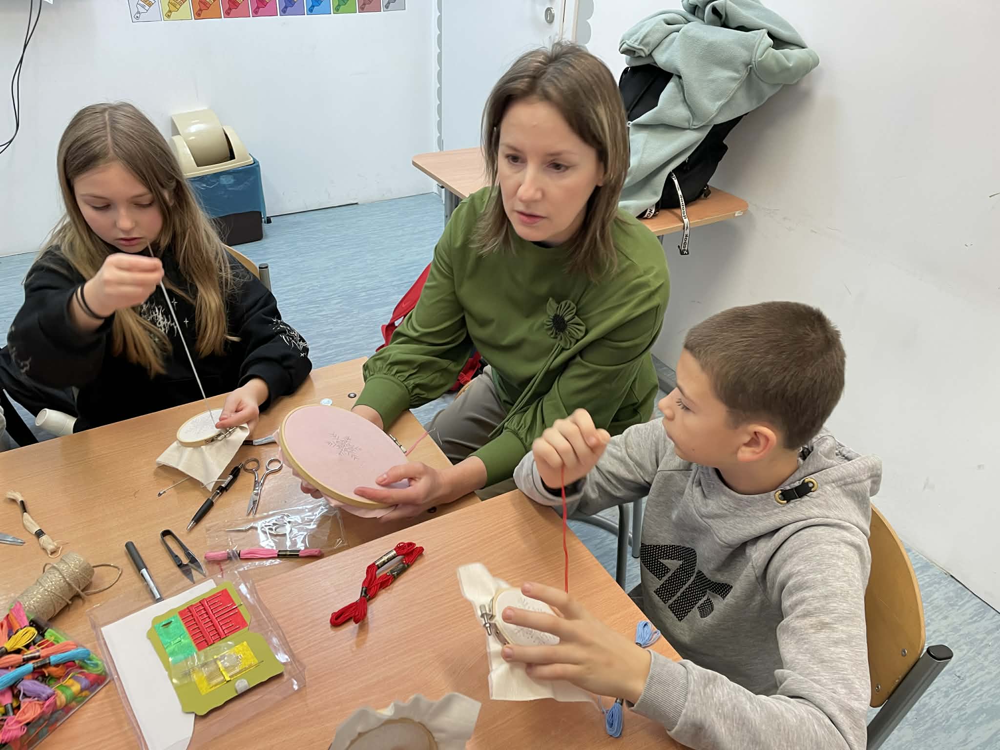 W klasie 5 odbyły się wyjątkowe warsztaty wyszywania, poprowadzone przez panią Marlenę Niemiec – mamę jednej z uczennic. Zajęcia zorganizowano w ramach lekcji języka kaszubskiego, podczas których uczniowie mieli okazję połączyć wiedzę o kulturze regionu z praktycznymi umiejętnościami.