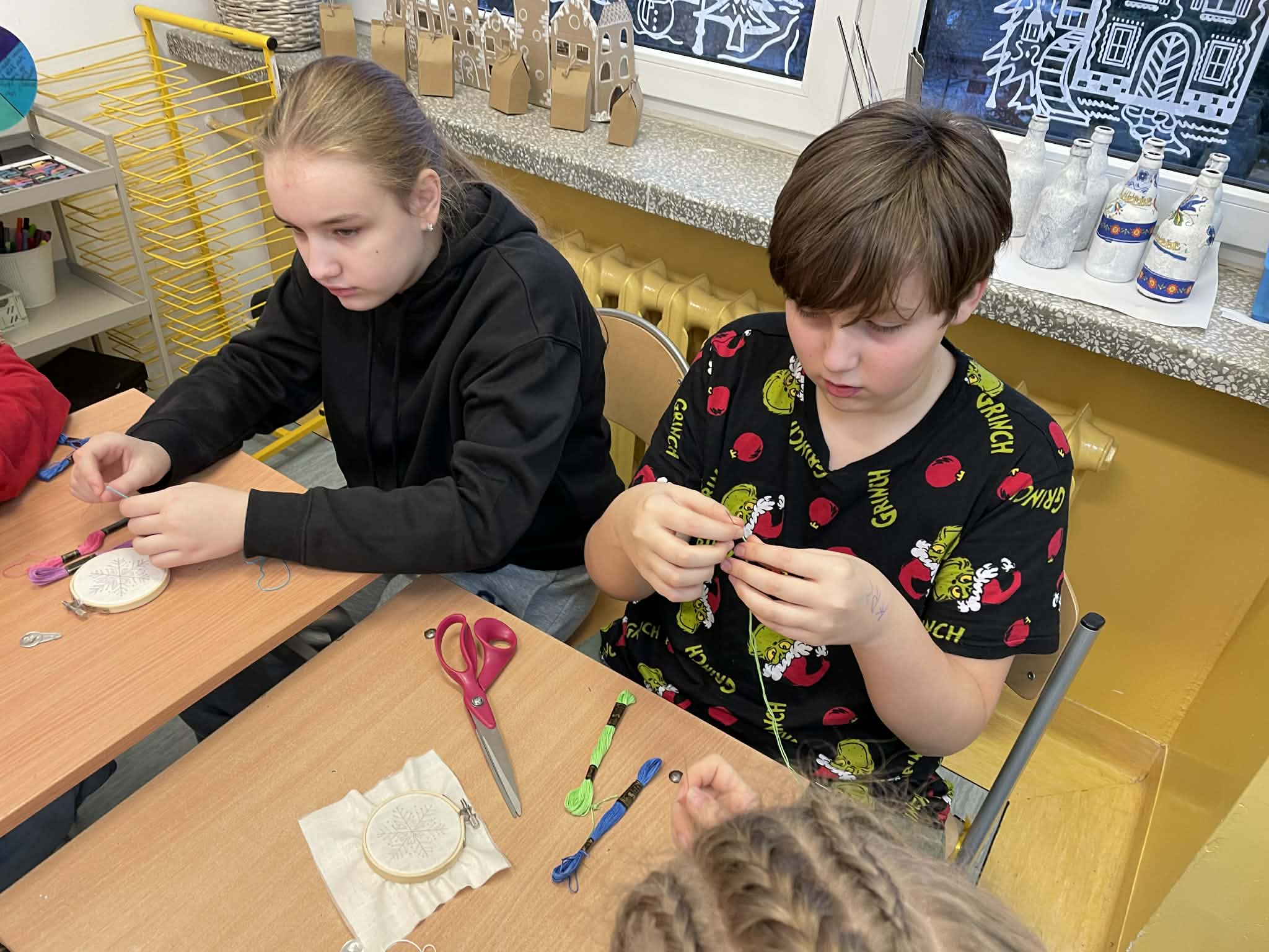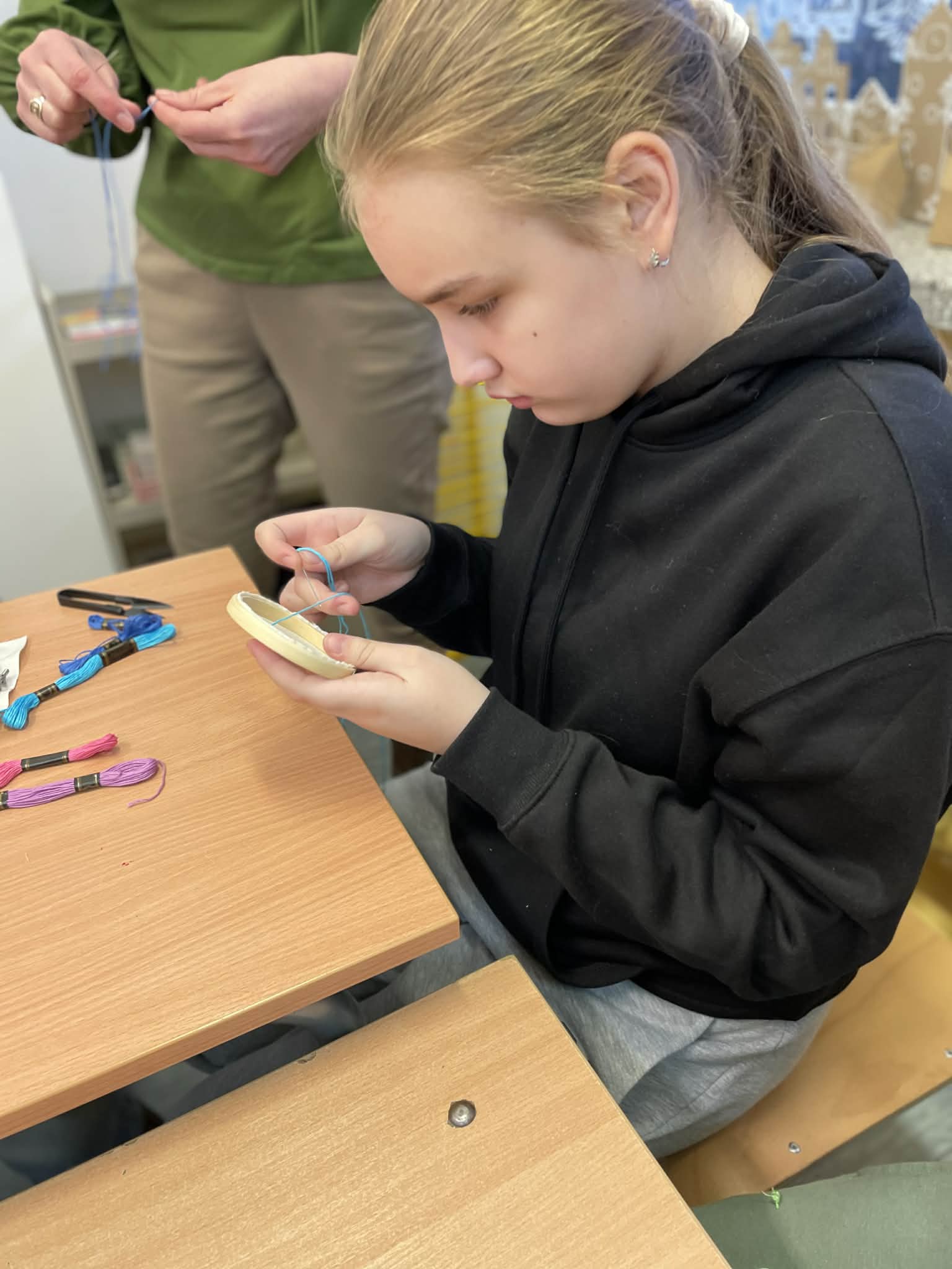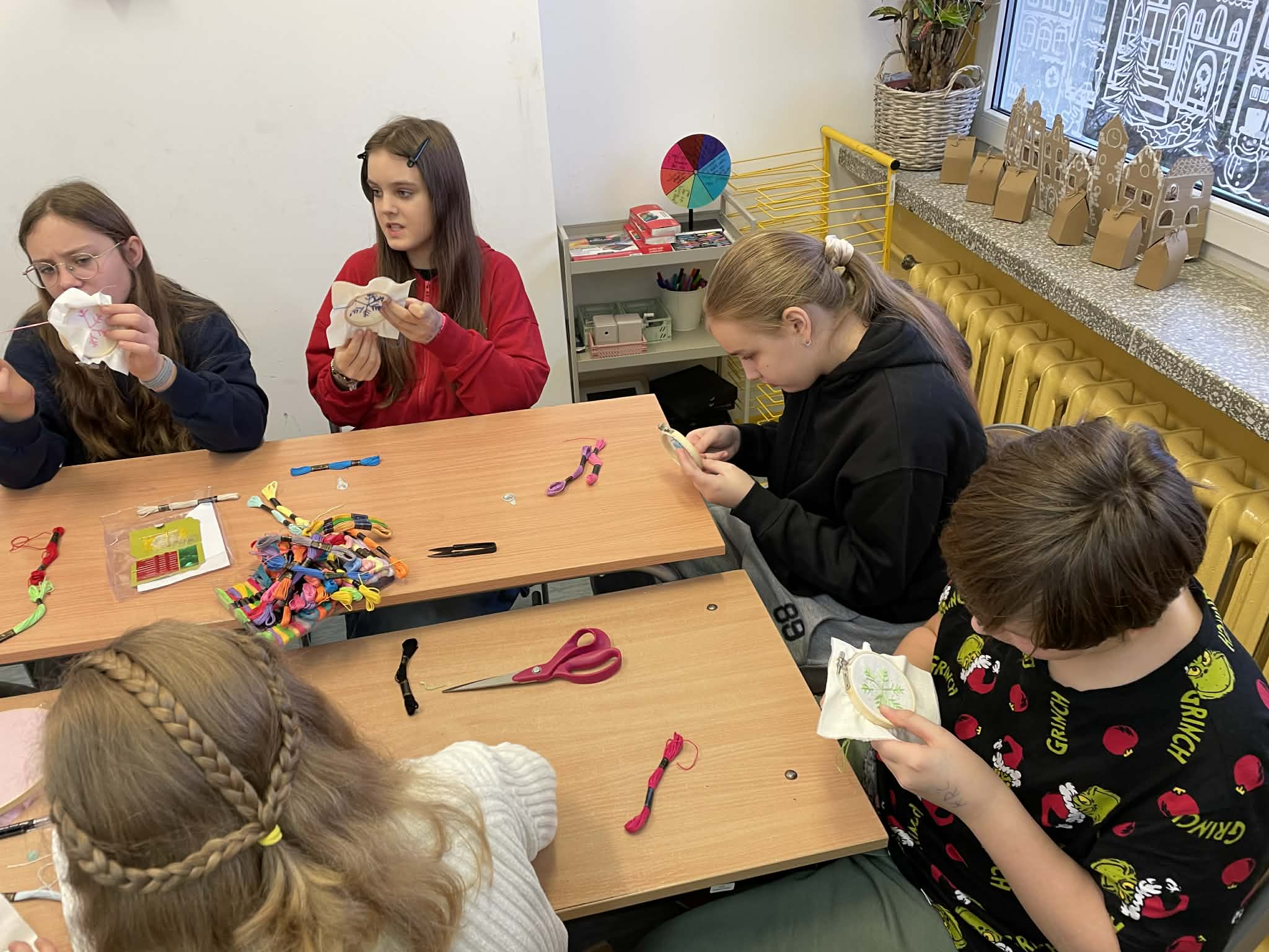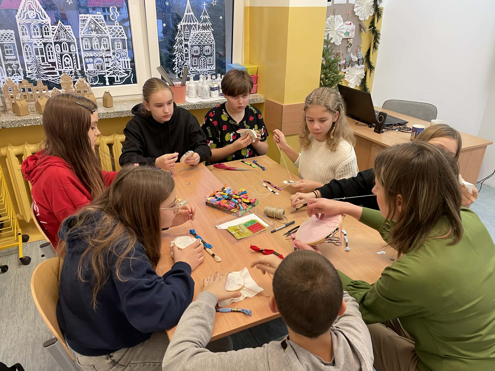 W klasie 5 odbyły się wyjątkowe warsztaty wyszywania, poprowadzone przez panią Marlenę Niemiec – mamę jednej z uczennic. Zajęcia zorganizowano w ramach lekcji języka kaszubskiego, podczas których uczniowie mieli okazję połączyć wiedzę o kulturze regionu z praktycznymi umiejętnościami.