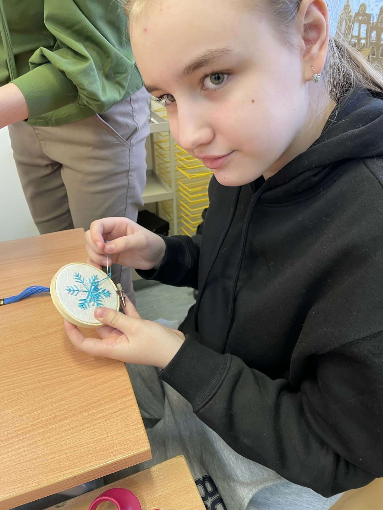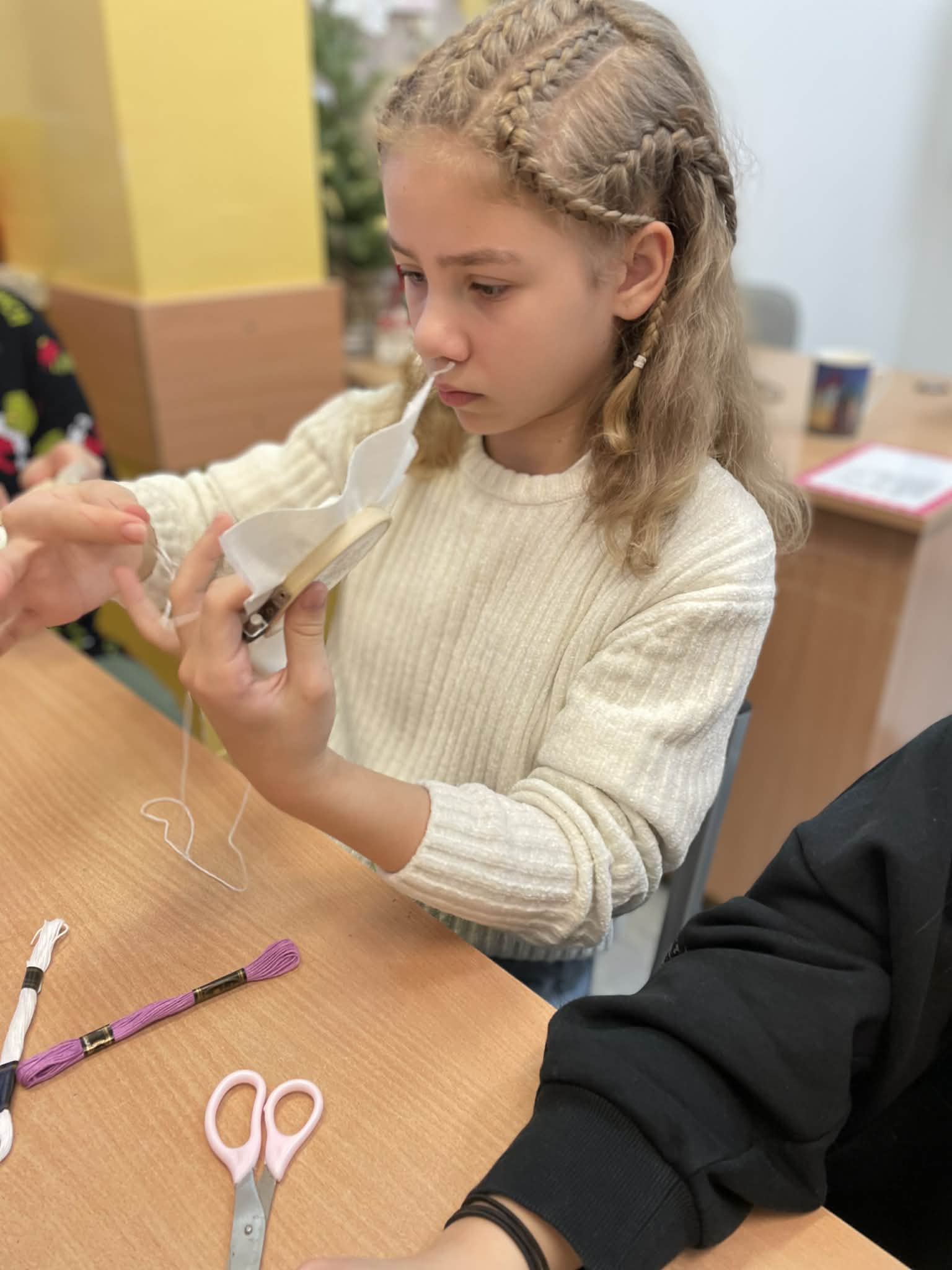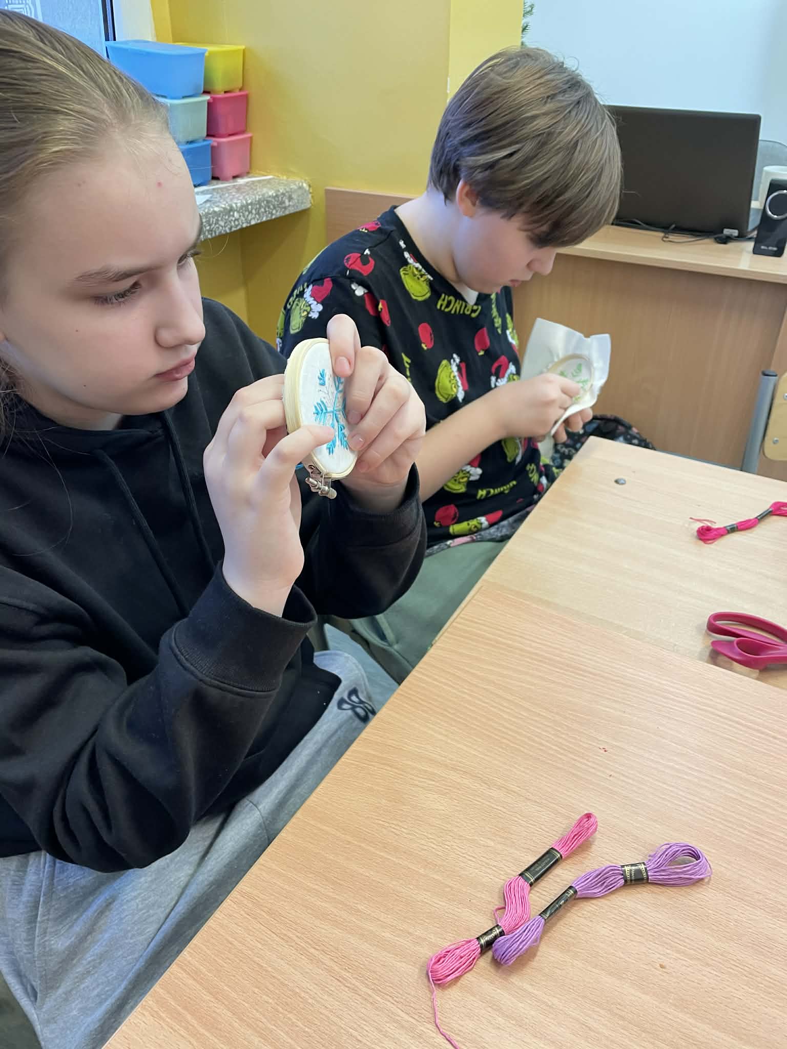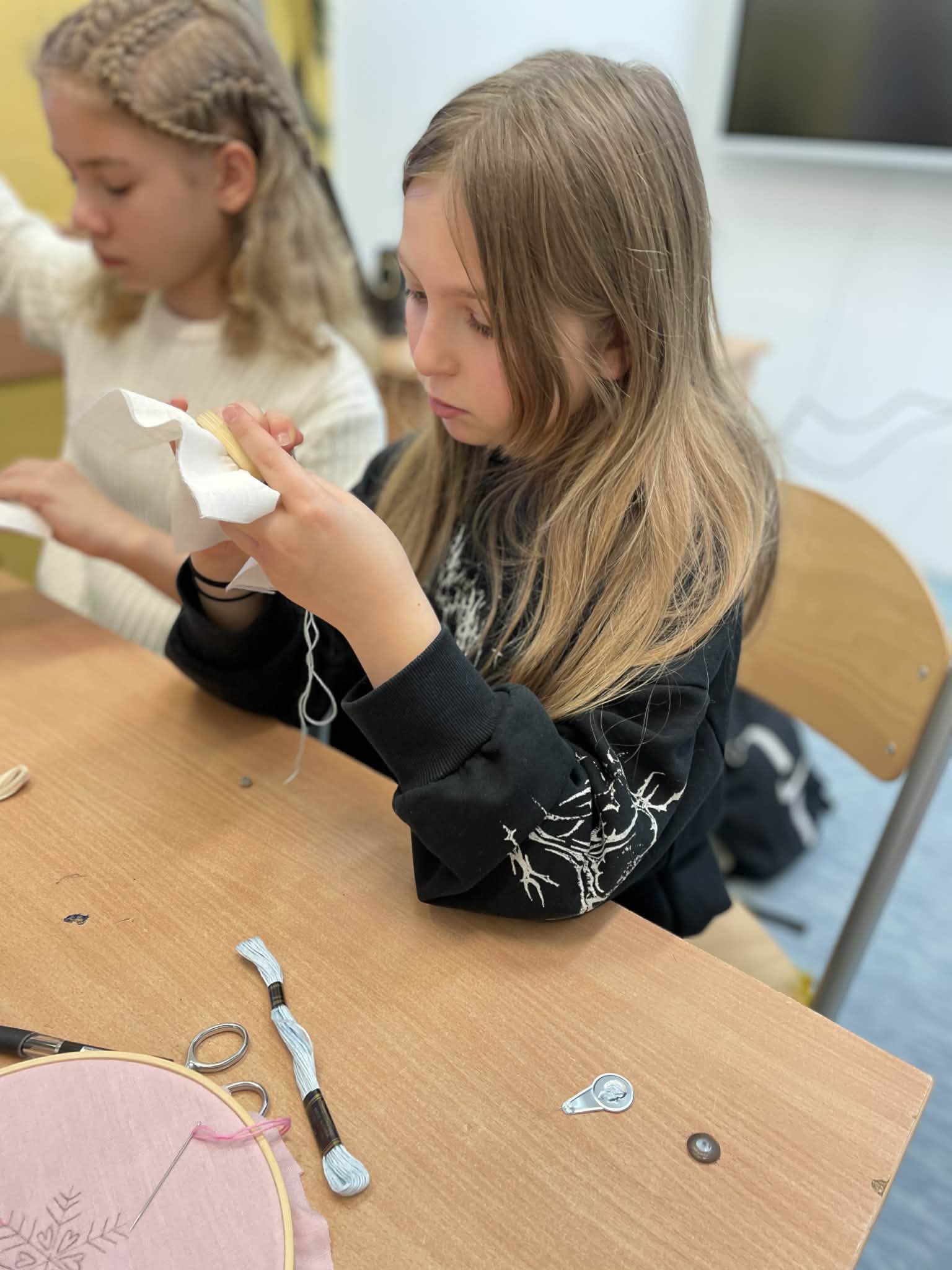 W klasie 5 odbyły się wyjątkowe warsztaty wyszywania, poprowadzone przez panią Marlenę Niemiec – mamę jednej z uczennic. Zajęcia zorganizowano w ramach lekcji języka kaszubskiego, podczas których uczniowie mieli okazję połączyć wiedzę o kulturze regionu z praktycznymi umiejętnościami.