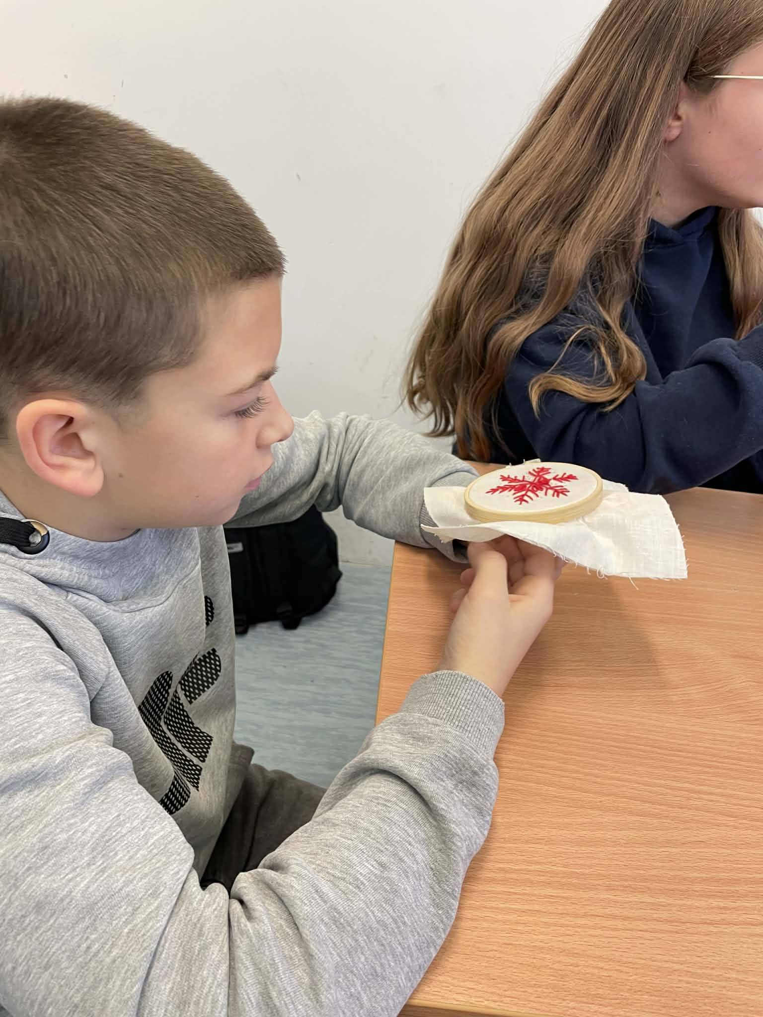 Piątoklasiści już wcześniej poznali szkoły haftu kaszubskiego, a podczas warsztatów mogli spróbować własnych sił w wyszywaniu tradycyjnych wzorów. Dzięki wskazówkom i cierpliwości prowadzącej, uczniowie wykonali swoje pierwsze prace, przekonując się, że to nie tylko piękna, ale i wymagająca sztuka.