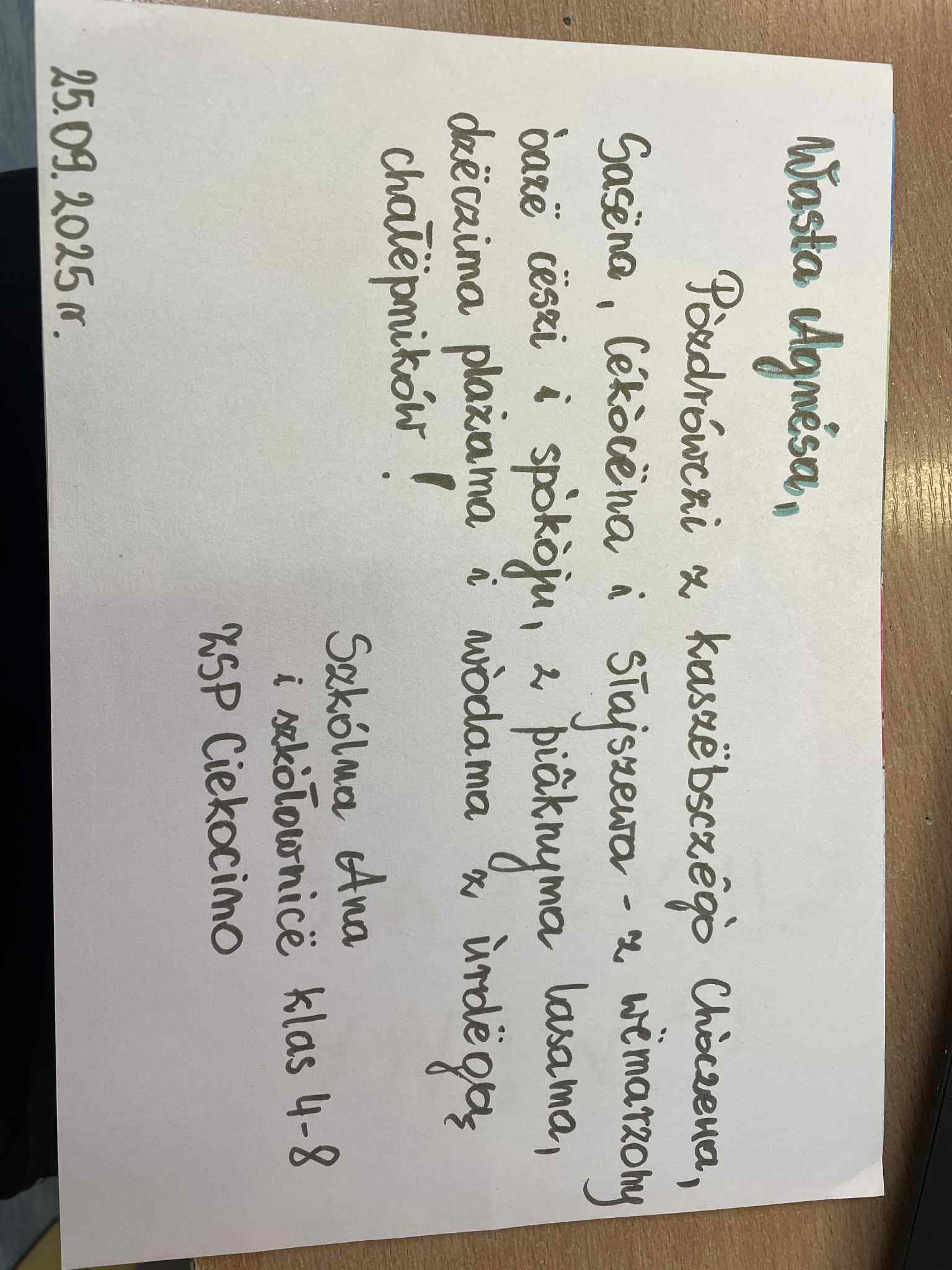 Uczniowie klas 4–8 ZSP w Ciekocinie, którzy uczęszczają na lekcje języka kaszubskiego, wzięli udział w wyjątkowym projekcie wymiany pocztówek z rówieśnikami z II Społecznej Szkoły Podstawowej w Słupsku.